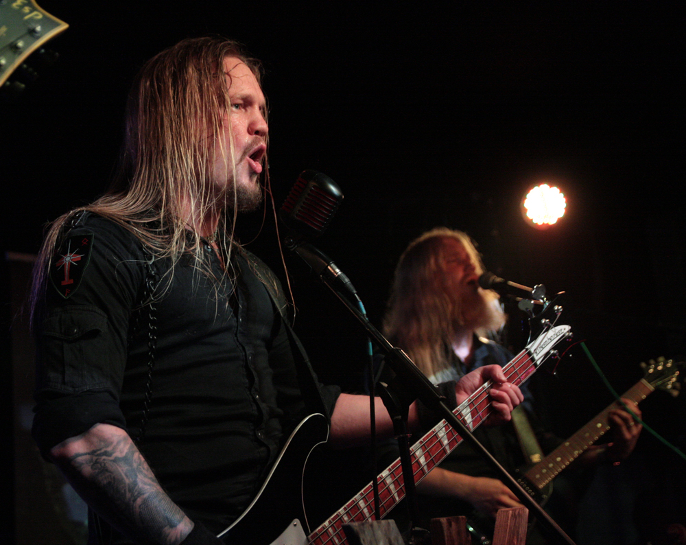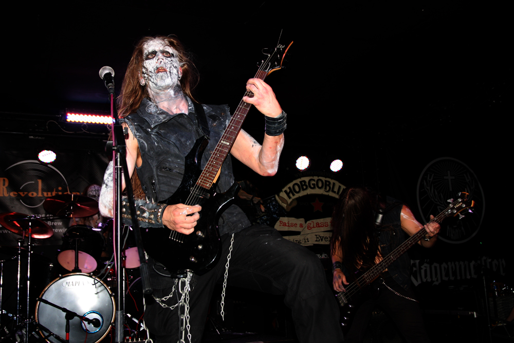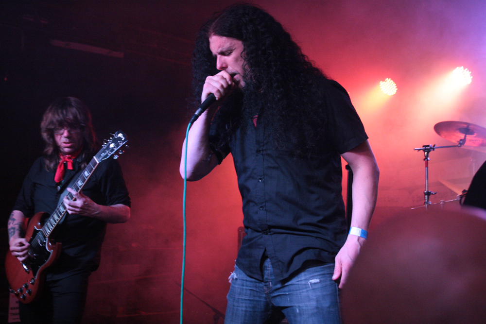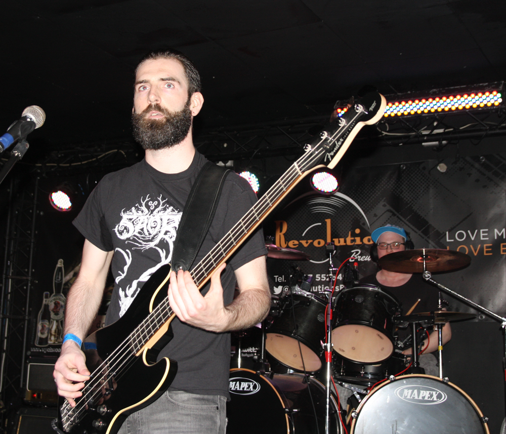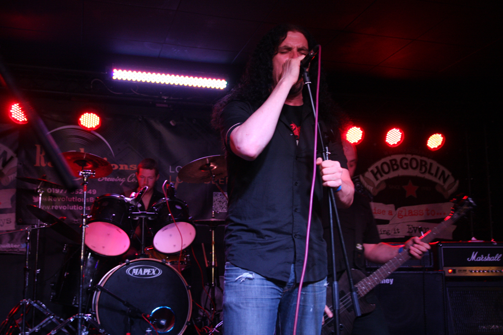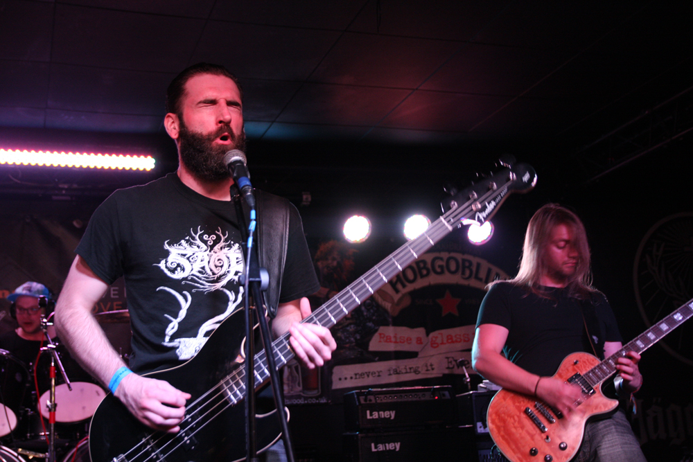 I had noticed some Valafar shirts being sported but that’s as far as my knowledge of them went. They are apparently a death metal band from Bradford just oop road so had some support with them today. The first impression I got was that this lot were playing like they were headlining. They really threw themselves into things and went for it straight a bloody way! The players thrash it up like there’s no tomorrow, the kick drum bruises and the singer gives a powerful and belligerent, bellow filled performance. Naturally it gets necks snapping away at the front and the enthusiasm spreads and infects. Ok so it might all be a bit meat and two potatoes but made for a good enough replacement for a Sunday roast (umm Yorkshire puddings) but there’s no denying they delivered the musical goods. Moving from thrashy parts into gnarly death metal they ticked a few boxes in the process too. (PW)
