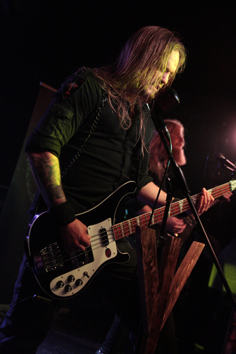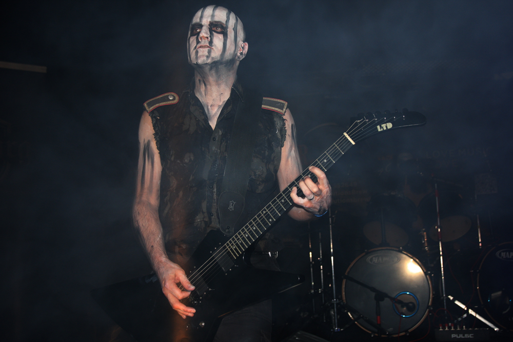 The war machine that is Stahlsarg were next up. They are the first band to really use lighting to good effect and with guitarist Krieg a particularly compelling figure, they thunder their blackened death way through tracks from their debut like ‘Razed To The Ground’ and ‘Castle Wewelsburg’ with commitment and proper malevolence. Eissturm is a striking vocalist, pallid centre stage and they did a grand job of recapturing some of the crowd who had drifted out and went down well. Some of the subtleties of their debut album which I enjoyed seem to get lost along the way live this time, though, I think. Still, on this occasion although it doesn’t quite do it for me, it does for the crowd which is good to see.