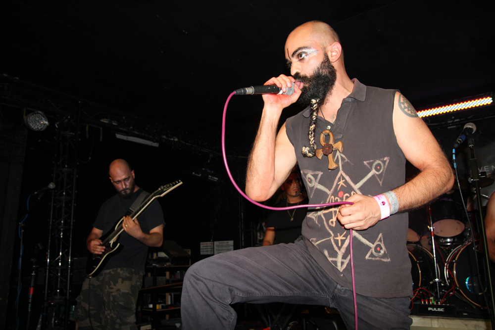 Now comes an example of what I was talking about regarding musical authenticity whilst slating Whispered yesterday. Scarab are the real deal, they are (nearly all) from Egypt and meld ethnic melodies with battering death metal. They had proved commendable at Bloodstock a couple of years ago and on recent album Serpents Of The Nile. In this small venue they really took our heads off. It felt like word had spread about the band from the land of the Sphinx too considering the reaction they got. The arid heat from the bands brutal inferno scorches those down at the front and the whirlwind precision is comparable to uncorking a Djinn from a bottle, all we can do is dig in and weather the storm. Their message is not one of hate, vocalist Sammy calls out a message of freedom, something not particularly prevalent in their home country as witnessed by anyone following the extreme music scene there. The melodies are brilliant, the keyboard player really transporting us off to another place and even better is seeing the pit kick up and the band getting the reaction they deserve. Band of the weekend for me without a shadow of a doubt.