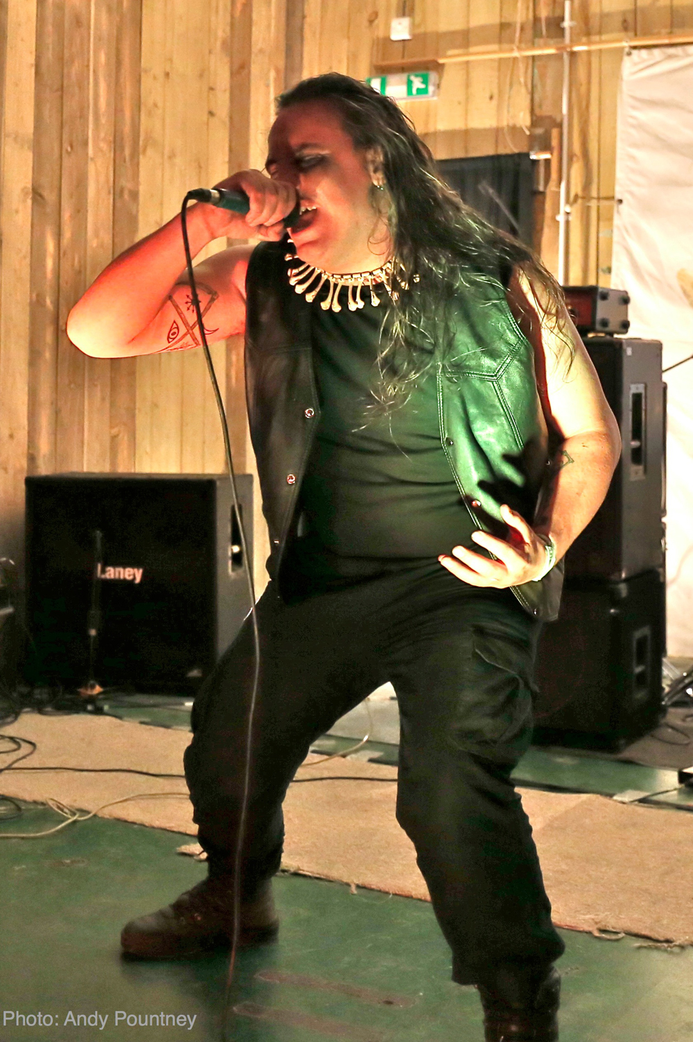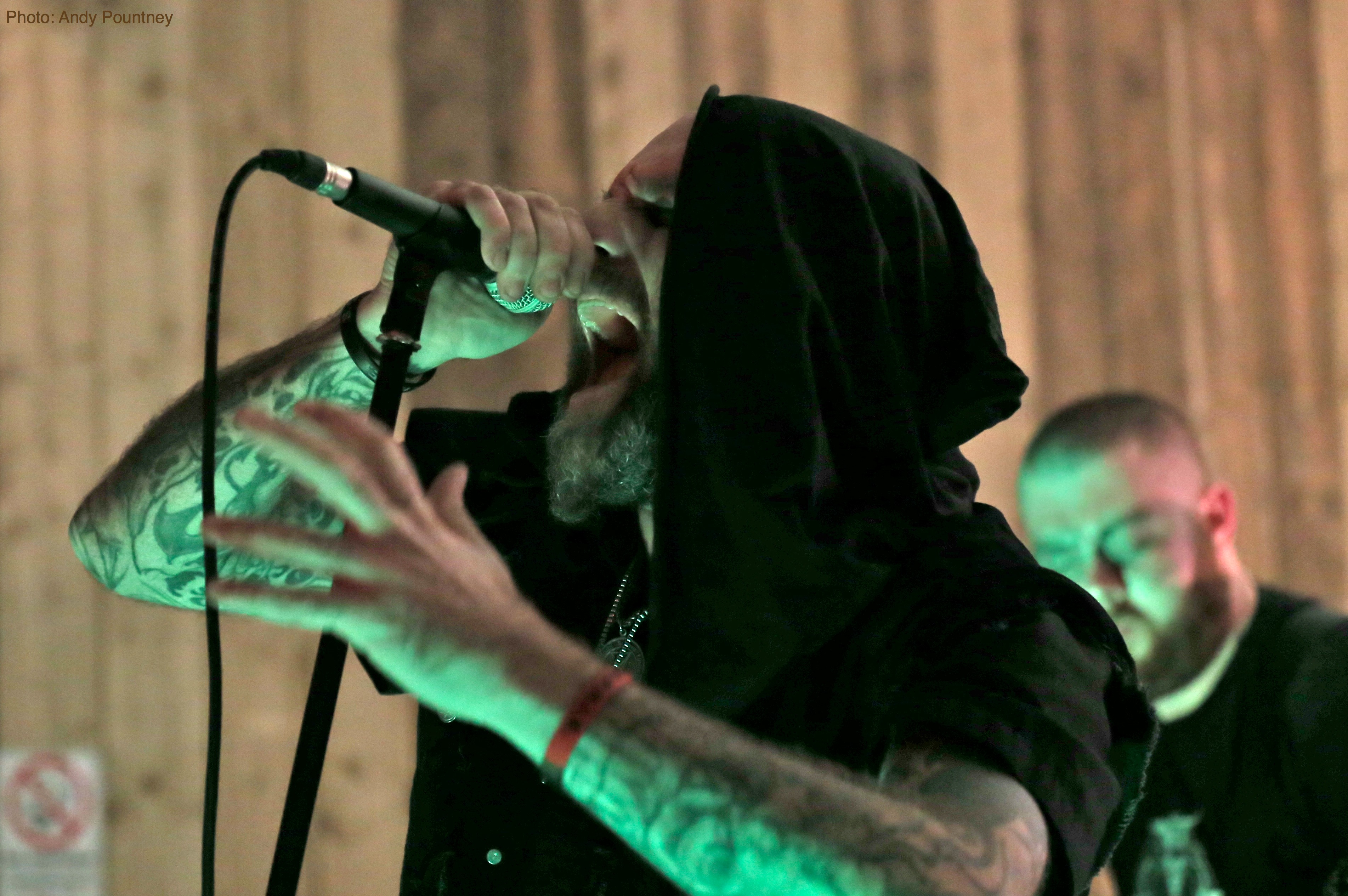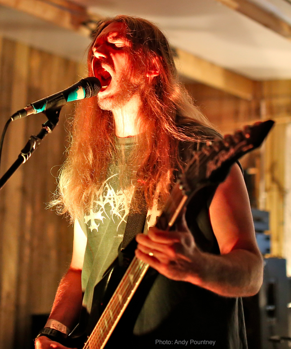 Roots Entwined’ had the honour of opening the festival and did a storming job. I have to admit I wasn’t familiar with them prior to the festival, except that they have members of ‘Mountain’s Crave’ and ‘A Forest of Stars’ amongst their ranks. The band had a pristine sound and their melancholic black metal attracted a decent sized crowd. Apparently this was a rare outing for ‘Roots Entwined’ which is a real shame as this was a very impressive opening to the festival, and I would like to catch this band again.
