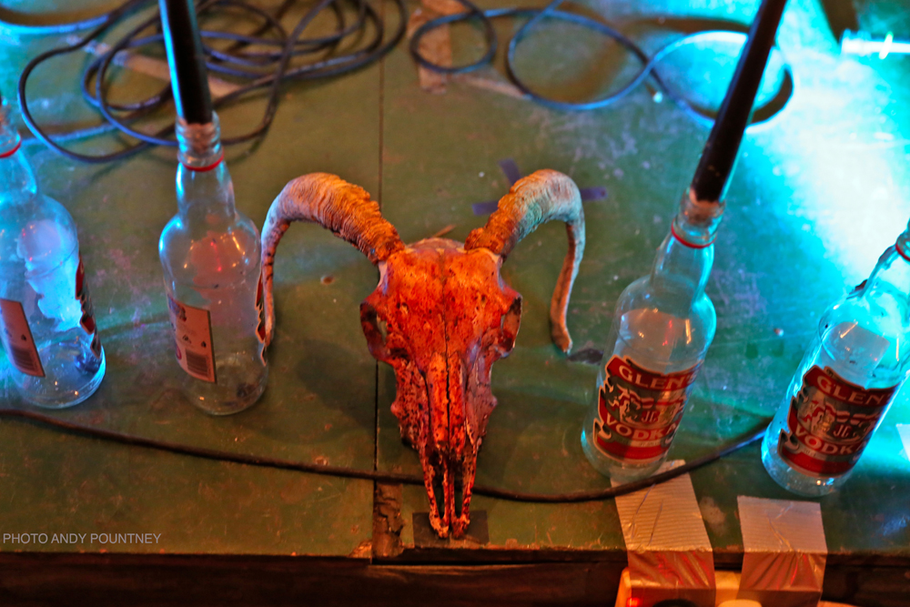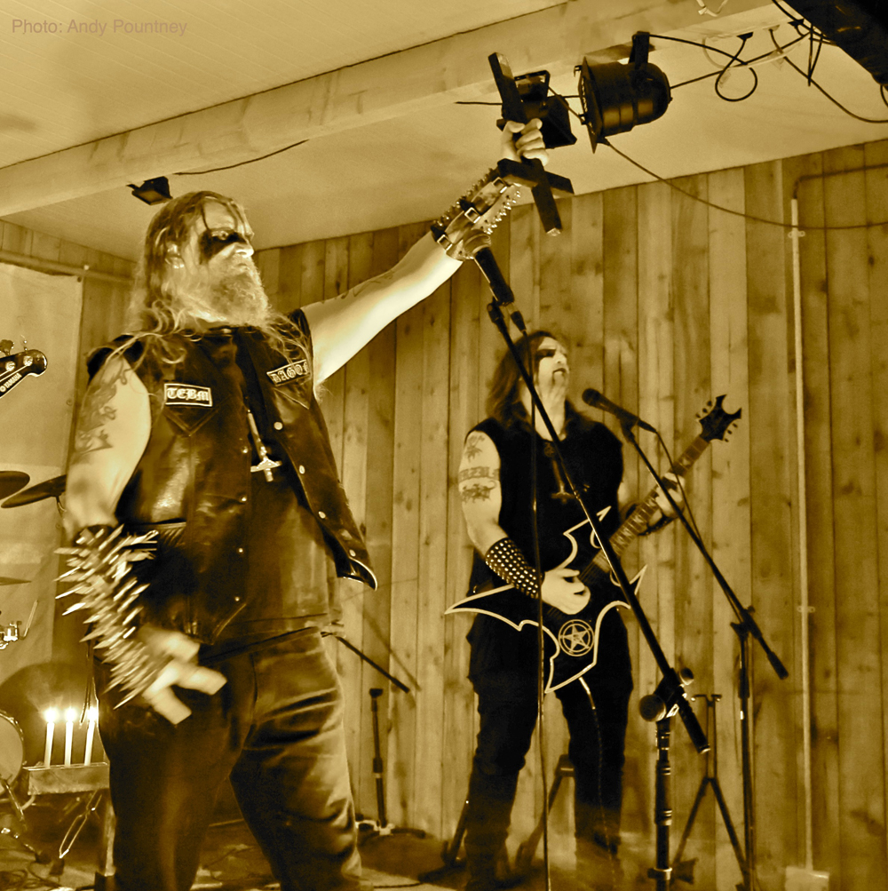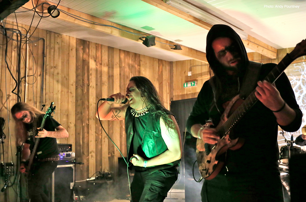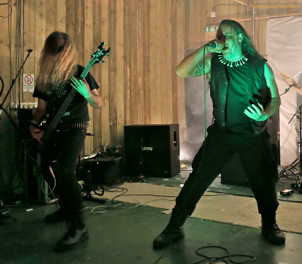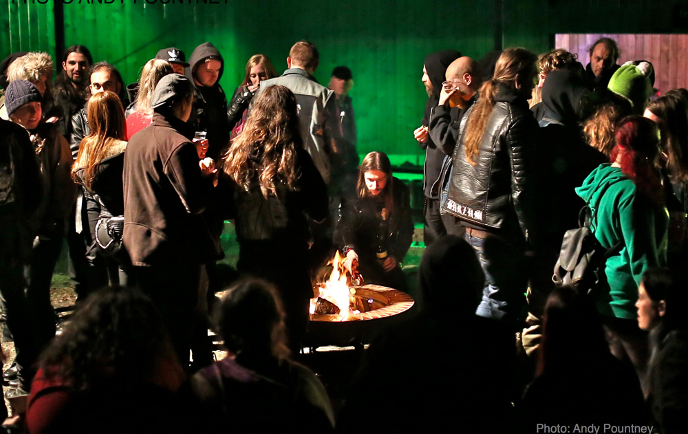 ‘Thornland’, an acoustic duo, took the baton next and performed a short set outside, in front of the fire pit outside, including a cover of classic Bathory track ‘Man of Iron’, which a few in the crowd seemed to recognise and sang along.