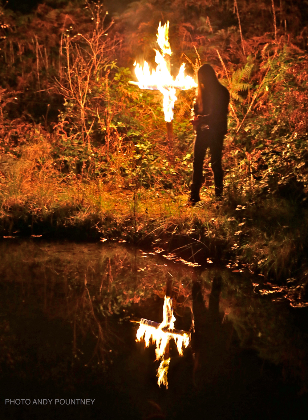 The infamous legendary moonpond ritual followed, including setting alight an inverted cross in the woodland.