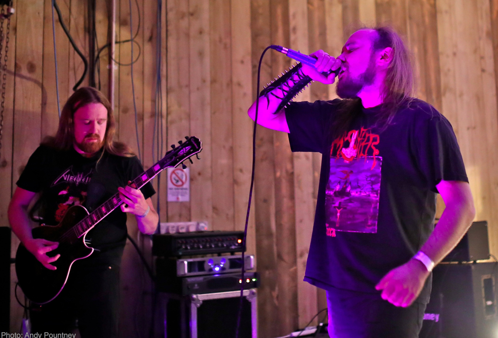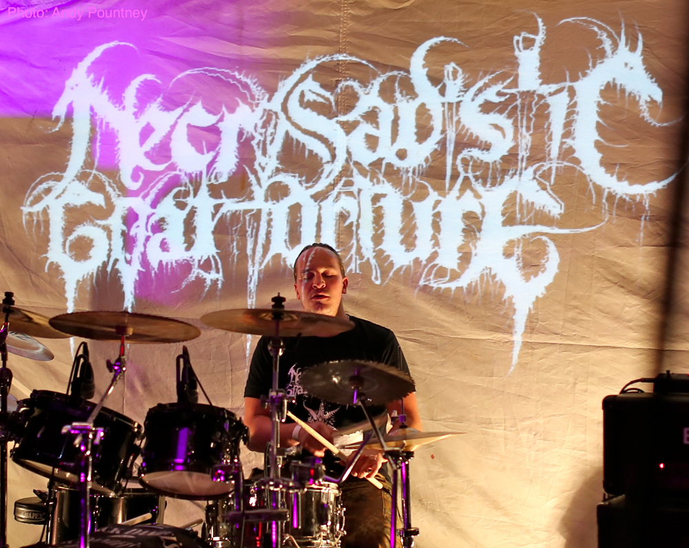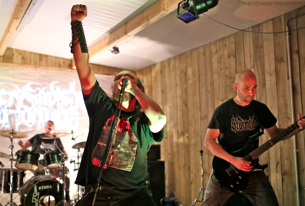 I was really looking forward to ‘Necrosadistic Goat Torture’, and I was not disappointed as they raised the bar with their blackened death/thrash. Opening with ‘The Day All Gods Die’, it was clear that this should have been something special, but instead the set was plagued with technical problems which led to an extended break before ‘Final Aeon’ and then more technical issues which resulted in a premature finish. The band were clearly frustrated by this, as were those watching, as it was clear the ‘Necrosadistic Goat Torture’ have real potential. As a footnote they were not at full strength due to some personal problems but have vowed to return better than ever in the near future.