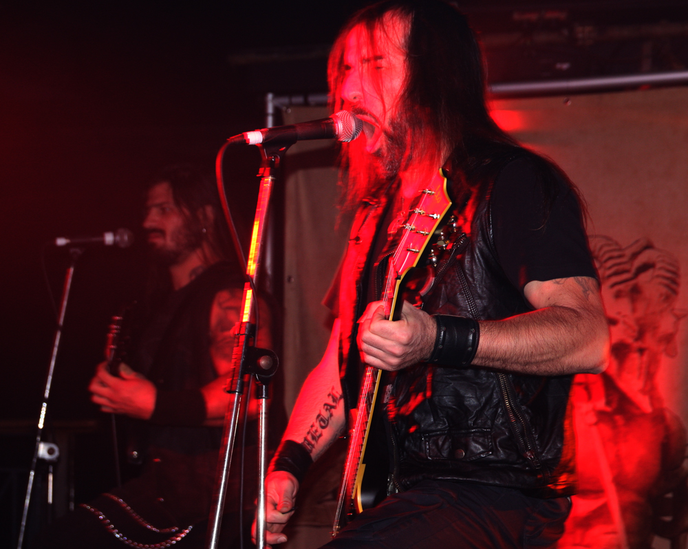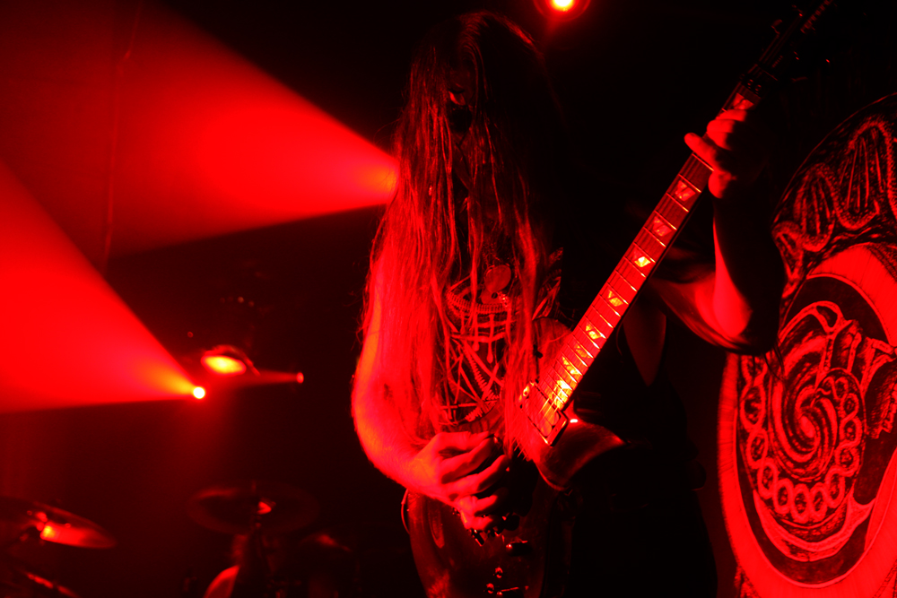 The clinical feudal drive of songs like ‘Hymn For A Dead Star’ are all encompassing, strobes flash and fights seem on the verge of breaking out to the tumultuous whiplashing riffs. There’s absolutely no respite as the manic intensity continues, the next craggy number chunders out proffering its arcane devilry and we seethe along with it. There’s some slower grooves and absolute crushing moments as we are flung further into the vortex, we are briefly informed there is no time for chit-chat and are flung back in time to the craggy ‘Dark Mutilation Rites.’ Smoke billows out like a fetid belch from the devil’s butthole, the lurching riffs sending us giddy. I pretty much spaced out completely during it all, I guess that was the desired effect. The fury of ‘Astral Path To Supreme Majesties’ snaps me out of it allowing me to stagger out the venue to the apt sound of bleating goats. A cataclysmic and intense show all round!! The Bloodshed Ritual is complete.
