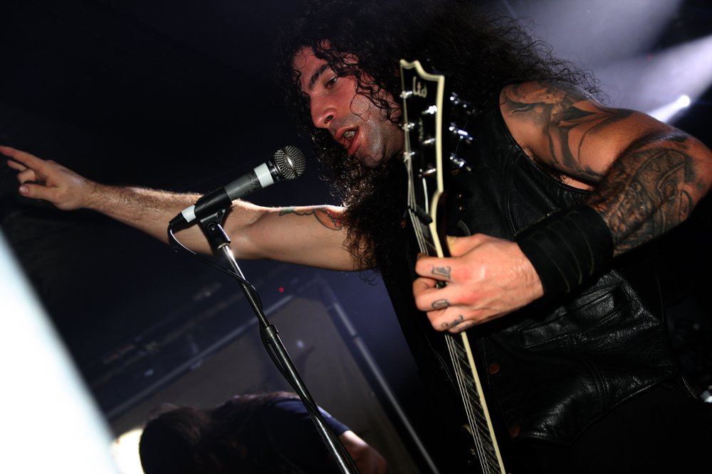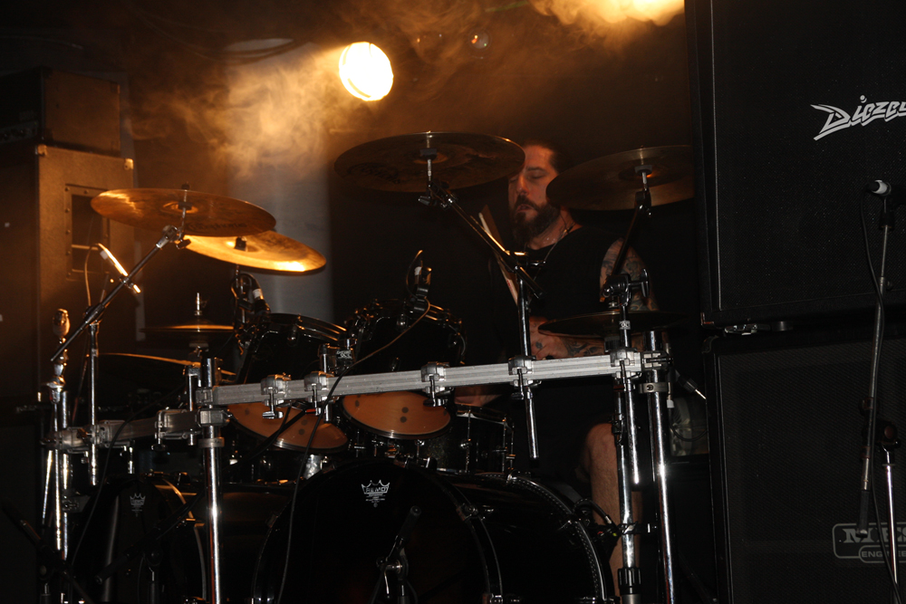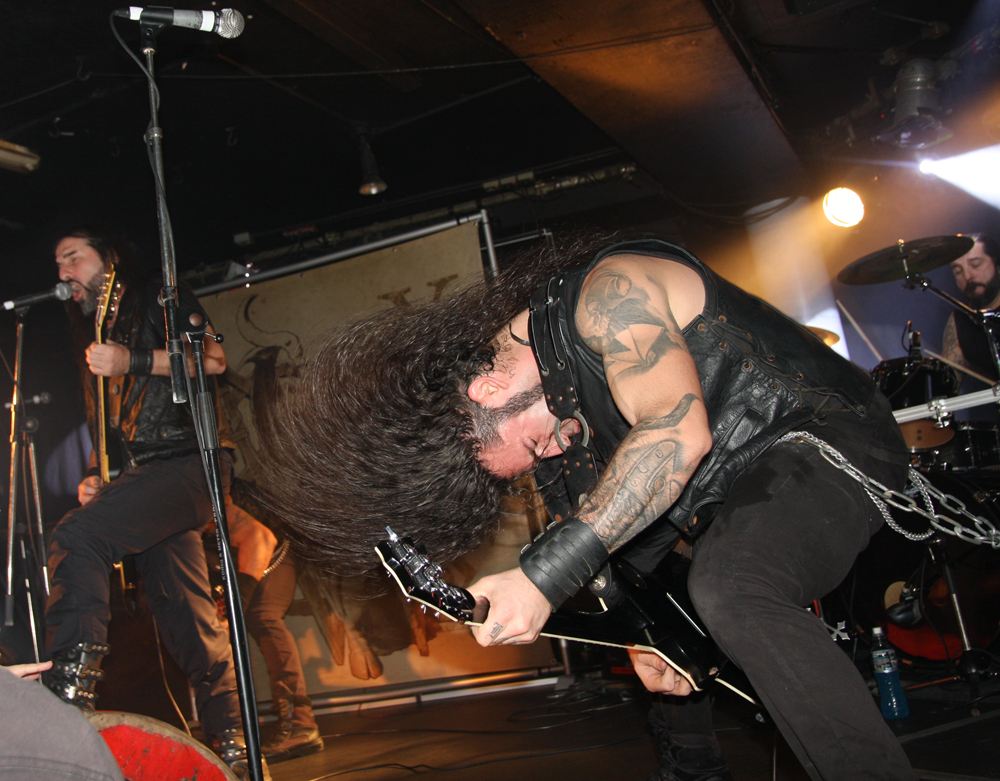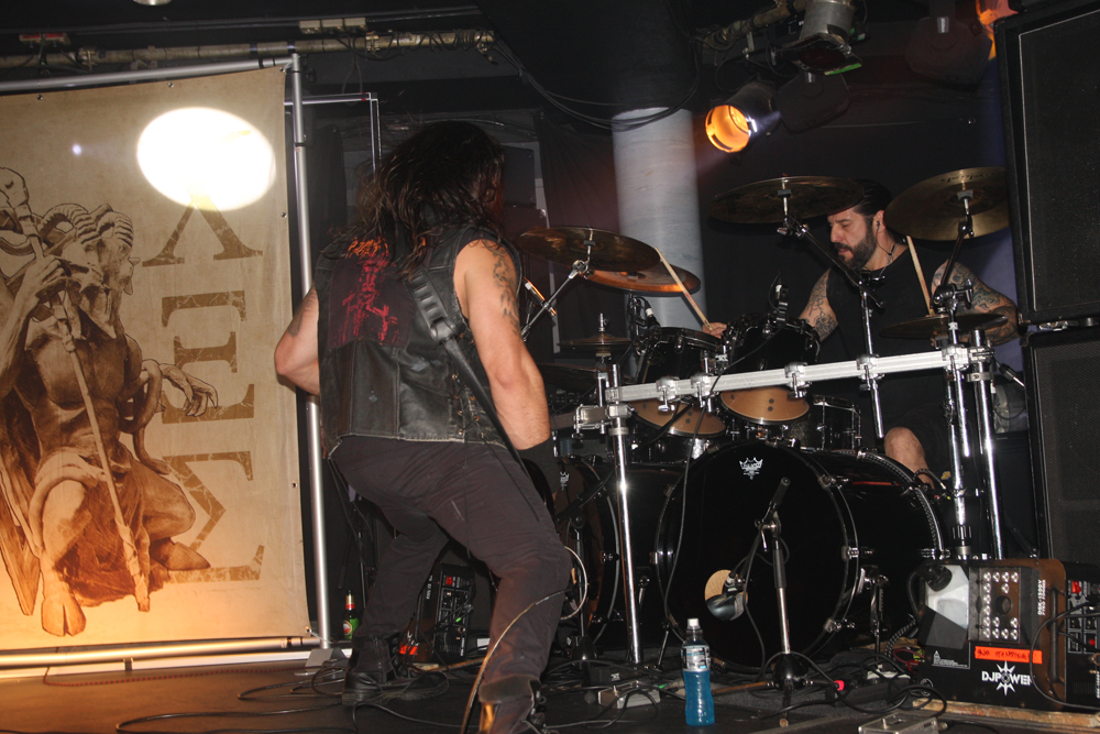 No secret really that the next couple of bands most recent discs are going to end up very high on my albums of the year list. Someone has to go first and it’s a little surprising it’s the Greek force of Rotting Christ. The place is stewed to the absolute gills as they march on and unleash their stomping latest ‘Ritual.’ Returning like conquering heroes the frantic driven fury sounds absolutely flattening getting things boiling over as Sakis roars out and unleashes the armies of Satan in a musical equivalent of an epic Ray Harryhausen special effect. Fists are pumped, guitar textures sublime and the sound is absolutely perfect. The constant stomping fury of the new material works brilliantly in the live setting, it’s a completely triumphant atmosphere and melody courses thickly through it all. The parts with sampled female choral fury just add to the thickness of the venomous delivery. It doesn’t actually feel like a gig, it’s more like a recreation of a famous historical battle and there can be but one victorious side here. ‘Apage Satana’ builds from the roots up around Themis tribal drum work out and the vocal chants, it’s all deadly and precisely delivered. Making a mistake and grabbing a much needed drink it is near impossible to force way back towards the front and the worship of songs such as ‘Grandis Spiritus Diavolos’ must be witnessed through a sea of heads and thrust up hands. Musically this was one of the best gigs of the year, comfort wise the worst; somehow though the ultimate declaration of ‘Non Serviam’ made it all worthwhile.
