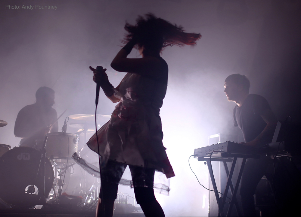 My first trip of the day to the Riley Smith Hall (the ‘Eyesore Merch Stage’) was for Portuguese enigma Sinistro. Their atmospheric sonic art pulled a big crowd (although the was plenty of space at the front if those stood near the doors would only move forward to allow those trapped outside into the room!). Opening with ‘Partida’ and then ‘Corpo Presente’, Patricia Andrade’s vocals were simply stunning, and it was clear to everyone in attendance that she is an exceptionally talented vocalist. However, her stage presence was a real distraction as she writhed and spasmed in front of the microphone stand, to the bemusement of pretty much everyone in the room. When the music is this good, and the vocalist this talented, there is no need for this level of histrionics.