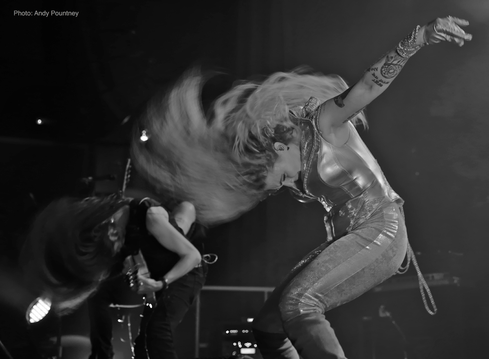 Confident on stage the band worked the audience with considerable aplomb but were let down by a fuzzy sound mix that rendered Brittany’s vocals almost inaudible and required that I remove my ear plugs to hear her at all. That sentiment was echoed by my shooter after he did his stint in the photo pit as they aired “Hold On” after a bit of small talk that the bass player, Brad Kennedy, was sporting a video camera and was streaming the show live. As the set progressed there was some improvement in the sound as a new tune, currently available to the public called “Trigger Pulse” was aired to a cheer as it seemed a lot knew it. Planting themselves firmly in the hard rock style, the song was catchy and lead nicely into the closing tune “50 Shades Of Evil” as I’m sure the bands fans were satisfied with their show.