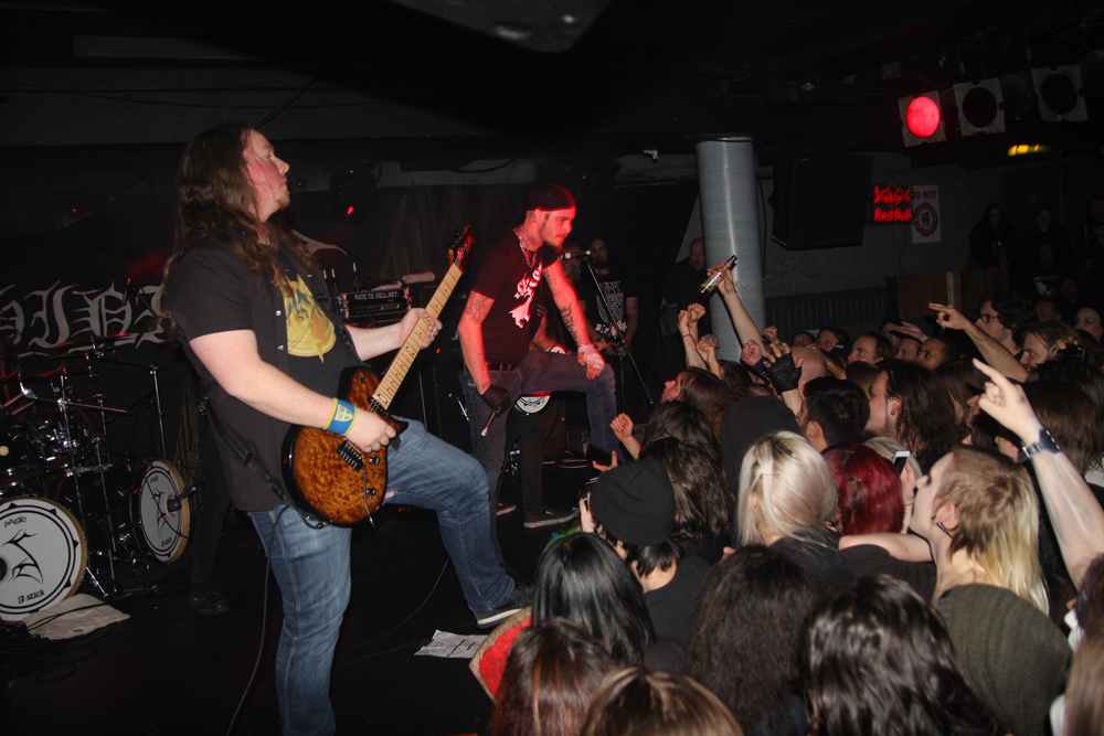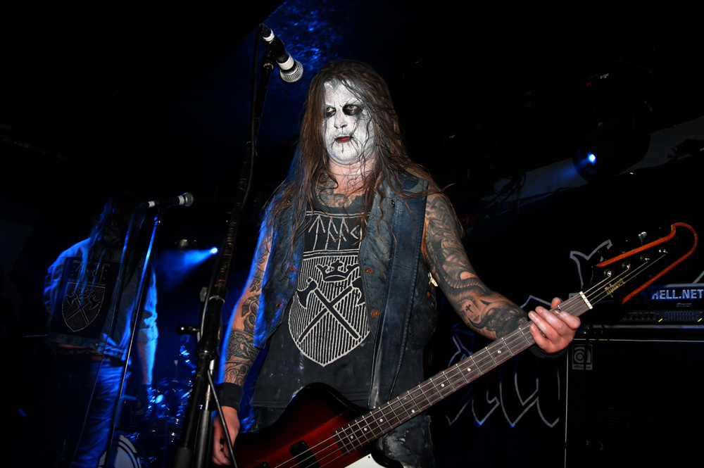 There’s really no hardship having a couple of extra drinks and waiting patiently and once doors opened, those that could be bothered were quickly in to witness Norwegian group Slegest. At least the band were not playing to an empty room and set about things with an extra vigour no doubt glad to be un-caged after a tedious lengthy journey. The outfit led by ex Vreid member Stig Ese plugged in and got down to it with their take on rocking, rolling bluesy stoner riffs with a large touch of Motorhead about things. New album Vidsyn, their second had got just a couple of listens from me prior to this and gone down very well on its review elsewhere on the site. I could hear exactly what the writer had said about it as we are jangled and bounced around by the first couple of short, sharp numbers. Focusing more on the rock side of things rather than adroit blackness, songs such as ‘The Wall Painted Black’ helped us shake off the cold from outside and got people moving toward the front. There’s a little bit of a garage vibe about things and even a Stooges kinda grit but also a grimmer and gnarly tone as the vocalist dangles his neck chain in front of the crowd and gravely rasps away. Mixing it up later with some classic NWOBHM style riffs, more than a touch of Orgasmatron etched melody and a burst of what wouldn’t be out of place on a Kvelertak number, things seemed to go down well with many although truth be told I wasn’t fully engaging with it all. As Slegest wrapped things up there was a mention that they were playing it up a bit like an 80’s pub rock band; I think I need to go back to the album and give it another try.