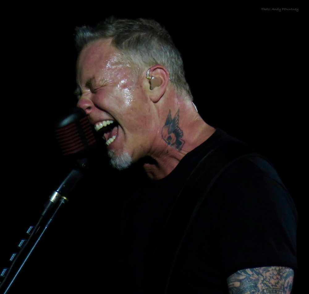 At the end of the track, James approached Lars’ drum riser and call him down on the stage where they had a brief conversation before James addressed the crowd once again saying “I feel really bad, I feel terrible. We don’t sound good man…..and I hate that”. He went on to say, “I don’t want to let you guys down, I feel really bad, I want to stop. It’s not fair to you guys, you paid a lot of good money to come and see your favourite band and we don’t sound good…..Would you rather hear us sound better another time? I want to stop, what do you say?”. Inevitably the crowd roared “No!” in unison giving their wholehearted support to the ailing frontman.