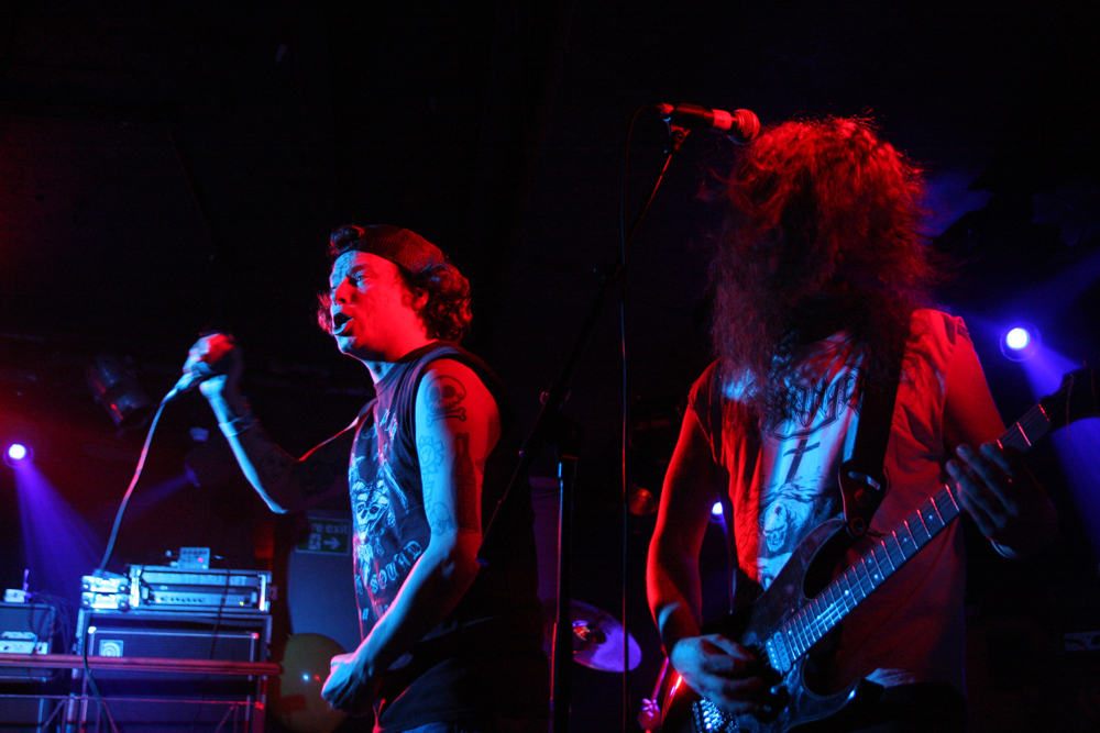 There’s normally all sorts of ghoulish behaviour once the sun sets in Camden Town but tonight was going to be like none other and all manner of grizzly and gruesome things were about to happen in the Underworld. First we had a date with a Lunatic Hooker and although I thought we had never been acquainted on closer inspection it appeared that to some extent she was an old flame. This band from the UK are actually comprised from the jumbled limbs past and present of acts such as Pythia, Abgott and Descent. There was little in the way of foreplay as they got down and dirty on stage, it’s as though they are going for the climax straight away and bomb in with a loud, dense and battering sound. If anything it’s too loud and distorted and the fuzzy ballast has an almost HM2 level of scuzz about it that sends us reeling. It’s kind of like a mix of Entombed and a 70’s XXX Roughie and when you throw a song about a walrus in the mix it probably deserves banning. The hooker is obviously not going to survive this ordeal, carved up giallo style with a cut-throat razor and launched through a closed window in a shower of glass and gore. An album is on the way so we will be able to get any sharper edges from the sound out of that but as Blood Eagle proves at the end, the band flail off the skin and deliver some good and efficient butchery here tonight.