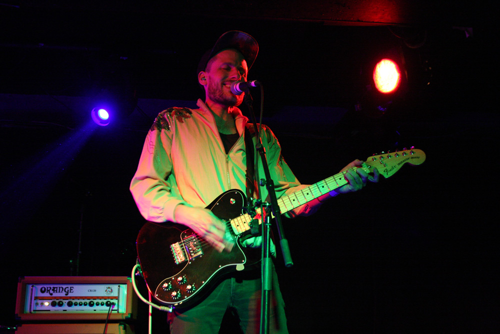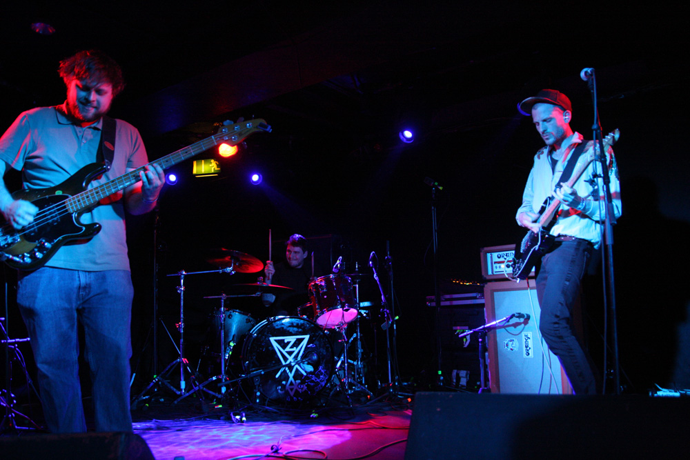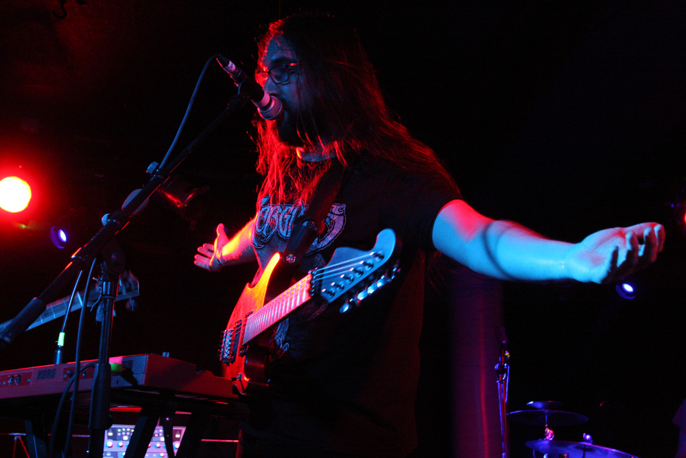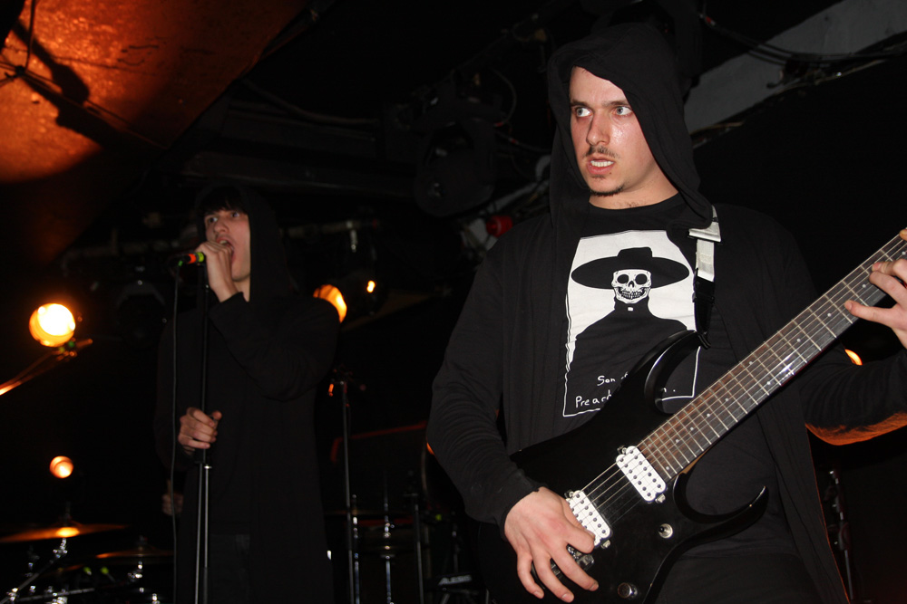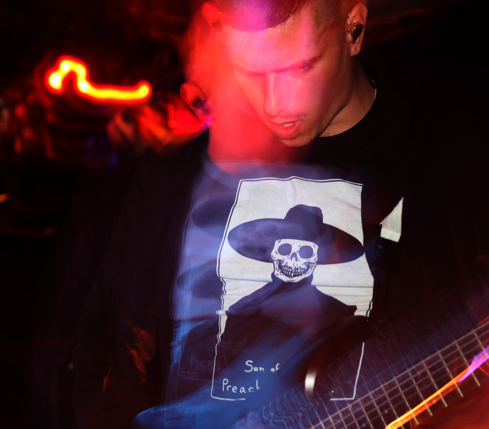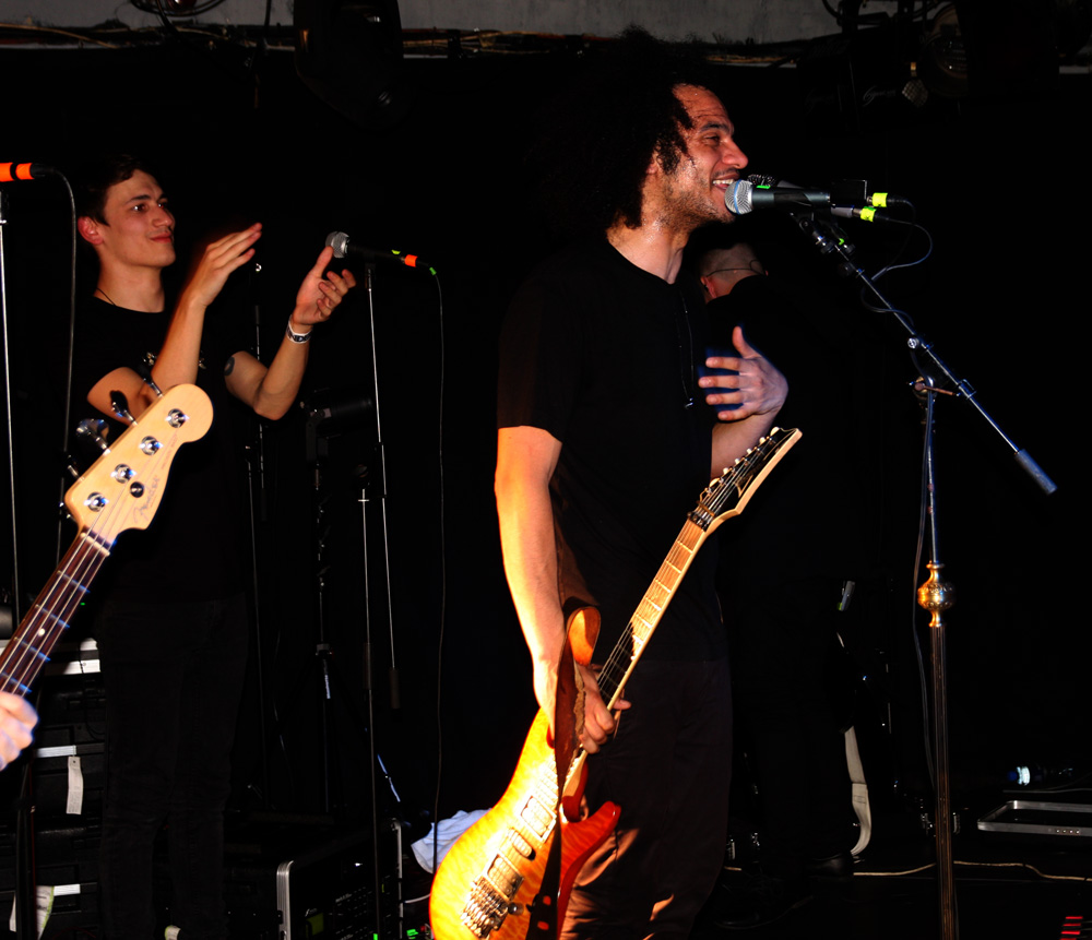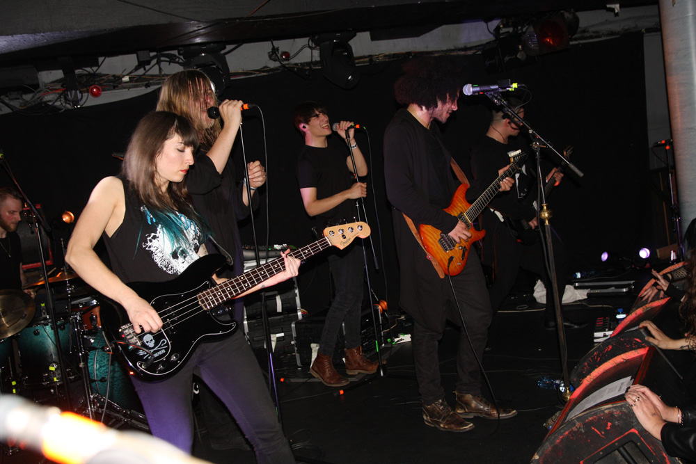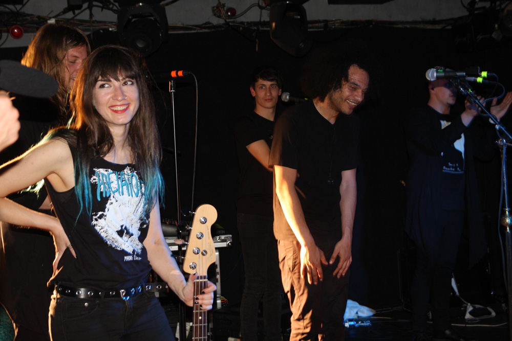 I had checked out Pryapisme earlier today and discovered the band playing “Weird Music From Clermont-Ferrand” also have ties to the excellently eccentric and strange Stagnant Waters. One listen to their latest EP ‘Repump The Pectine’ was all it took and I grabbed a copy as soon as through the doors, still that was nothing to prepare for just how marvellous and out-there the band are live. It sounded like the first track from this that they started off with, we were warned that song titles were ridiculously long and French so was not bothered too much about trying to document them. Playing around on various keyboards and consoles it seemed like this lot had been unleashed from their basements to create mayhem and that’s certainly the sound we got. Think 8-bit video game sounds, some gabba blasts, riffs that would give your average Cardiacs fans nightmares and full flowing proggy noodling and you are somewhere in the right area. It’s sheer bloody lunacy, totally unique and of course I along with quite a large section of the audience seemed to be totally enjoying it. I thought one song was introduced as Supermatch Game although I’m sure it wasn’t but once in my head it was as if they were aping the annoying melody of that terrible old quiz show, my brain was definitely getting messed with here. There’s deranged piano sound cutting in and a sudden section of ice cold synthwave sounding like it’s escaped from, well New York in a movie sense. It’s impossible not to get caught in the grip of it all and boogie on down. We rock out to some sort of Moroder 80’s cop show sounding theme which spirals into Italian giallo soundtrack craziness wigging out in a proggy frenzy. The band are animated and quip away between songs telling us to expect one that’s “as cheesy as fuck.” It sounds like we are being attacked by Galaxians, there’s a guitar break then complete mentalism with drum and bass parts, some Hawkwindy space rock and whatever else they could throw in. Naturally after every song applause is close to bringing the house down. I’m sure there were some normal people in the audience, possibly hiding at the bar as the band whip up a grand-guignol section of pure terror before flying off into a salsa dance but it felt like I was surrounded by Zappa enthusiasts and gamers in my head. Next its lounge-jazz, some bontempi keyboard sound, smooth then fast, black gloves on, strangulation in progress, stabby motions, total bloodshed and an eye gouged out amidst the audial mayhem, in musical form of course. Pryapisme with a polka charged dervish of Night On Bare Mountain! I have no idea what Mussorgsky would have felt about it as things stylistically shape-shifted but we loved every deranged second of it. I think I have a new favourite band but considerably less brain cells.