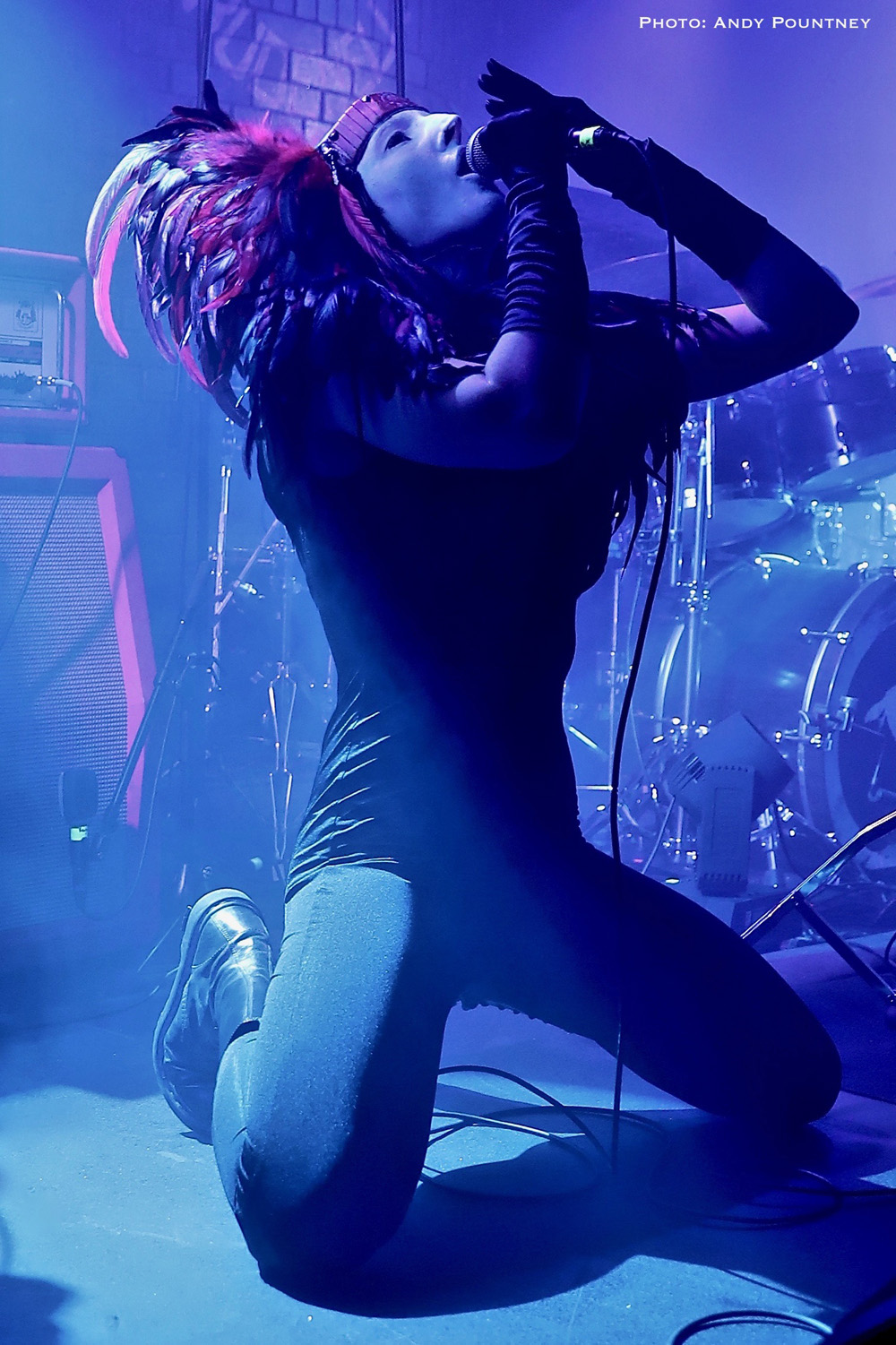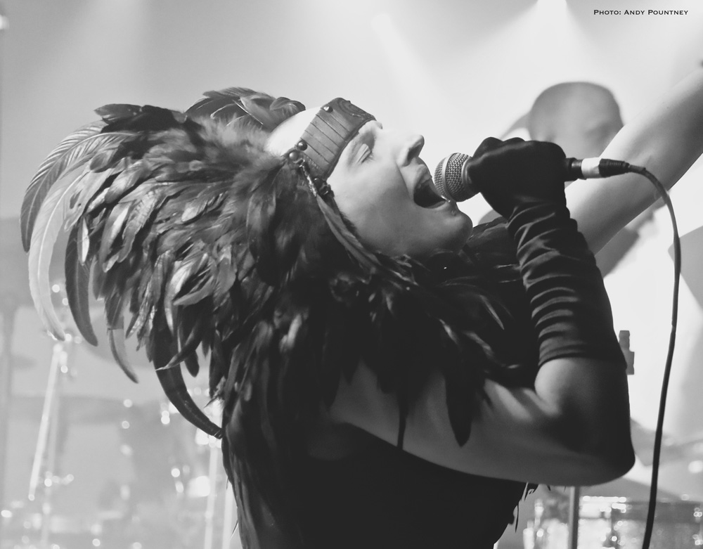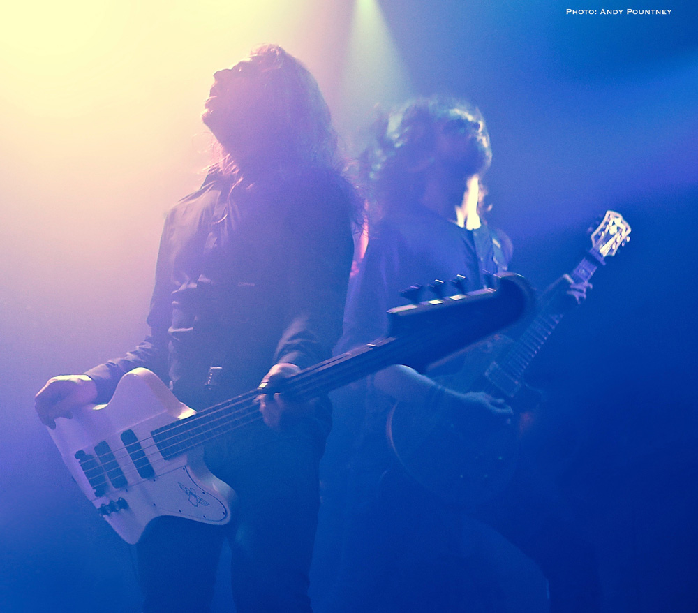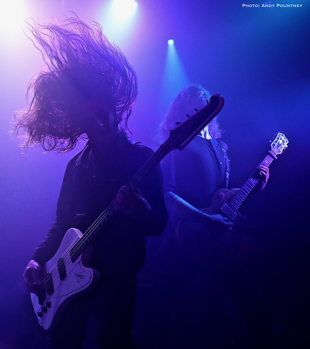 Previously I saw Katatonia play an acoustic show at this venue three years ago which was absolutely packed solid. This gig wasn’t as full as that one as the opener for the night The Great Discord, from Sweden, were already on stage at 7.30 despite the event saying doors at 7.30. Luckily they had only just started and a small gathering of people was watching their enigmatic singer decked out in black sporting a black headdress glide around the stage like an obsidian angel. Stage space was at a premium as the second drum kit dominated the front but still allowed some movement as they played a tight set of progressive metal laced with atmosphere and occasional aggressive outbursts. As Fia (vocals) stalked the stage her onyx aura stretched to her eyes which were also black and created a ghostly, even ghoulish look that fit with the music overall. With no song titles being announced the band flowed through each song with confidence though the backing track was a little excessive I felt in places. However if they did have a keyboard player I am not sure where the person would put his/her gear as it wouldn’t go on the stage. With very little interaction between the crowd and the band they produced a slight mystical edge to their performance which was going exceptionally well until about two thirds in, when a massive feedback noise erupted causing many to grab their ears for protection. It seemed to be caused by the bass, though I’m not sure as all power was lost leaving the drummer to continue playing and Fia to remain singing without a mic which was admirable and utterly professional as the audience appreciated this aspect of their show. Power was restored but was fragile for the rest of the set as sudden drops in power kicked in randomly ably assisted by that loud noise, I was glad I was wearing ear plugs. Battling through the problems the band’s music was warmly appreciated, allowing good guitar work to compliment the vocal neatly and with passion as Fia appeared to be acting out every song with flamboyant arm movements and occasional crouching to the floor. As their set came to an end, the audience cheered rapturously at getting through it under such duress and picked up a few new fans along the way including myself.
