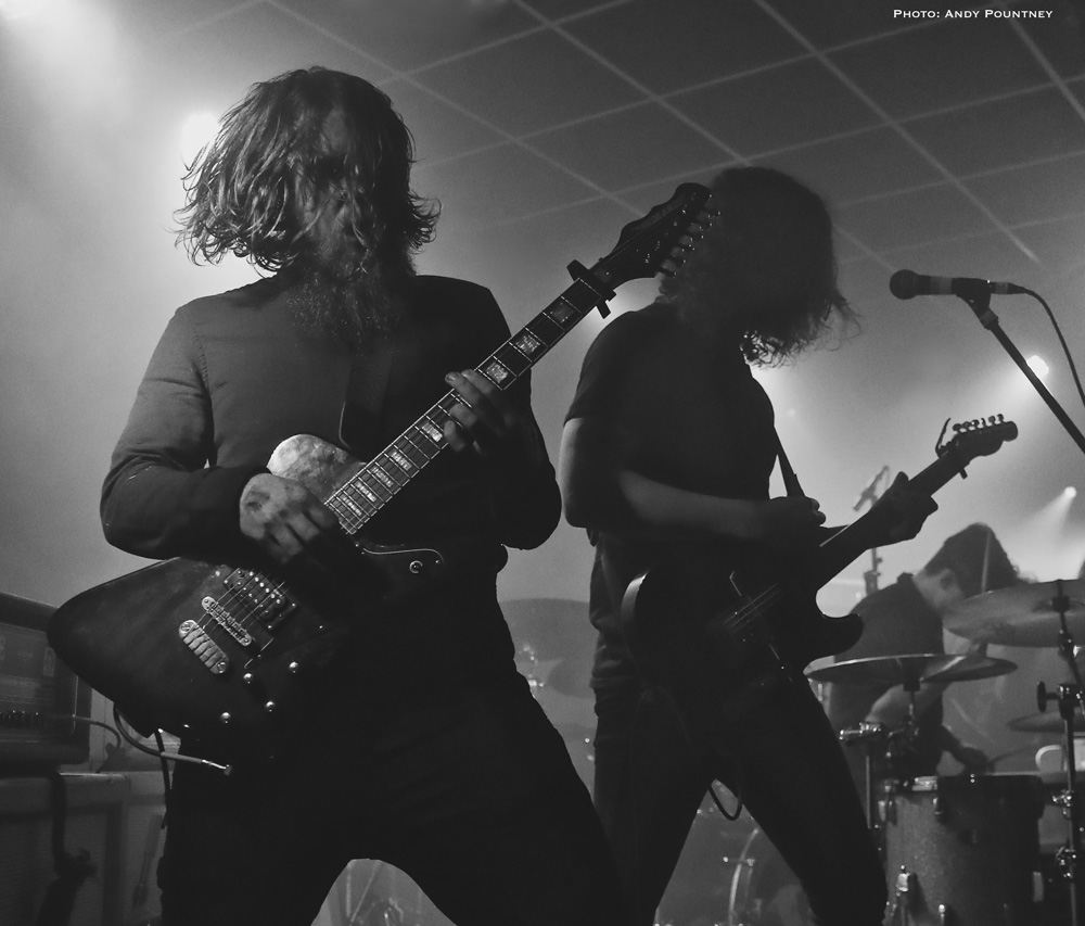 I purposely did not investigate either of the support acts for this gig preferring to be wowed when I saw them, as the muttering of a friend of mine said she had seen them at Bloodstock and thought they were shit, her words not mine. However I kept an open mind as US outfit Ghost Bath arrived on the still limited stage space made even more cramped by there being three guitarists but at least one of the guitarists was singing. Remaining static throughout the set purely down to movement being virtually impossible the band launched into their set amid a deluge of smoke effusing from the stage like a carpet. Initially the sound was muddy softening the harshness of their blackened art somewhat which was peppered with depressive and melancholic elements that came across well with the now increasing crowd numbers. As their set progressed through various layers of sonic despair my shooter said the band was like Deaf Heaven, which I found to be true when I gave them a quick listen. The bands black metal approach was tempered by sublime guitar work fitting with a post-black ethos through their set. Again no song titles were being announced as a lull in the smoke enabled me to see that the band had some paint around their eyes which if I’m honest hinted at trying a bit too hard as their music said plenty. The brief silent pauses between songs was eerie at times creating a good atmosphere as a lot of their stuff also reminded me of Agalloch and A Forest Of Stars. There was an intensity to their set that was tinged with desolate inhumanity as the songs carefully crafted soirees of pernicious barbarity with serene guitar work, giving the harsh vocals a savage edge. Whilst stood watching it was clear that the band wasn’t to everyone’s taste as some retreated from the room to ready themselves for Katatonia, but personally I enjoyed their set a lot, with its varying sonic hues and malicious intent being expertly delivered through songs that linked consummate violence and palpable tranquillity.