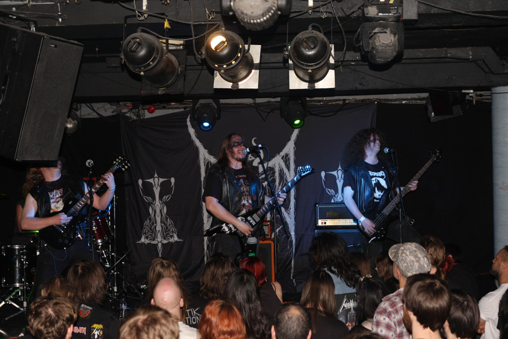 There’s a bit of a back-story to this show. If you were not aware the Bröderna Hårdrock Gustavsson bros from Nifelheim are Iron Maiden fans and that’s putting it mildly. They are what you can only describe as absolutely fanatical on the British HM institution and massive collectors of all they can get their hands on. What they wanted was a promoter to pick them up to play London the day before the Maiden extravaganza at the 02 arena. Old Empire picked up the call, flew them over here to do just that and we can only hope that Dicko put them on the guest-list.