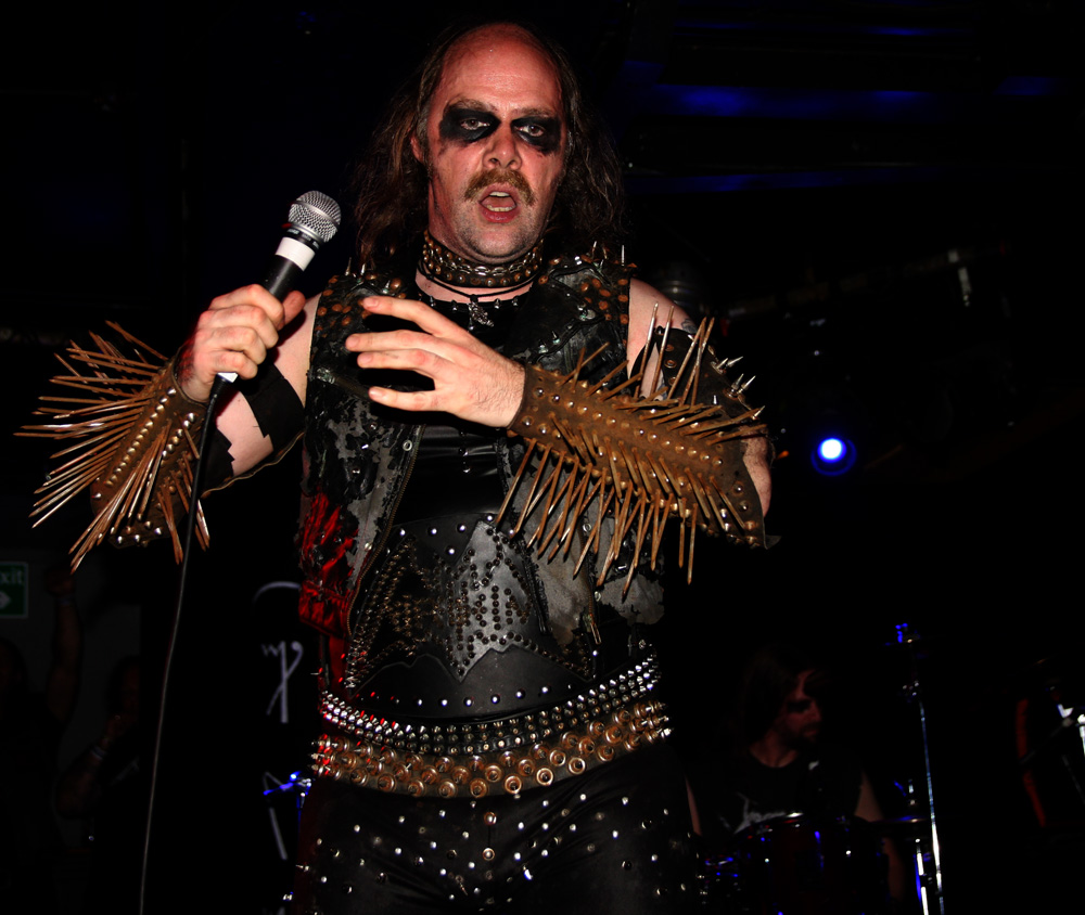 However this was one of those shows where the majority of people were more interested in drinking in the street rather than watching the supports. There must have been 100 people out there and some proved themselves too drunk to even gain admittance resulting in police being called on them. All a bit silly with the bouncers obviously on particularly high alert. Craven Idol fare slightly better audience wise as they come on all barbaric, hairy and formulate a blistering attack. Having just released new album ‘The Shackles Of Mammon’ they quickly cast off the chains with the first couple of cuts from it. I was taken by surprise at first having only given it the one listen so far as ‘Pyromancer’ is an all too brief burst of fire and seemed over all too quickly. There’s more substance to ‘A Ripping Strike’ which certainly doesn’t defy any trades description act, as it gathers pace and speeds out the traps with a choppy fury that’s designed to rip heads off. Front-man Vrath seen recently down here in Crom Dubh admirably lays out the vocal fury and there’s plenty of fluid melodic riffing as well as pulverising beef from the drummer. I got the impression they warmed up more as things went along and with it the band responded with fire in their bellies getting more furious along with it, older songs such as ‘Codex Of Seven Dooms’ really nailing things with galloping bravado. Those not outside seemed a bit on the subdued side though it was as though they were saving themselves for the main event.