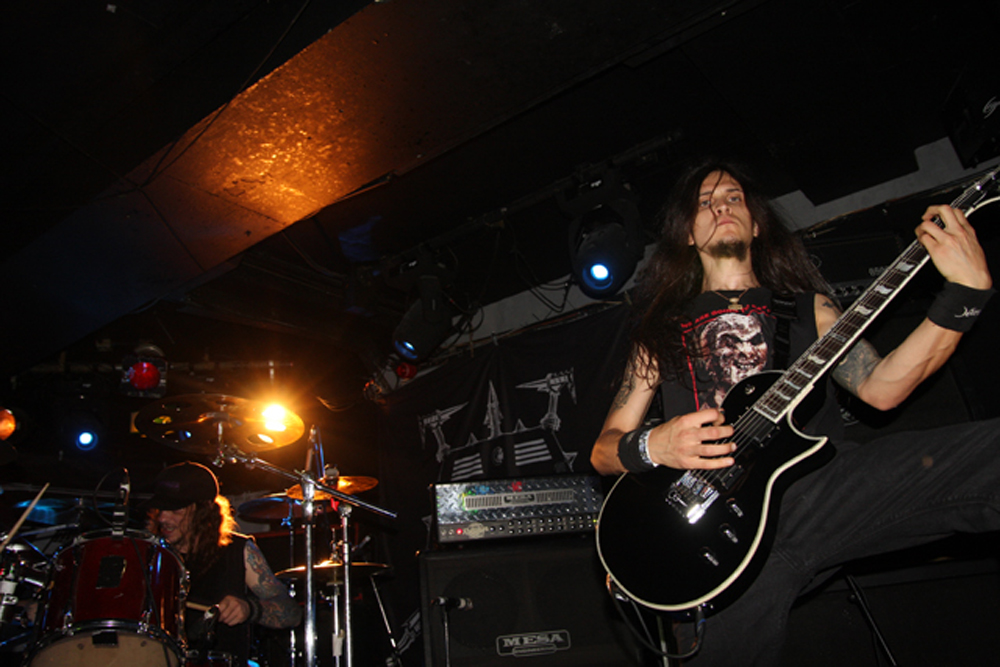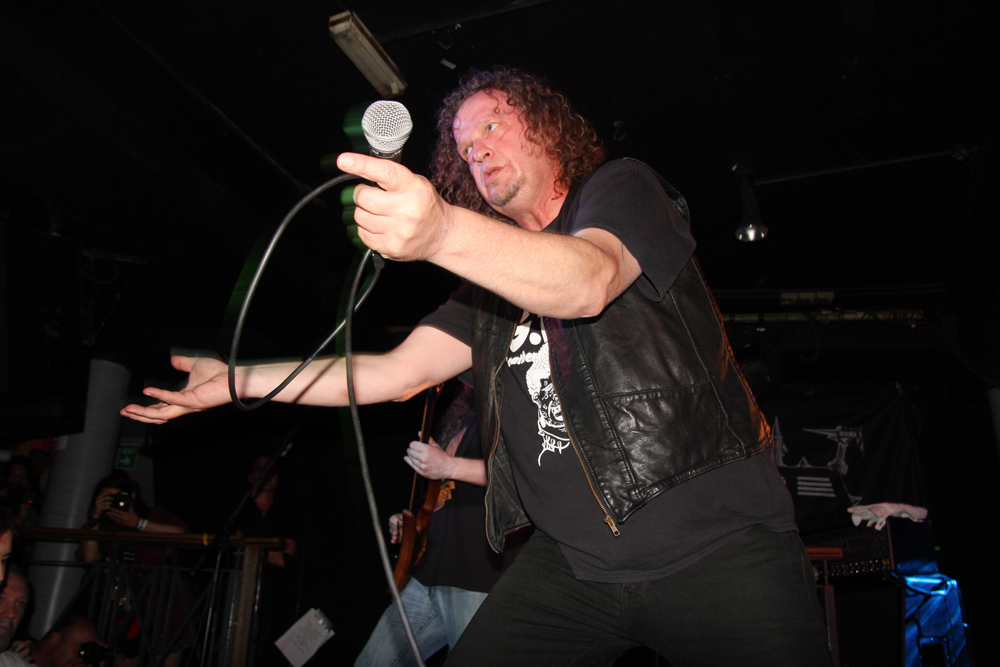 It was only last November that Voivod last visited this very venue but they are still greeted like conquering heroes tonight and although not packed there’s a more than healthy turn-out. Just before they come on I see some lost looking South Americans outside so I am guessing Nuclear finally made it, shame they were too late to play. You cannot help being put in a great mood by the Canadians as well as obviously being totally energized by their full thrashing psychedelic madness. It’s mainly down to Snake as he never stops smiling, so in his element and obviously loving what he is doing even after so many years. Those songs go back a long time too before some here were even possibly born and as ‘Killing Technology’ thunders out the speakers we are all very much flung into the maelstrom and robotically consume it. The crowd go mental and the air is fully-charged throughout. The old moves onto the recent and although at first ‘Post Society’ sounds somewhat lethargic and weary we have heard it enough to realise it is a song that should not be taken for granted and one with hidden depths. It’s already rather like greeting an old friend now and as it powers off with a progressive flourish it’s obvious that the band have everything well and truly nailed down.