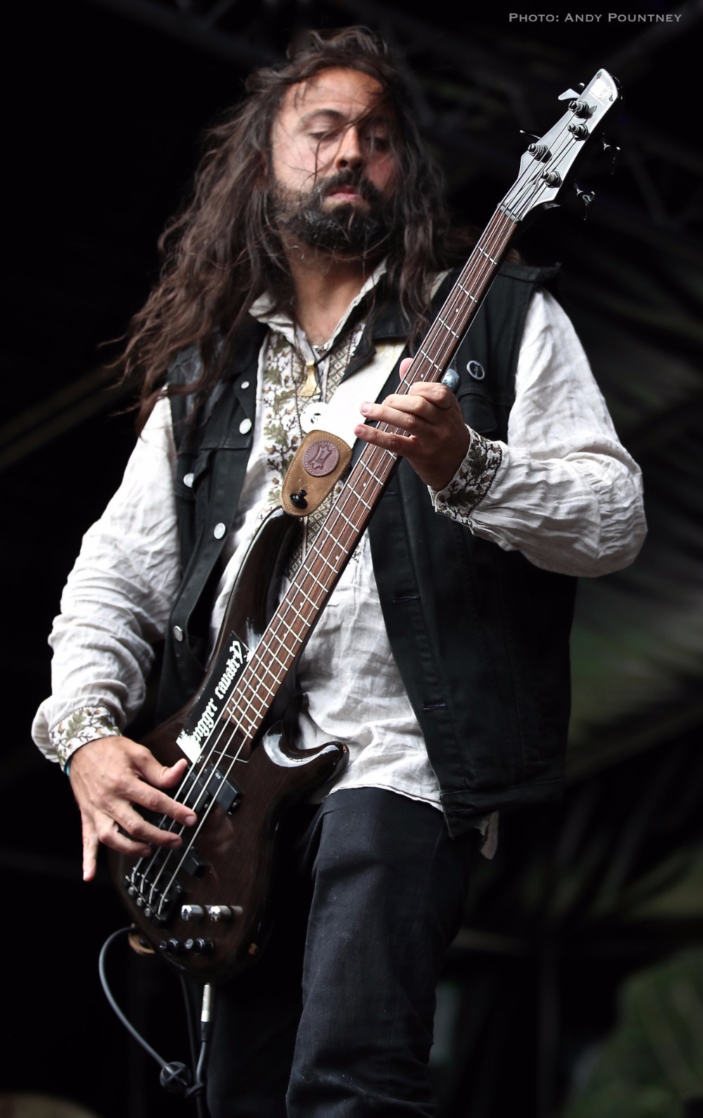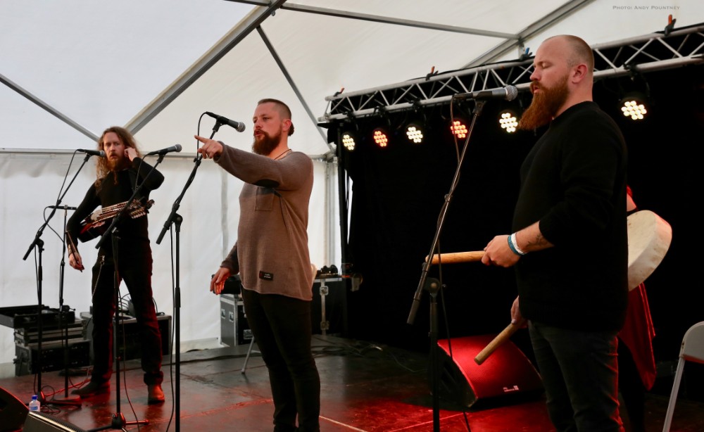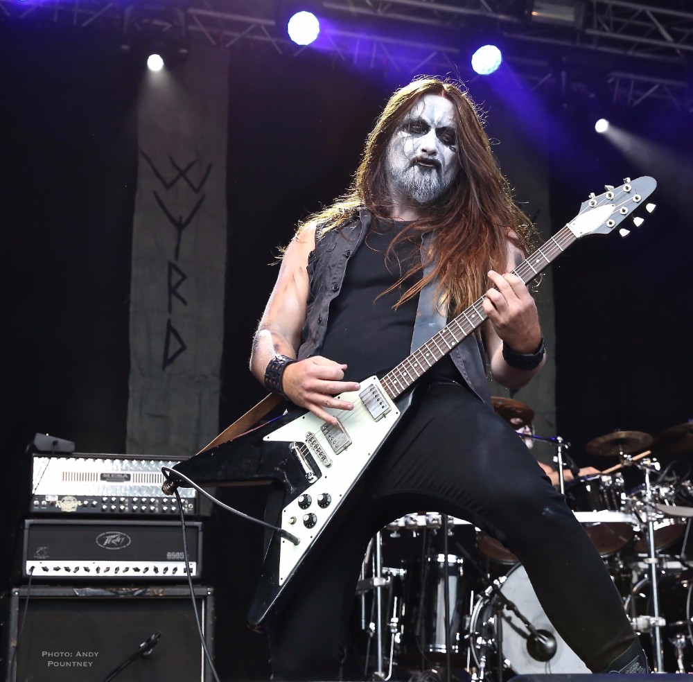 Another scoot across to the Viking stage this time to see Byrdi, a four piece band that played a beat heavy folk music with three guys singing. Starting with a very cool intro piece the percussive beat was struck out by a girl who hit the skin of the drum she held hard, very hard but also used it delicately to exquisite effect balanced with the vocals as the guys played other instruments such as mouth harp and stringed instruments played with great subtlety but there was no time to rest before quickly shuffling back to the main stage for Gaahl’s Wyrd and me having a major brain melt down.