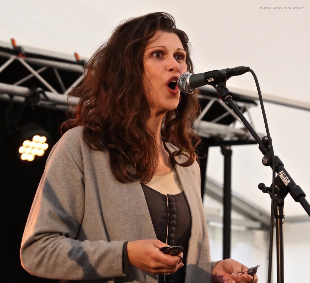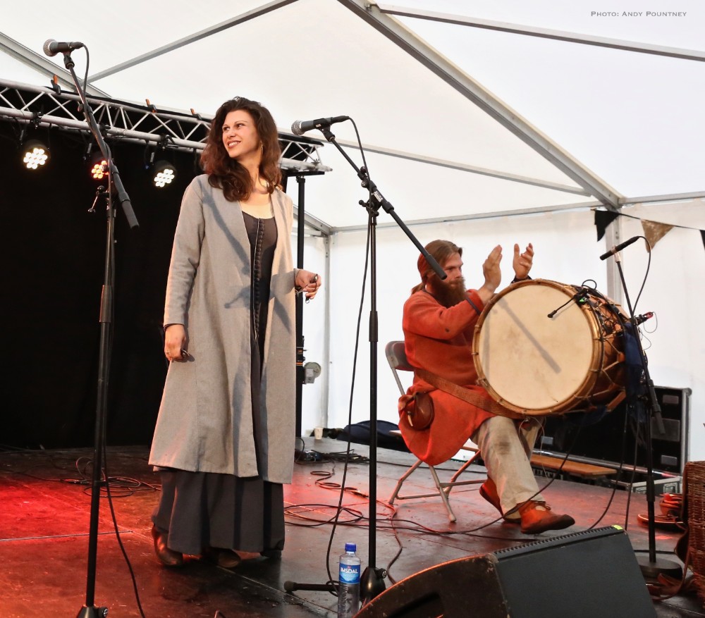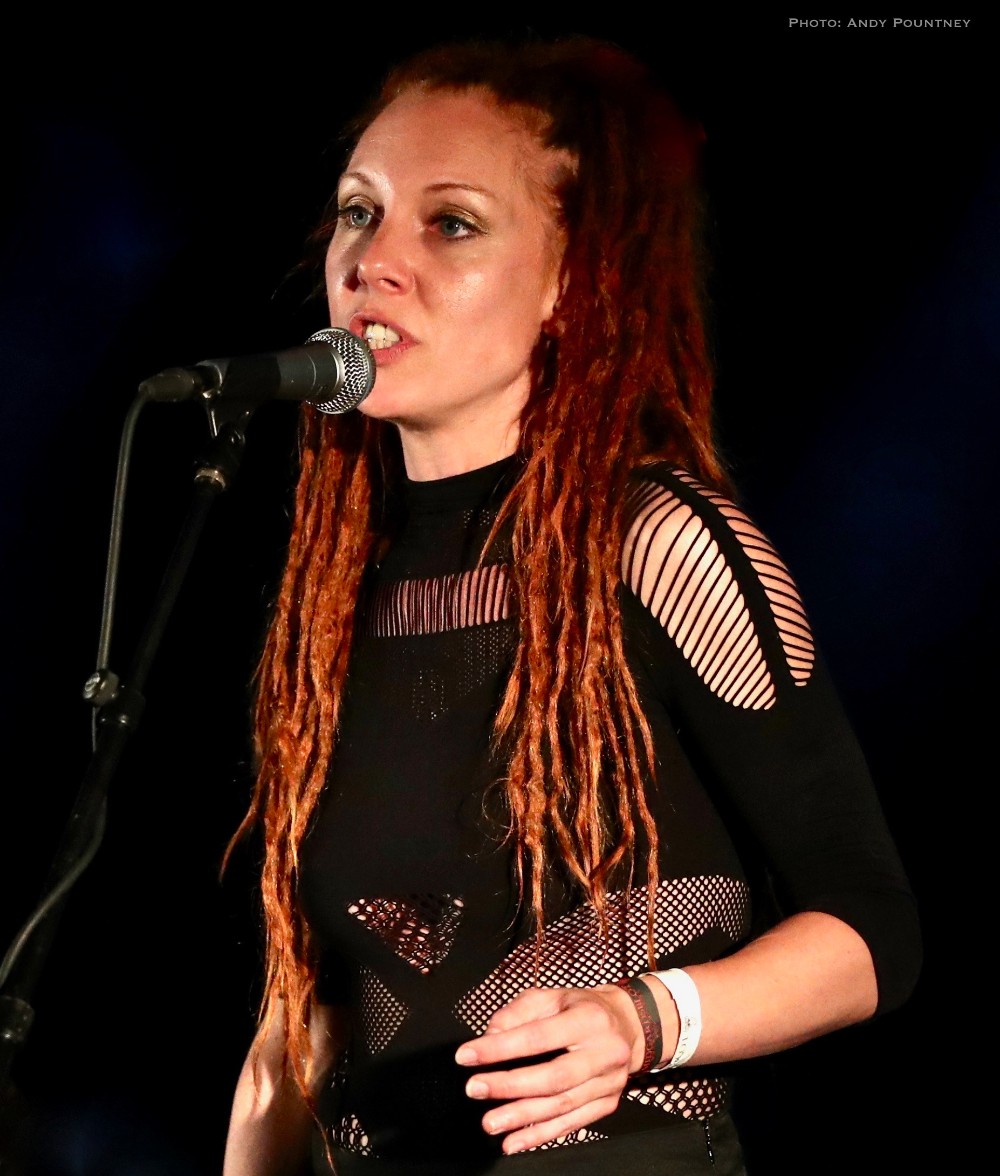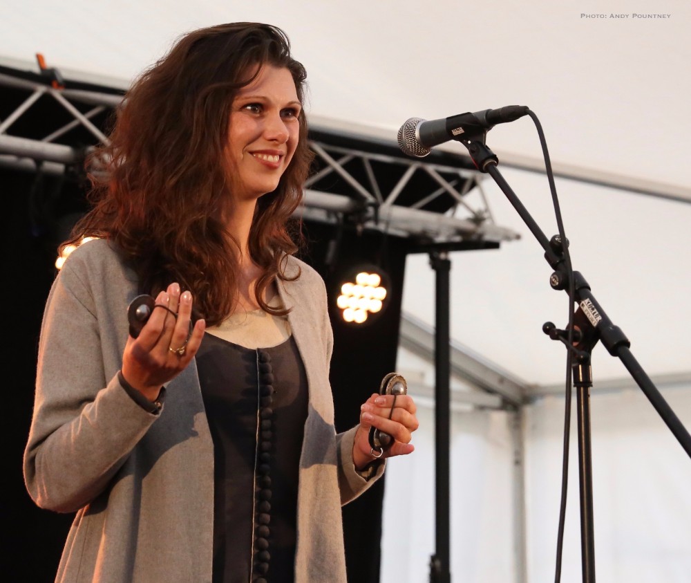 The three piece of Virelai were very inauspicious, two guys, one on violin and one with a drum and a lady holding finger bells and doing vocals initially. The violin guy also had ankle bells and the moment they started the energy that exuded was infectious, replete with superb vocals as much of the percussion was done with clicks, feet stomps as the lady also did some yodel like vocals. Every song was catchy and the audience loved it, as did I, you couldn’t help but be swept along as she acted every lyric and even though I didn’t understand the lyrics her gesticulations were enough to get the gist, as she crouched on the floor for moody sections but overall the bands set was utter fun from start to finish and completely enthralling.