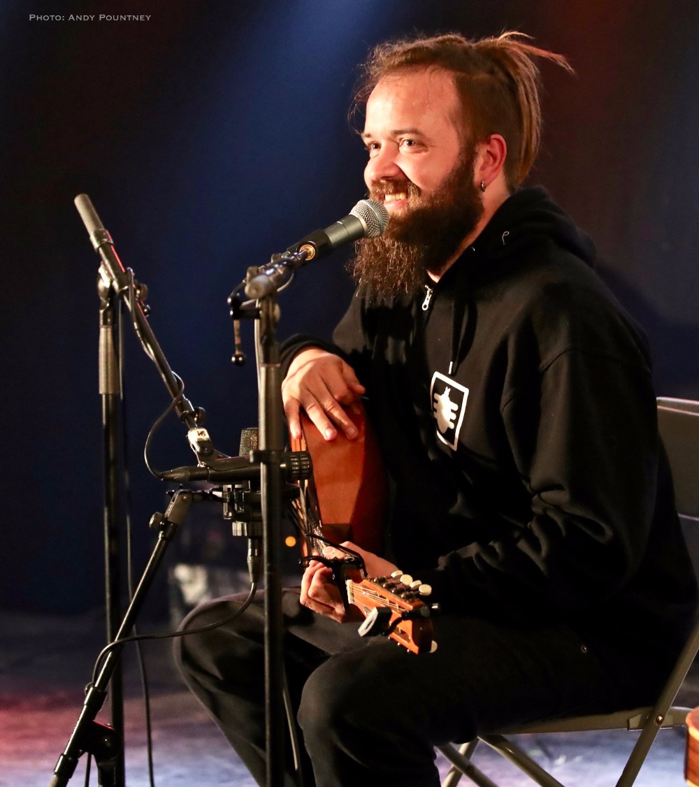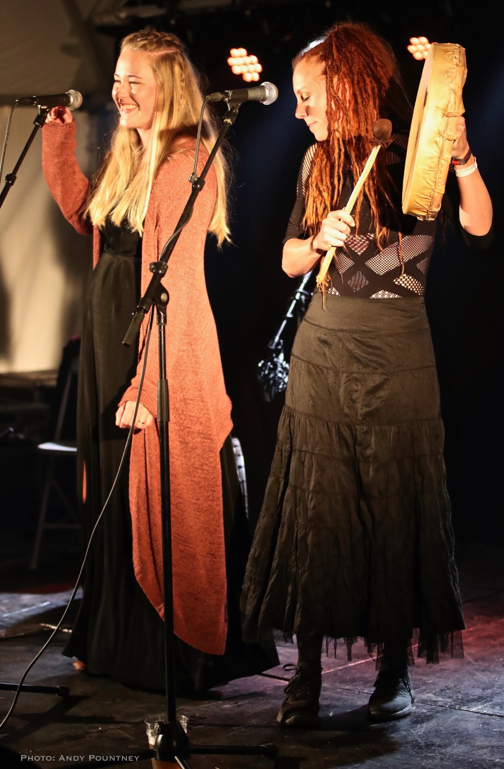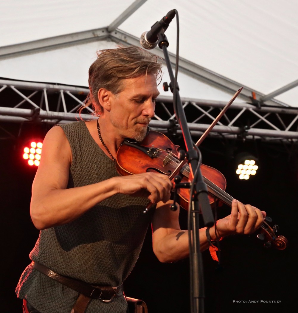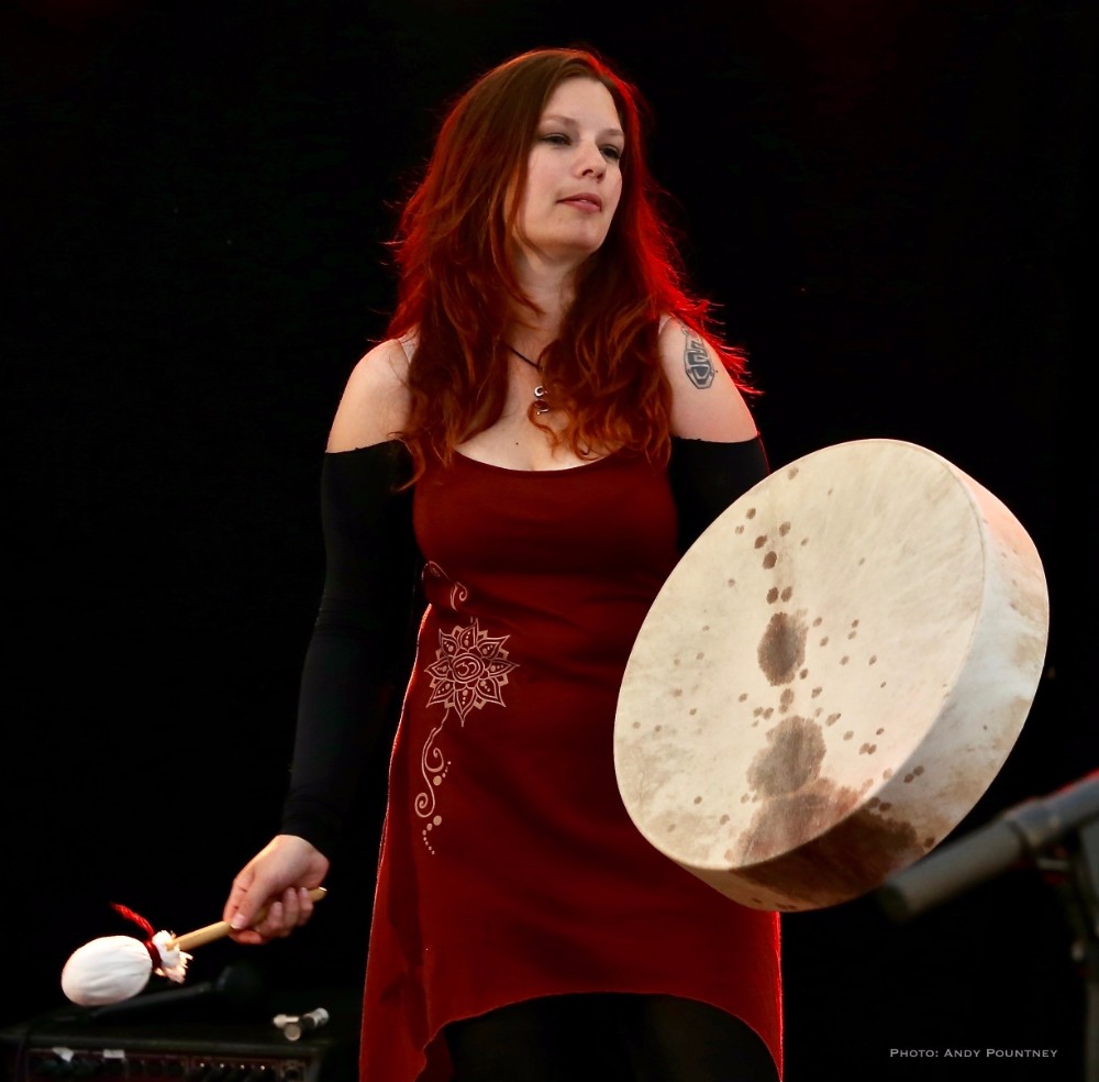 The three piece of Virelai were very inauspicious, two guys, one on violin and one with a drum and a lady holding finger bells and doing vocals initially. The violin guy also had ankle bells and the moment they started the energy that exuded was infectious, replete with superb vocals as much of the percussion was done with clicks, feet stomps as the lady also did some yodel like vocals. Every song was catchy and the audience loved it, as did I, you couldn’t help but be swept along as she acted every lyric and even though I didn’t understand the lyrics her gesticulations were enough to get the gist, as she crouched on the floor for moody sections but overall the bands set was utter fun from start to finish and completely enthralling.