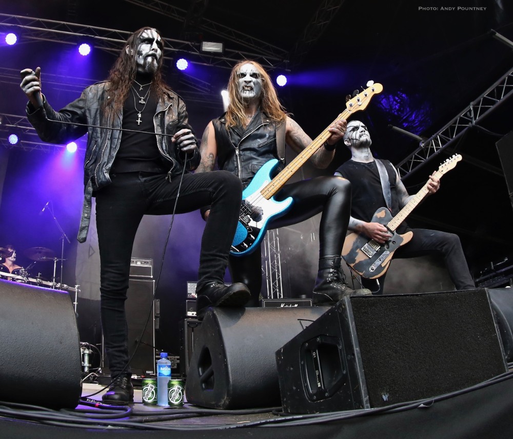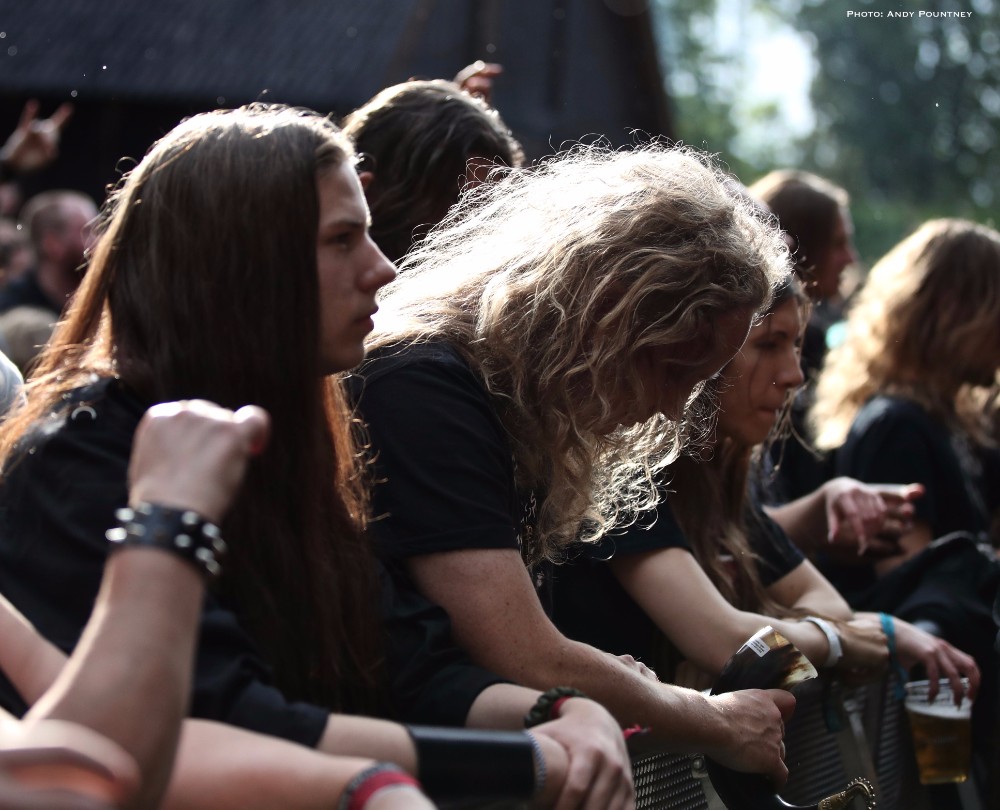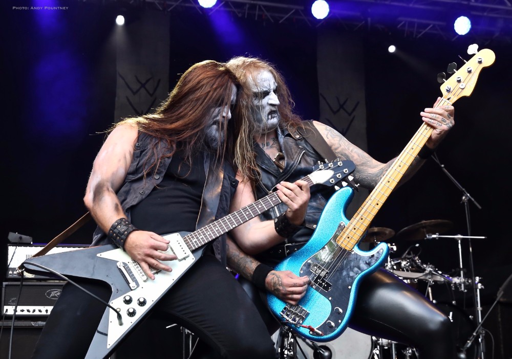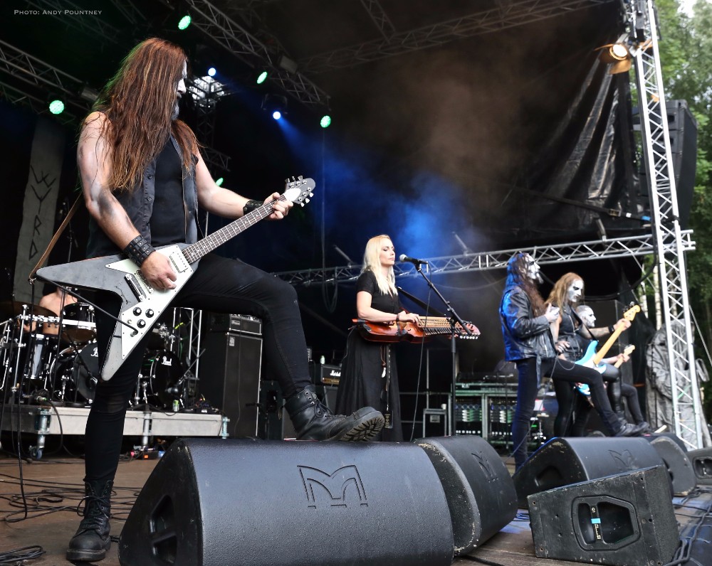 Having seen Winterfylleth pull off a successful show at Bloodstock this was a whole new setting for the band here as the number of people watching initially were the diehard fans, which was rectified as the bands set progressed. The sound was great as their epic black metal within the pine tree shrouded main stage was perfect for their music which had some technical issues initially causing a pause after the first track. Sorting things out “The Swart Raven” followed with the sun blazing down the band executed the harmony vocals flawlessly which must have acted as a calling as people started to descend on the stage to watch. Retaining momentum that went into “Whisper Of The Elements” as more people gathered reacting to their epic compositions the band beamed in appreciation. Announcing that “time is short and our songs are long” they played “A Valley Thick With Oaks” and left the stage knowing they had captured the hearts of Midgardsblot faithful.