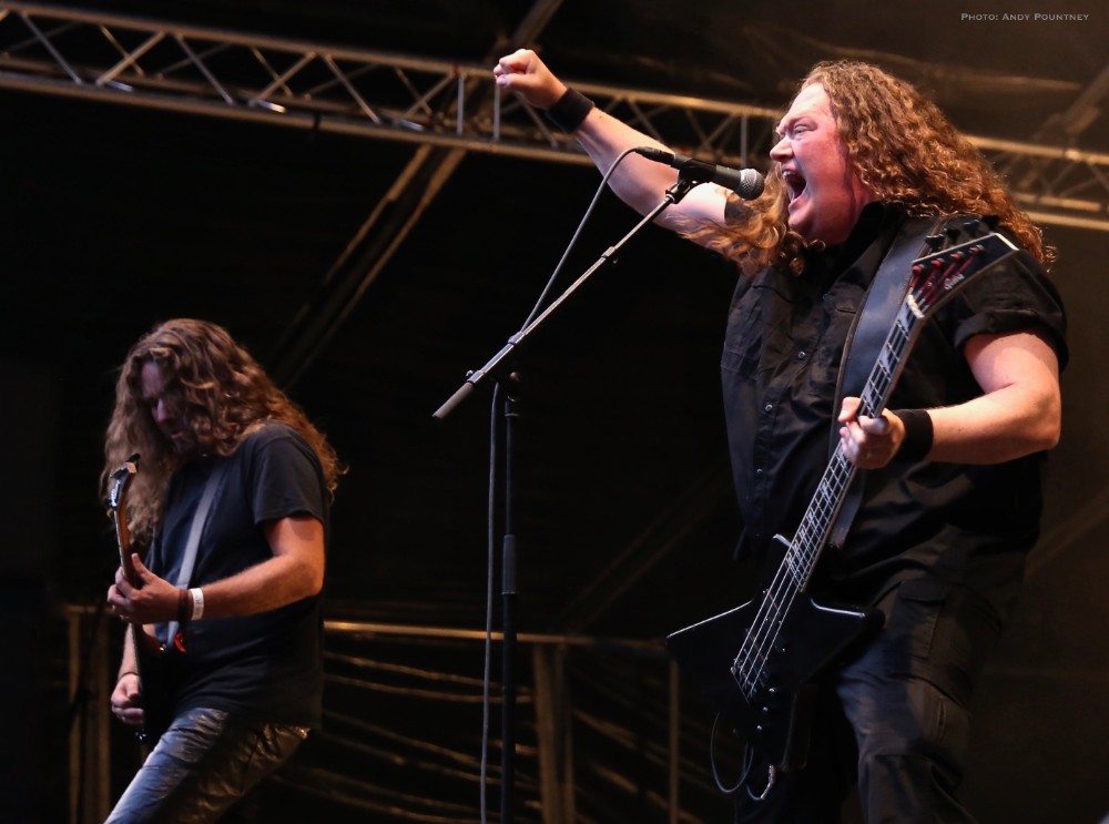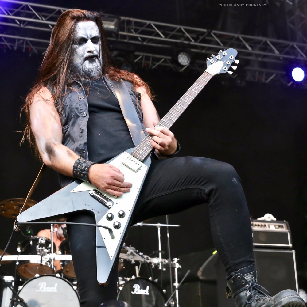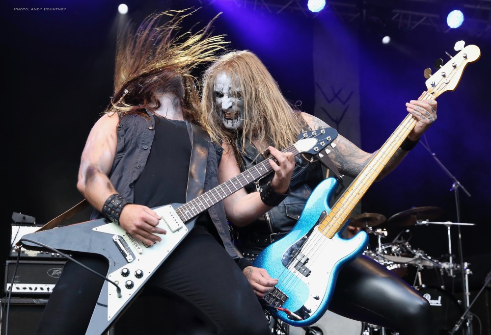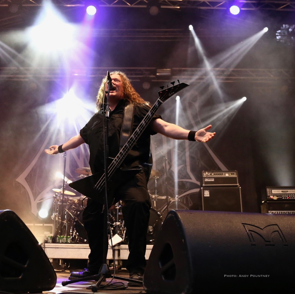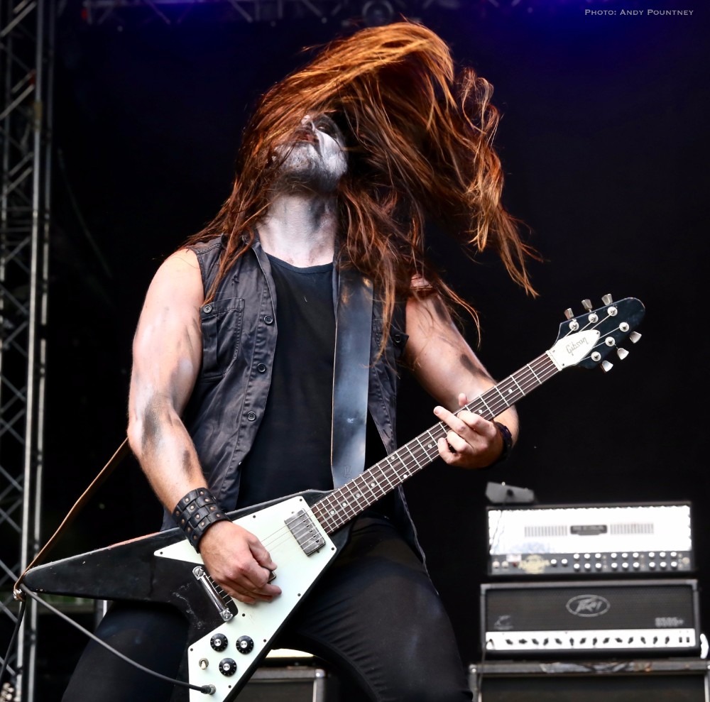 Penultimate main stage band of the day was Unleashed, the only death metal band of the festival as this veteran act has been around for over 2 decades fronted by the amiable Johnny Hedlund the band played a no nonsense set that whilst lacking the variety of other bands was steadfast and assured. Headbanging like spin dryers the band’s guttural and feral death metal on “This Is Our World Now” and “Don’t Want To Be Born” was an antithesis to most of what we had heard during the day. A brief chat about religion was followed by “Where Is Your God Now” as the pit started to move as I was surprised that the crowd numbers seemed to have depleted for the band as they crushed through “If They Have Eyes” and “Avenger”. Johnny rarely spoke, which I thought was unusual as he usually has plenty to say instead preferring to flay the audience with punishing death metal tunes such as “Fimbulwinter” and “Defenders Of Midgard”. Everyone recognised, or at least they should have recognised, “To Asgaard We Fly” before getting the audience involved in some sing back on the title of “Hammer Battalion Unleashed”. They may not have been the most complex musically but Unleashed did what they do best and played a thunderous set of death metal that closed with “Death Metal Victory” as Johnny made the audience chant victory back to him repeatedly.