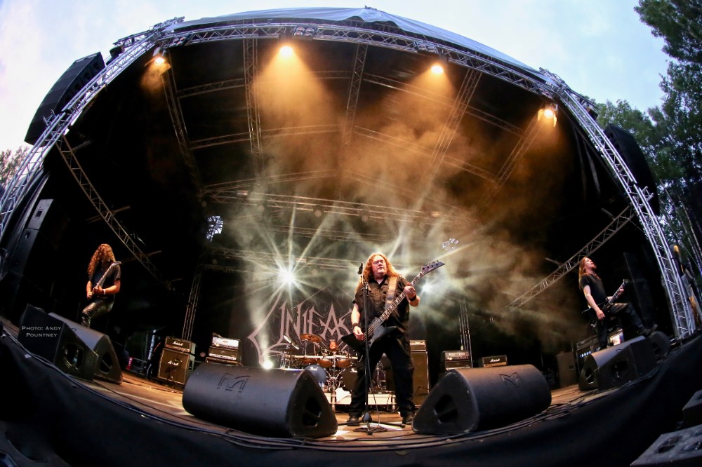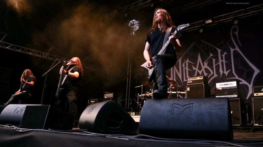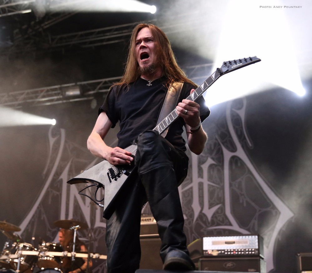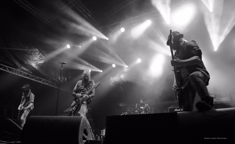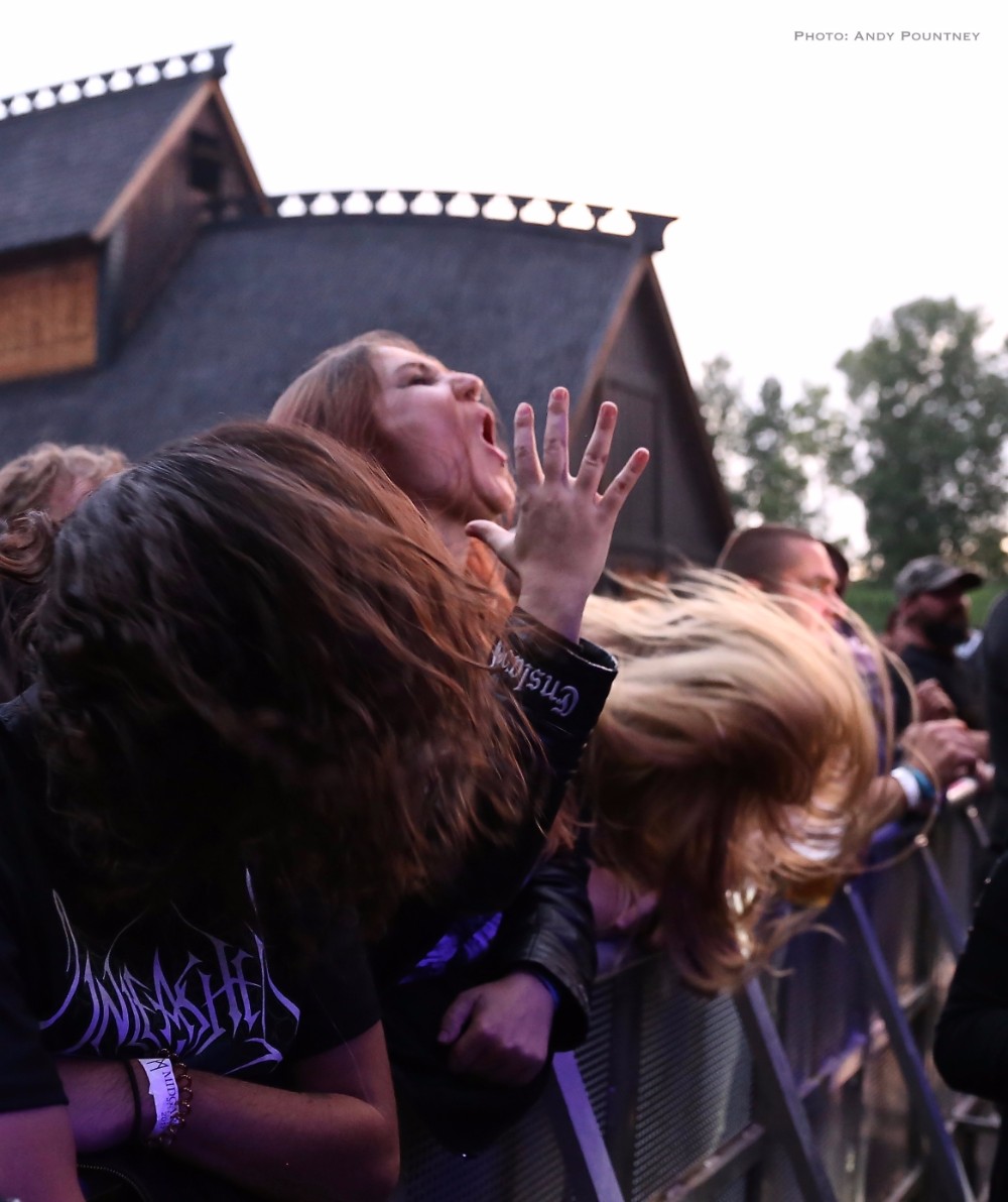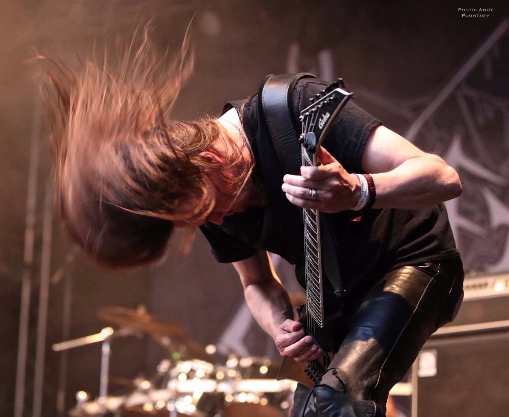 Penultimate main stage band of the day was Unleashed, the only death metal band of the festival as this veteran act has been around for over 2 decades fronted by the amiable Johnny Hedlund the band played a no nonsense set that whilst lacking the variety of other bands was steadfast and assured. Headbanging like spin dryers the band’s guttural and feral death metal on “This Is Our World Now” and “Don’t Want To Be Born” was an antithesis to most of what we had heard during the day. A brief chat about religion was followed by “Where Is Your God Now” as the pit started to move as I was surprised that the crowd numbers seemed to have depleted for the band as they crushed through “If They Have Eyes” and “Avenger”. Johnny rarely spoke, which I thought was unusual as he usually has plenty to say instead preferring to flay the audience with punishing death metal tunes such as “Fimbulwinter” and “Defenders Of Midgard”. Everyone recognised, or at least they should have recognised, “To Asgaard We Fly” before getting the audience involved in some sing back on the title of “Hammer Battalion Unleashed”. They may not have been the most complex musically but Unleashed did what they do best and played a thunderous set of death metal that closed with “Death Metal Victory” as Johnny made the audience chant victory back to him repeatedly.