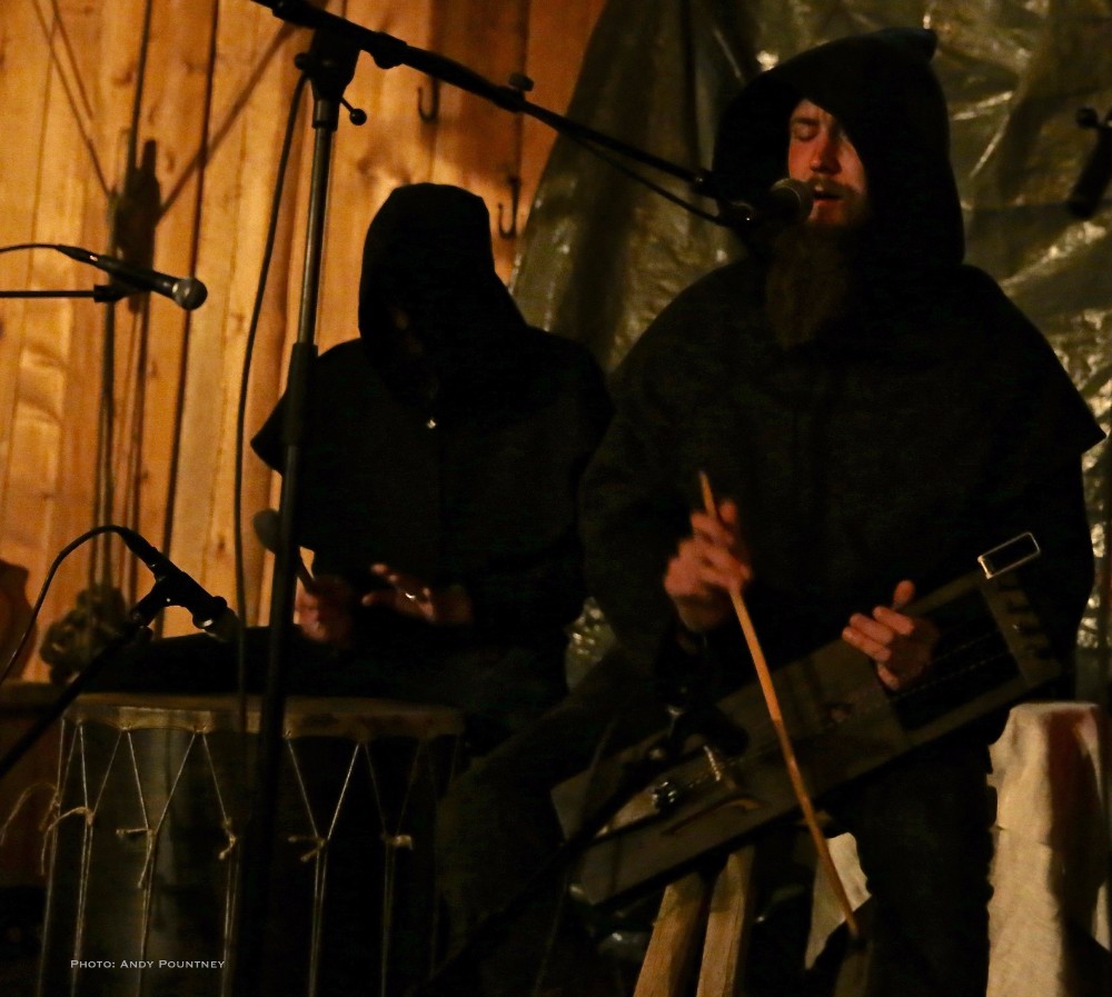 The only band I saw on Friday in the Gildehallen was Forndom who were extremely popular as my shooter decided to get into the building to get a spot for photos as I hung about outside, which was a mistake as the security was operating a one out one in policy when I got there. As I queued up I spent five or ten minutes talking to a guy from Germany and a girl from Australia. Luckily I managed to get in and squeezed my way into the venue down the left, as the place was rammed and usually I don’t like to be so confined but I stuck it out. Previously Andy had told me that Forndom’s music was very serene and tranquil and this consequently caused problems that I hinted at in my day one review of the festival. The crowd were boisterous, talking loudly and happily awaiting the artist but unbeknownst to us Forndom had had a difficult day (a statement about which was released some days after), however one thing not to do is berate your audience before even starting. Arriving on stage dressed in cloaks, they looked the part and settled down to their instruments but instead of speaking calmly to the crowd to be quiet and be ready to listen main man Swärd aggressively confronted the audience and shouted have you come to listen to music, then shut the fuck up, or words to that effect. The audience did settle down a bit but he lost most after the outburst. As the intro faded the music was indeed very tranquil, with gentle percussive elements blended with strings and vocals creating a ritualistic aura that had a droning effect. I did like the female vocal additions, they added texture to the sound but it was clear the crowd wasn’t going to play ball. In fairness to the band it must have been a nightmare with the background noise as another tantrum was meted on the audience asking those who want to talk to leave or again shut the fuck up. This whole show could have been completely different if an alternative approach had been adopted; take it from me shouting at an audience is not going to win, as a teacher for 20 years I should know. I too decided to leave as writing anything else wouldn’t do the band any justice but hopefully I’ll get an opportunity to see the band again because what I did hear was very interesting indeed.