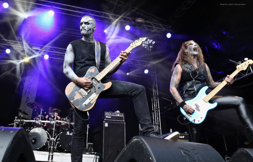When the line-up for this festival was announced and I saw that a band called Wyrd was listed I thought that the band in question was the Finnish blackened folk metal outfit and had prepped myself based on that fact not giving the prefix Gaahl much thought. Indeed awaiting the band to appear it still didn’t click that the band in question wasn’t the band I was thinking about and even when Gaahl appeared on stage, I thought he looks familiar. Ok, so Gaahl’s Wyrd is indeed Gaahl, he of God Seed, Gorgoroth and Trelldom and the set was comprised of songs from those bands and as my brain melt down continued during the set thinking I know quite a lot of these songs the band opened with Gorgoroth track “Sign Of An Open Eye” as Gaahl stalked about the stage nonchalantly grimacing. The crowd was huge for the band as you’d expect as he let out a banshee wail when the double kick flooded into the song. Croaking in true black metal menace “Aldrande Tre” was aired from the God Seed era as the abrupt tempo shifts worked in unison with the blasting assaults before switching to Trelldom and “Til Minne” with its distinctive riff. A guest musician from L.E.A.F. appeared as she joined in for a rendition of “Steg” that followed but suffered from her instrument being suffocated in the mix which was a pity as I stood near the front to see if that made a difference which it did but only marginally. Returning to heavier realms the doublet of “Carving A Giant” and “From The Running Of Blood” battered the audience as the guitarists pulled every conceivable pose possible which was a little clichéd as Gaahl scowled at the crowd providing his best evil looks which in some respects looked a little comic book. “Incipit Satan” was instantly recognised by everyone, even by brain mushed me, and was followed by set closer “Prosperity And Beauty” as I headed off to get a seat for Virelai on the Viking Stage and to solidify my pulped grey matter.