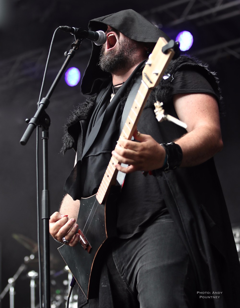 Deciding to hang about to await Tengger Cavalry I had a chat with a couple of Norwegians who had decided to join the table for a beer. As the band’s stage time approached more beer arrived and I readied myself for some throat singing and a very different set from a band that originated in China but now resides in the USA. I must admit I didn’t know what to expect and the first thing I noticed was the lack of a drummer as the guys arrived on stage but only one in traditional costume which was disappointing. The crowd numbers had surged for the band as a backing track started up and the set got off to a bouncing start, with the crowd completely enthralled. Remaining at the back initially I was impressed with the vocal range, his tone was dense, richly focused and penetrating as he announced that this show was the last one of the tour. The throat singing was great as I decided to move to the front to see if the sound was better as I felt it was missing something and indeed it was definitely better, much heavier as a couple of guys were brought on stage to do some percussion but were completely out of time and didn’t really seem to know what to do. The two string instrument was better defined and listening to the beat of the music it had an industrial feel to it, sort of Die Krupps like, as my shooter pointed out. The energy was excellent and the crowd loved it, personally I felt that too much of the sound was done by backing track but in the scheme of seeing Tengger Cavalry I was grateful for the opportunity to see this unique band.