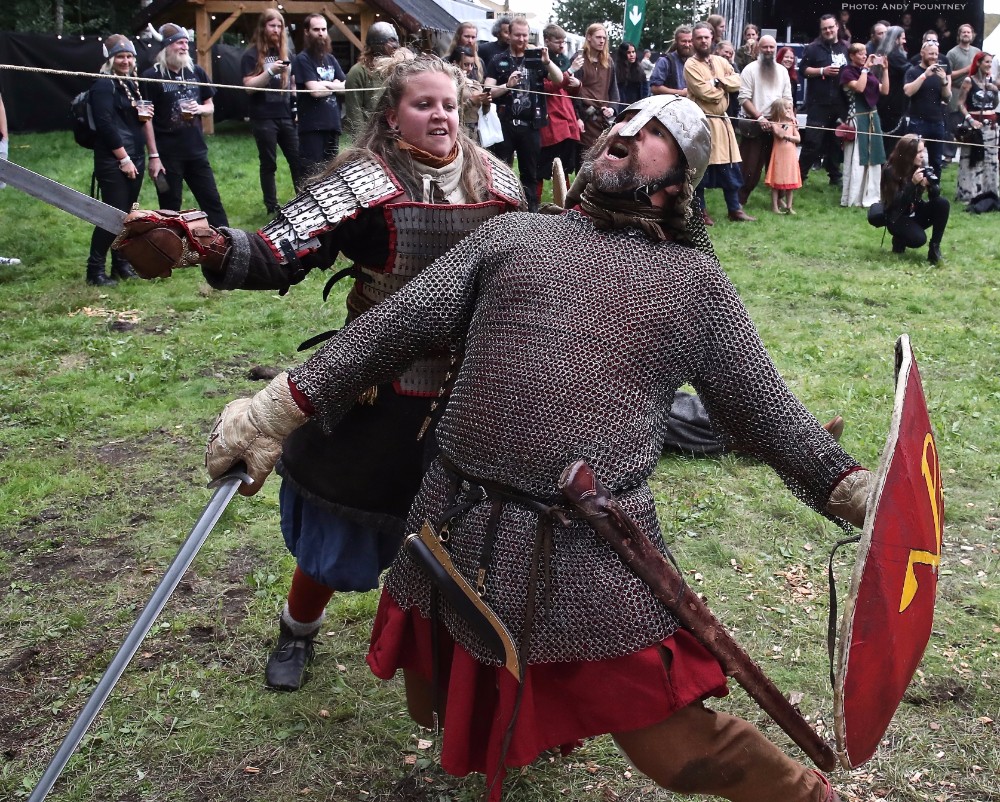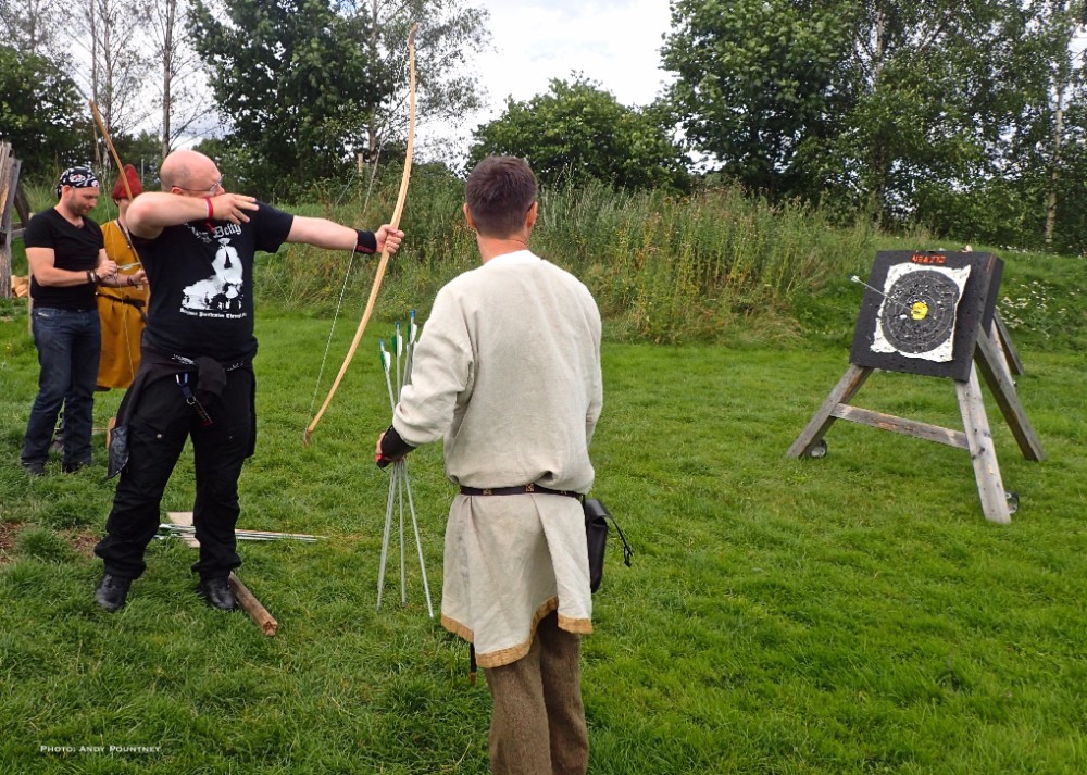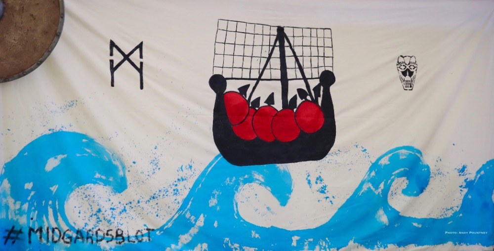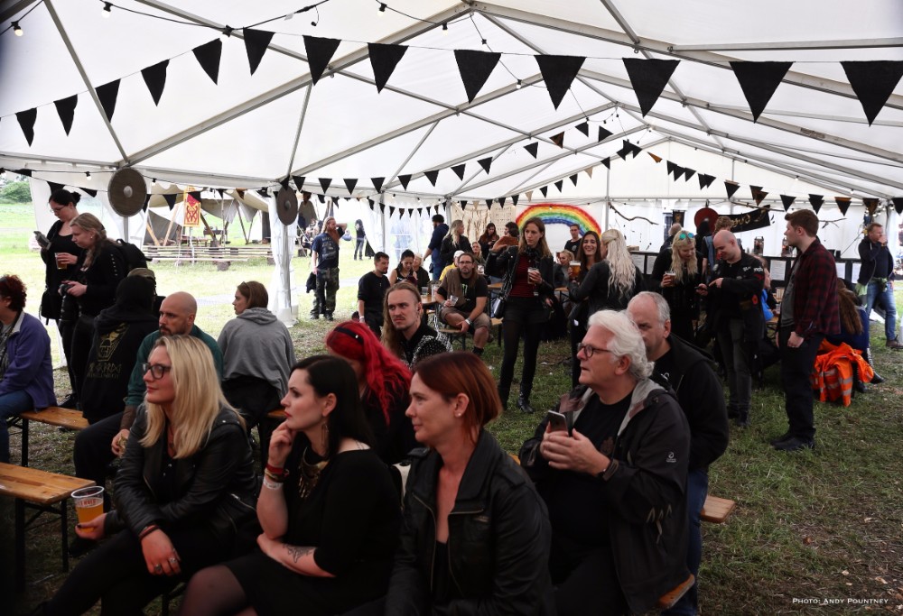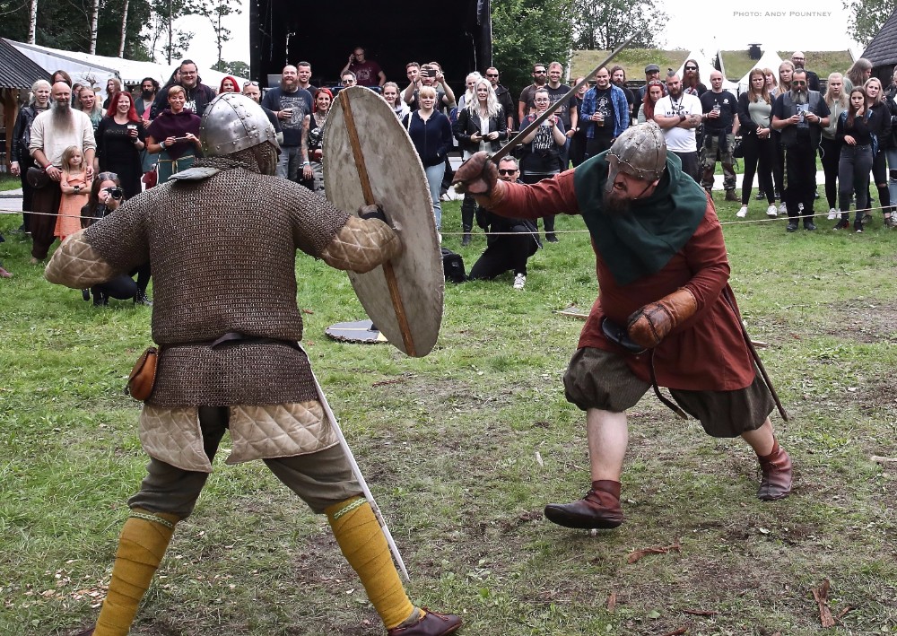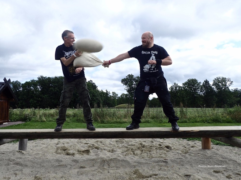As I mentioned in the day one review this festival isn’t purely about music as arriving early I decided to do the guided tour of the burial grave mounds within Borre Park. After which it was time to partake in some Viking games in which my skinny frame had a go at some archery which I haven’t played since childhood using rubber sucker arrows. I learned fast apparently by the guy teaching before moving onto axe throwing which was more difficult than it looked and didn’t injure myself for a change which is a feat in itself I can assure you. A tug of war with Andy was pitiful even with a helper before it was time for music and heading down to the festival site to catch Norwegian act Nan Madol on the main stage, though quite why the security kept people waiting at the entry point right up to the point of the band playing was baffling. Arriving as the band walked on stage meant they were playing to about 20 people initially as the dazzling sun was gorgeous as their post blackened melodies were beautifully relaxing with a delightful mood after which a Viking battle re-enactment took place in front of the main stage that I watched from the back sat at a bench with beer in hand.