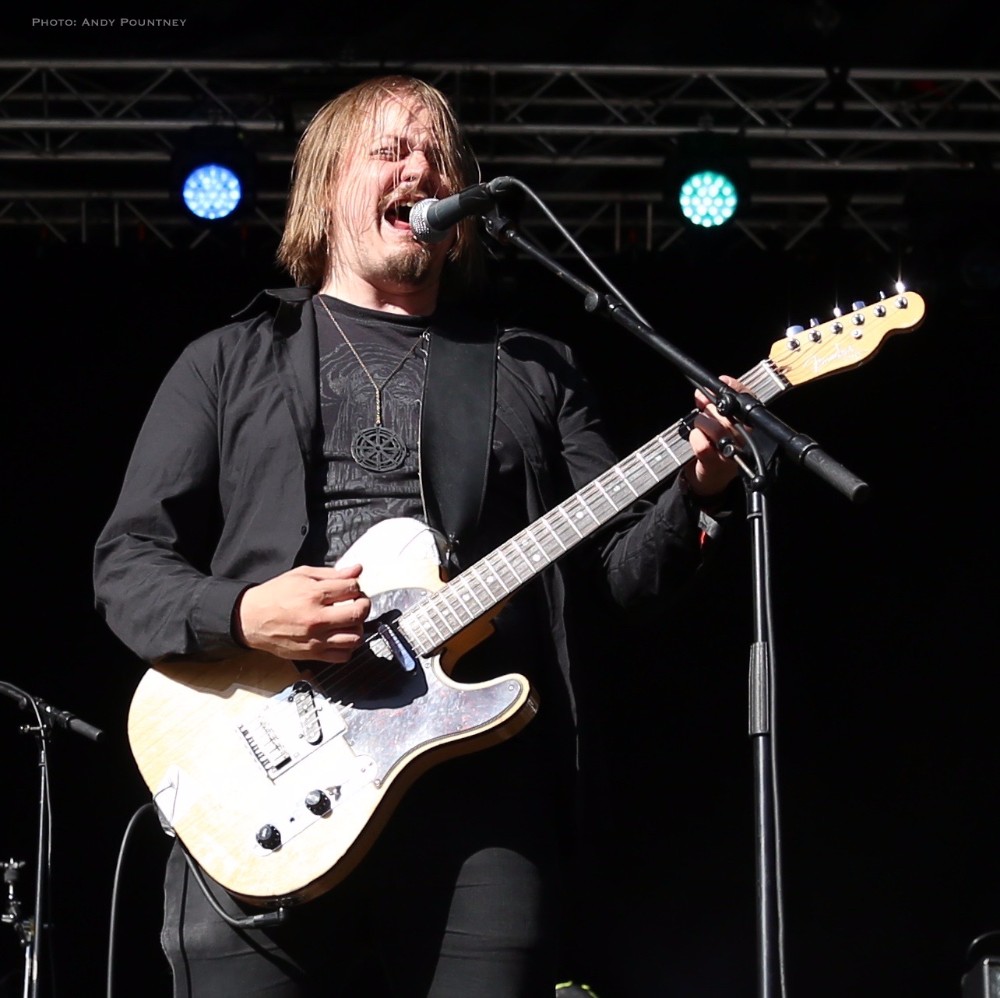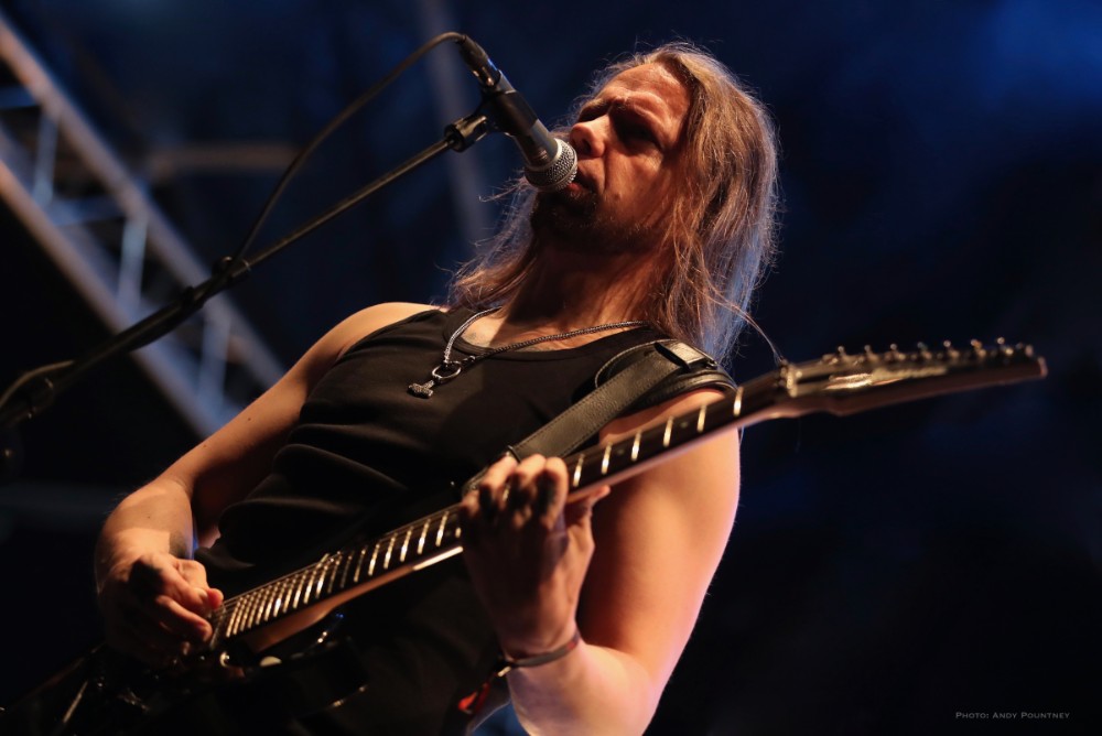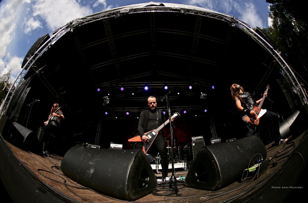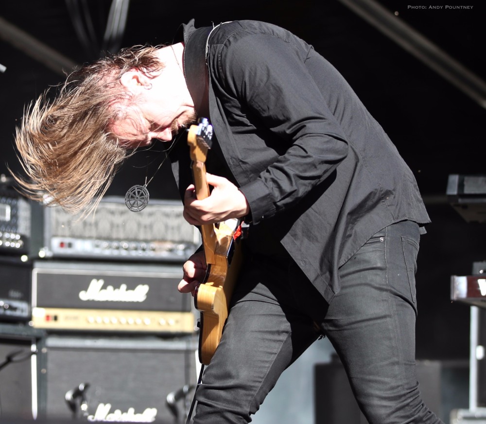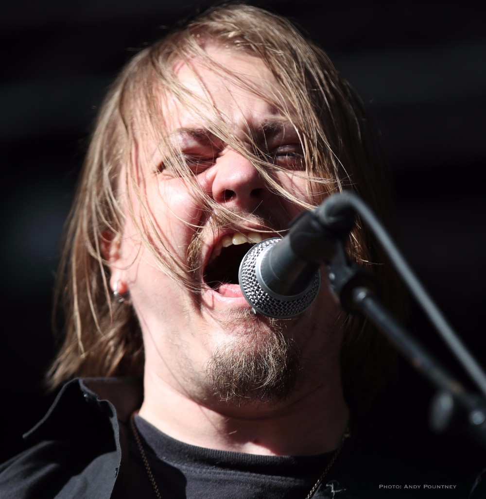 With bands due to start it was time for Andy to dust himself down and grab his gear and get a spot for Sahg. For some reason Sahg has completely passed me by and I’ve no idea why as their pumping doom rock on the main stage was laced with upbeat riffing and rousing lead breaks. My familiarity with their songs may be zero but one thing I do know is that the opening song had the guitar solo from Thin Lizzy’s “Emerald” in the middle of it, but I wonder if anyone else realised it. At times their music reminded me of Grand Magus, with that fist pumping rousing anthemic style as the vocalist announced “Black Unicorn” as the next track which began with a despondent riff and eerily delivered vocals that developed into dual vocals that were very effectively executed. “Pyromancer” followed as I noted that I needed to check out this bands back catalogue pronto as yet again the sun gloriously beat down on the festival, and some people call me the weather gremlin because it rains all the time wherever I go.