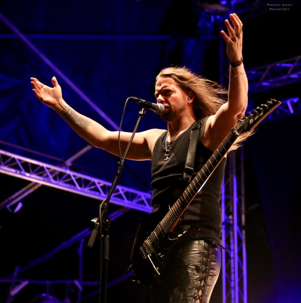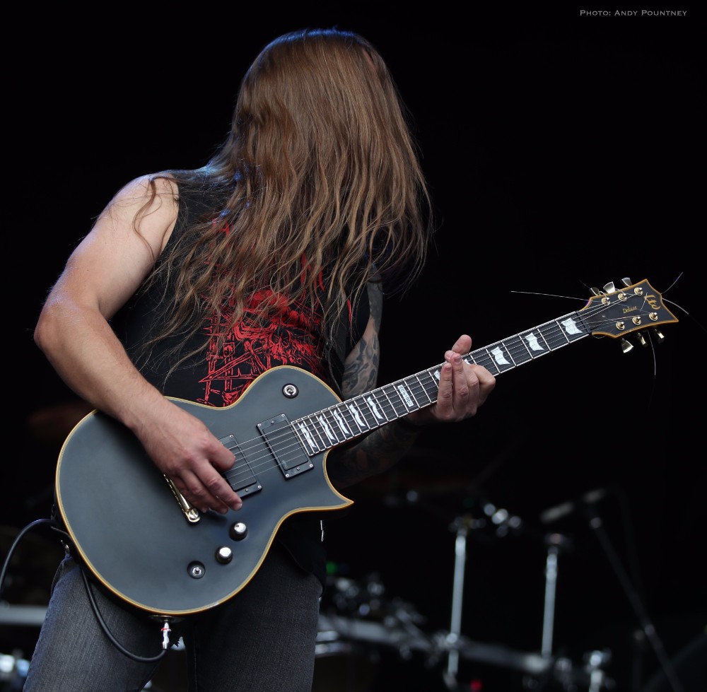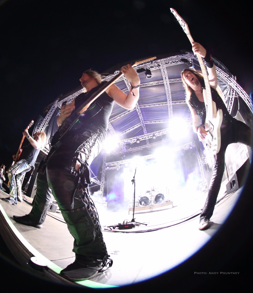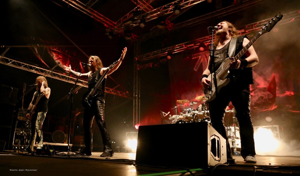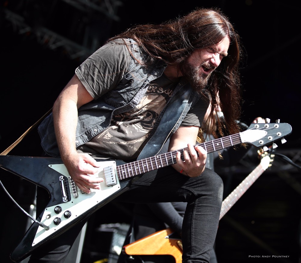 With bands due to start it was time for Andy to dust himself down and grab his gear and get a spot for Sahg. For some reason Sahg has completely passed me by and I’ve no idea why as their pumping doom rock on the main stage was laced with upbeat riffing and rousing lead breaks. My familiarity with their songs may be zero but one thing I do know is that the opening song had the guitar solo from Thin Lizzy’s “Emerald” in the middle of it, but I wonder if anyone else realised it. At times their music reminded me of Grand Magus, with that fist pumping rousing anthemic style as the vocalist announced “Black Unicorn” as the next track which began with a despondent riff and eerily delivered vocals that developed into dual vocals that were very effectively executed. “Pyromancer” followed as I noted that I needed to check out this bands back catalogue pronto as yet again the sun gloriously beat down on the festival, and some people call me the weather gremlin because it rains all the time wherever I go.