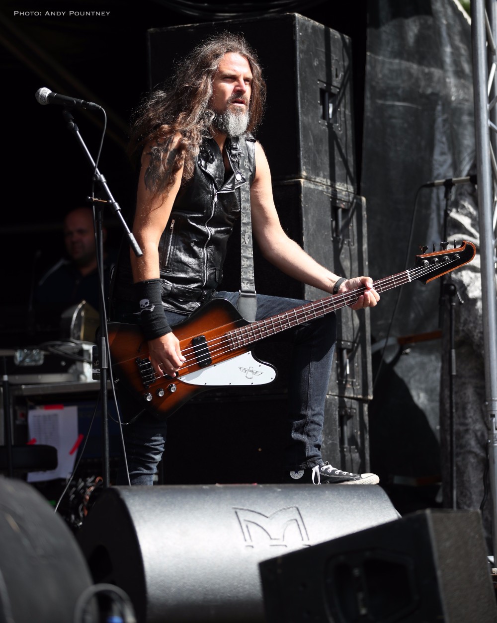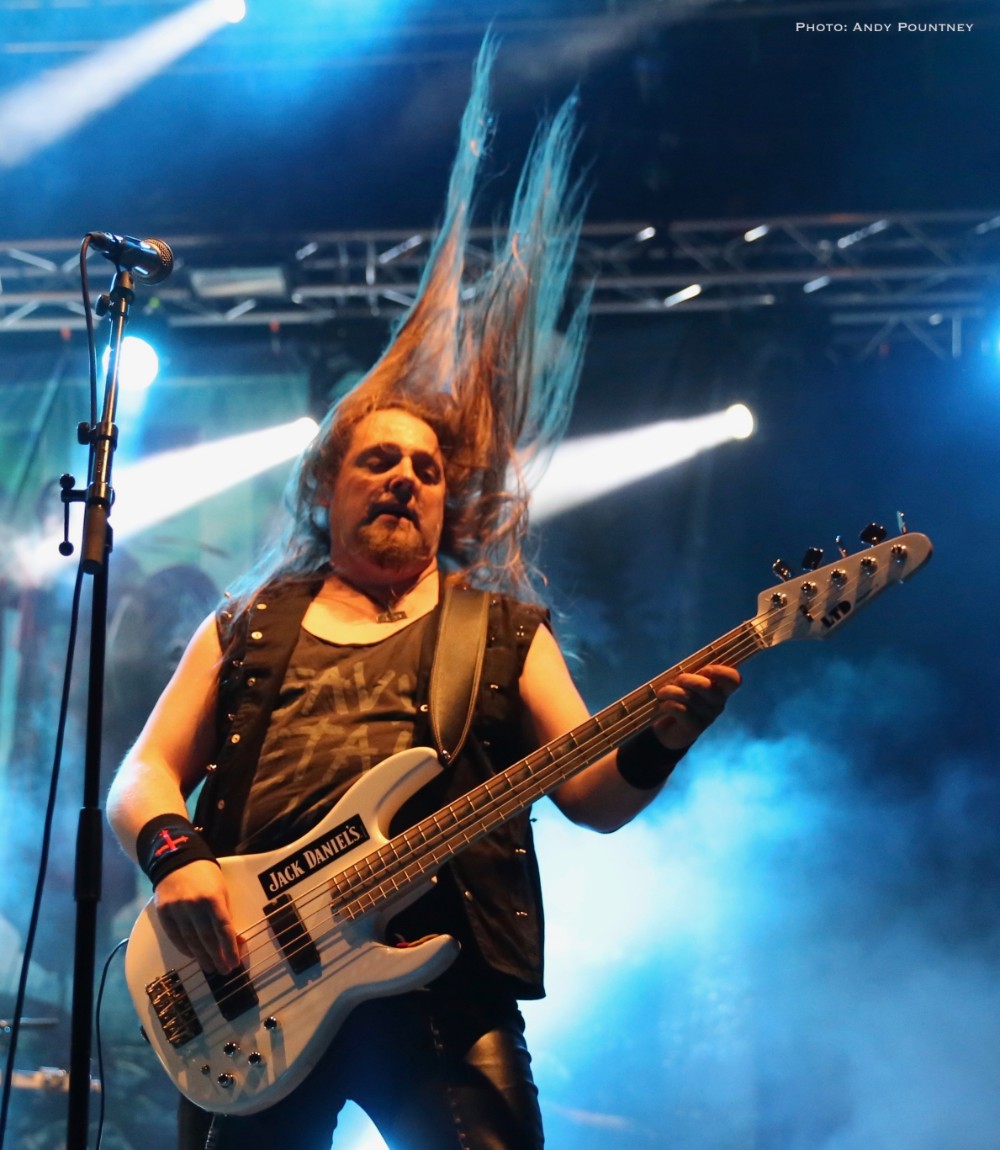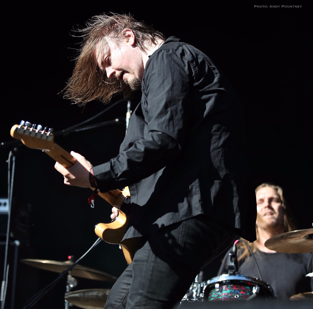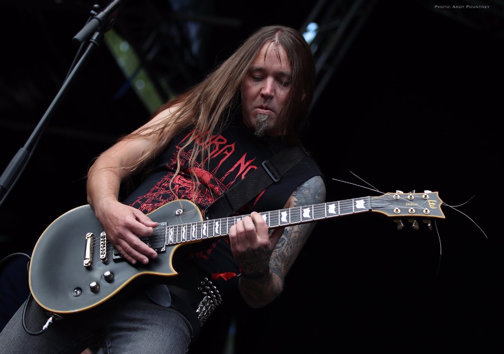 With bands due to start it was time for Andy to dust himself down and grab his gear and get a spot for Sahg. For some reason Sahg has completely passed me by and I’ve no idea why as their pumping doom rock on the main stage was laced with upbeat riffing and rousing lead breaks. My familiarity with their songs may be zero but one thing I do know is that the opening song had the guitar solo from Thin Lizzy’s “Emerald” in the middle of it, but I wonder if anyone else realised it. At times their music reminded me of Grand Magus, with that fist pumping rousing anthemic style as the vocalist announced “Black Unicorn” as the next track which began with a despondent riff and eerily delivered vocals that developed into dual vocals that were very effectively executed. “Pyromancer” followed as I noted that I needed to check out this bands back catalogue pronto as yet again the sun gloriously beat down on the festival, and some people call me the weather gremlin because it rains all the time wherever I go.