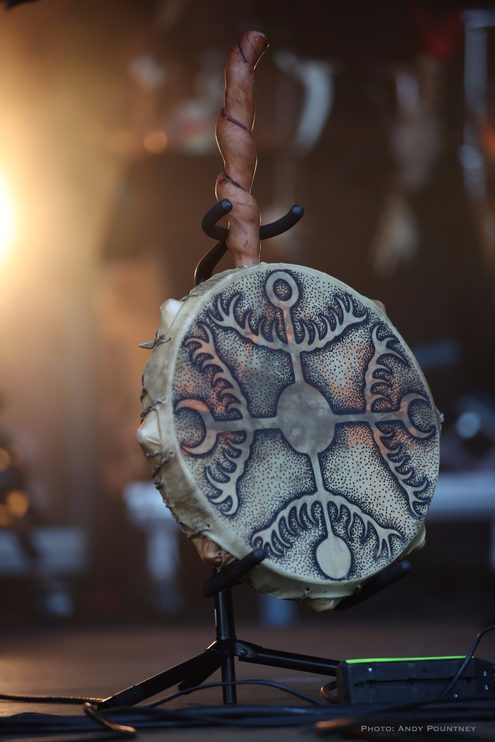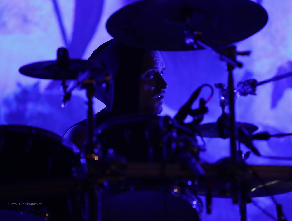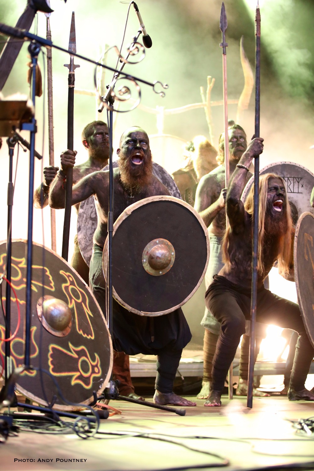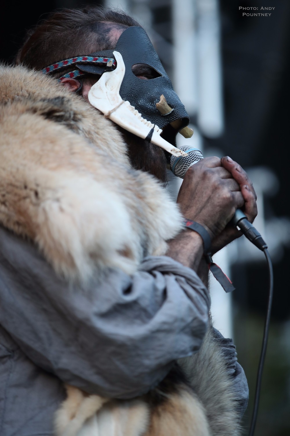 Heilung were a whole new proposition to me, and reading the information in the program it told me that the ‘sounds of Northern European iron age and Viking period soundscapes are created from samples of reconstructed swords, shields, ancient frame drums, bronze rings and human bones’. Watching the stage set up unfold I was curious and a little bemused as to what this would entail as the stage became ever more complex and intricate which you will see in the photos more than I can describe in words here. Added to that is the number of personnel that initially consisted of five people dressed in various intricately decorated and very different costumes. The set started with the five members standing in a circle holding hands with smoke being wafted towards the crowd, and as the circle broke a horn sounded and a vocal chant started that triggered some percussion by one of the other members who returned to the rear of the stage. As the performance was underway lots of people started to arrive in the audience also dressed up for the occasion as more instrumentation was added to the unfolding mix which was gathering momentum when suddenly one of the stage members howled like a wolf that was immediately imitated by the audience in waves. There was an obvious clash of cultures going on here much like acts such as Wardruna as the stage became invaded by people sporting spears and shields. The lady wearing white antlers had an exceptional voice though whether it was effect laden I am not sure as her tones were echoic but well suited to the tribal like intent of the music. The spear wielders were coated in mud or paint and came forward as the music’s ritualistic and percussive texture was hypnotic and if I closed my eyes and ignored the visual spectacle I quite enjoyed it. The spear wielders came forward to another platform so the audience could see them better and they did look very cool and intimidating as the music had took on an industrial edge due to the percussion and at one point there was an almost trance like beat that was very effective as I decided to head into Gildehallen to catch Lamia Vox to make sure I got in based on previous experiences with that venue.