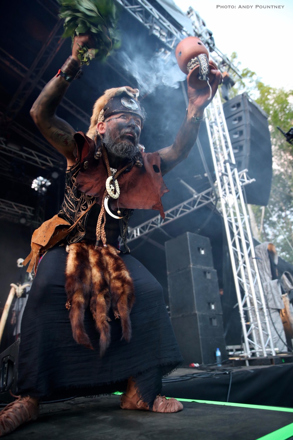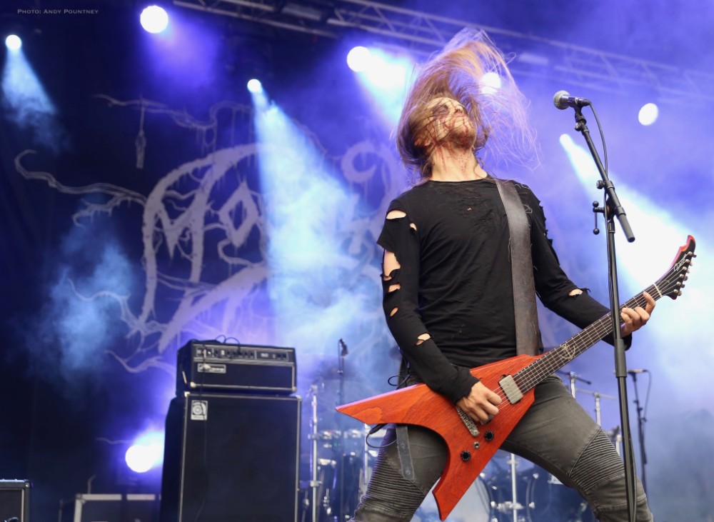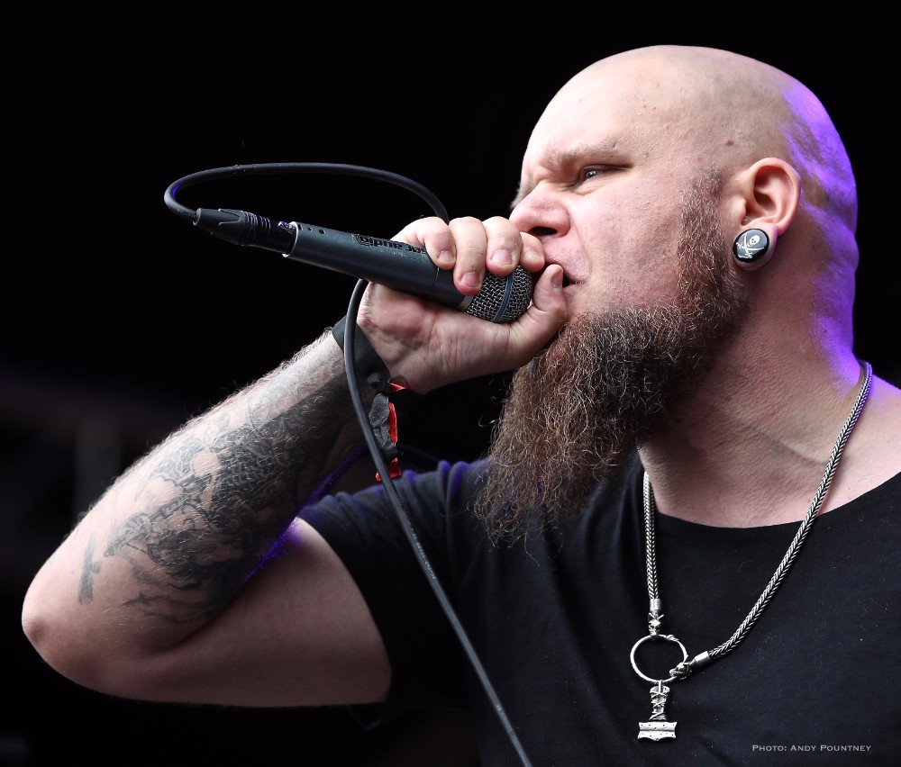 After the finals of the strength contents and some liquid solace I was very keen to see Oranssi Pazuzu from Finland, a band I’d heard only in name. However possibly the most fussy and pretentious band of the festival they took an inordinate time to set up and eventually started 15 minutes late that meant they had 15 minutes less on stage, but once they started the eruption of energy was volcanic as their music blasted out like obsidian psychedelia under the fiery sun. Standing near the front the intensity was incalculable as each guitarist had a different sound to the other in a controlled cacophonous onslaught. The keyboardist was deranged hinting at a style similar to guys in the 70s as he raged at his keyboards and ran his hands across the keys frenziedly. Underpinning this dementedness was black metal riffing and vocals as the raucous riffing which had a feral black rawness. Quite where one song ended and another started is anybody’s guess as keyboardist had an extended section distorting notes before the other guys filtered back in as the set came across as being improvised. Tech issues arose for the stage right guitarist who left the stage as the remaining part of their set became a discordant amalgamation hurtling towards ebonized sonic oblivion, almost like a black metal Hawkwind if you can imagine that.