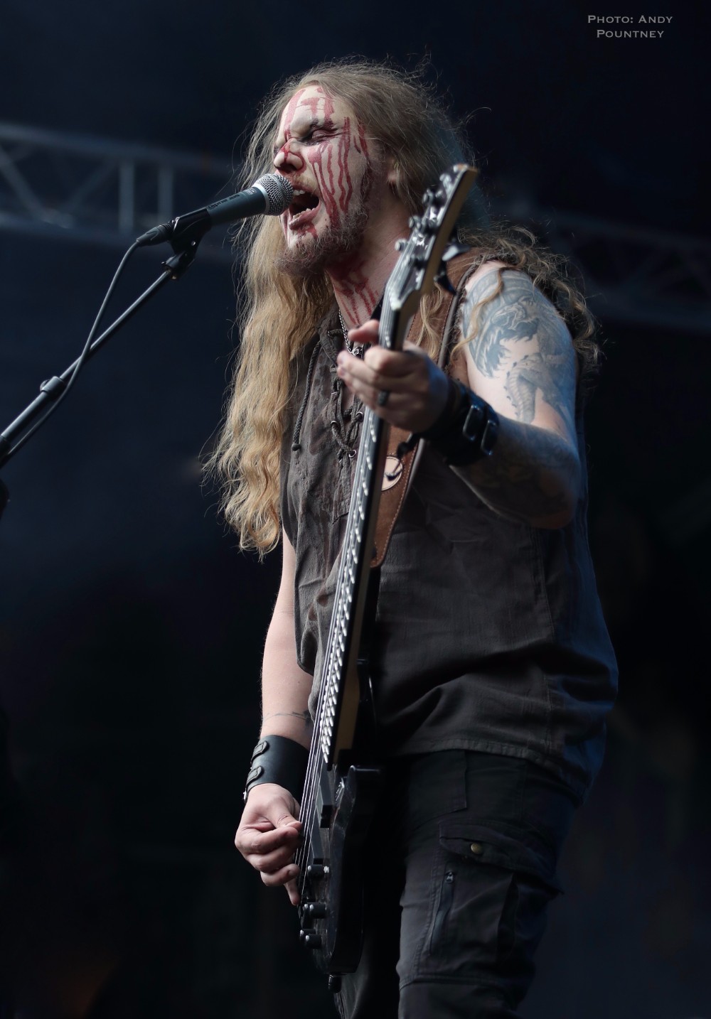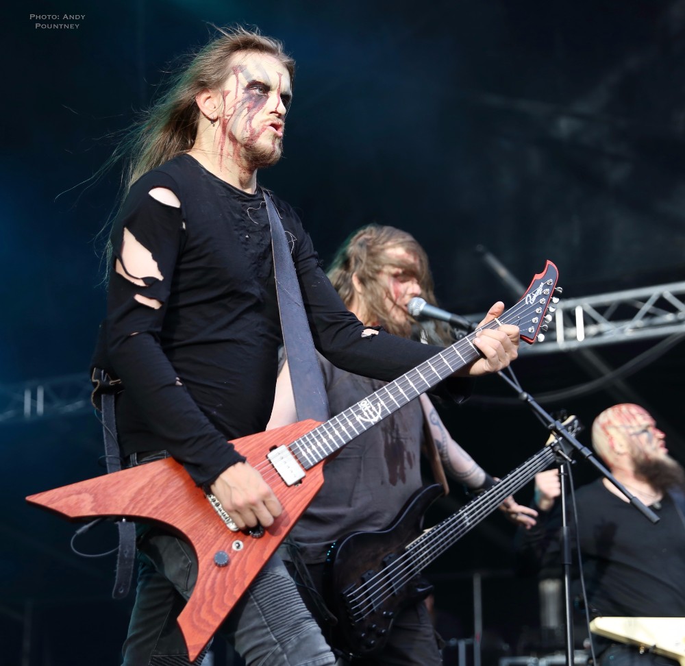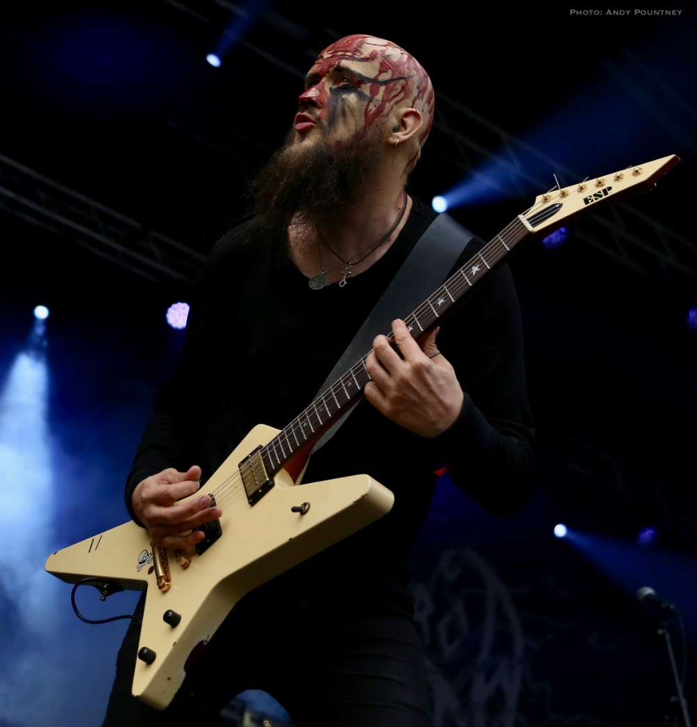 I must admit I was looking forward to Finland’s Moonsorrow more than any other band of this weekend and they did not disappoint. The step up in quality was colossal the moment they walked on stage and started and with only 60 minutes it was possible I might get a handful of songs or maybe just two. Daubed in red and black paint they looked impressive and for a change everything was played by the band, no backing track, as they opened with “Jumalten Aika” the title track of the bands last album from where most songs were taken for their set. Few bands have such an aura as Moonsorrow as the choral vocal harmonies were breath-taking as you could see people awestruck at the front where I was stood. I had goose bumps and I get them rarely at live shows these days as the band paused after the epic opener to tell the audience that they don’t have songs about Vikings but they do have a song about wolves and launched into “Suden Tunti”. I stood mesmerised watching Moonsorrow forgetting I was reviewing them, as the band dedicated the next song to the crowd  which I think was “Raunioilla” and contained a brilliant pagan vocal piece and whilst I usually loathe the whole woah vocal thing it really works with Moonsorrow’s music as the band engaged with the crowd, completely immersing themselves into the show as the song dropped into a wonderful lone guitar piece before some clichéd Judas Priest like guitar posing as they came to the front of the stage. As the set approached its close the singer said “what if I said it’s the last song”, which it could have been even if it was 20 minutes to go. He followed by saying “I know it’s a burial ground but make some fucking noise” which we did and they played “Sankaritarina”. Moonsorrow were truly awesome, their presence and dynamics were unparalleled over the weekend and were one of the best bands I’ve seen in 2017 as their set came to an all too quick an end.