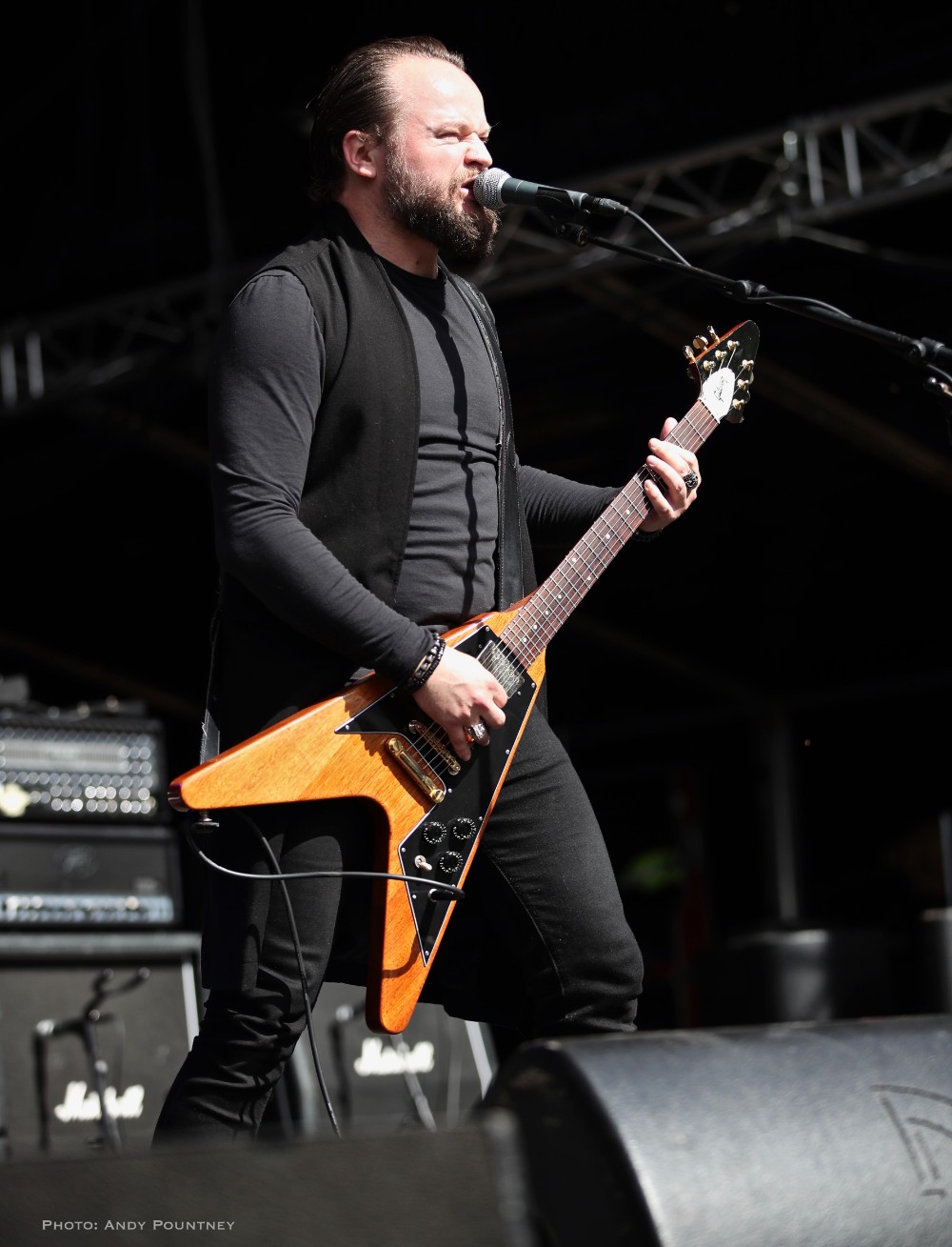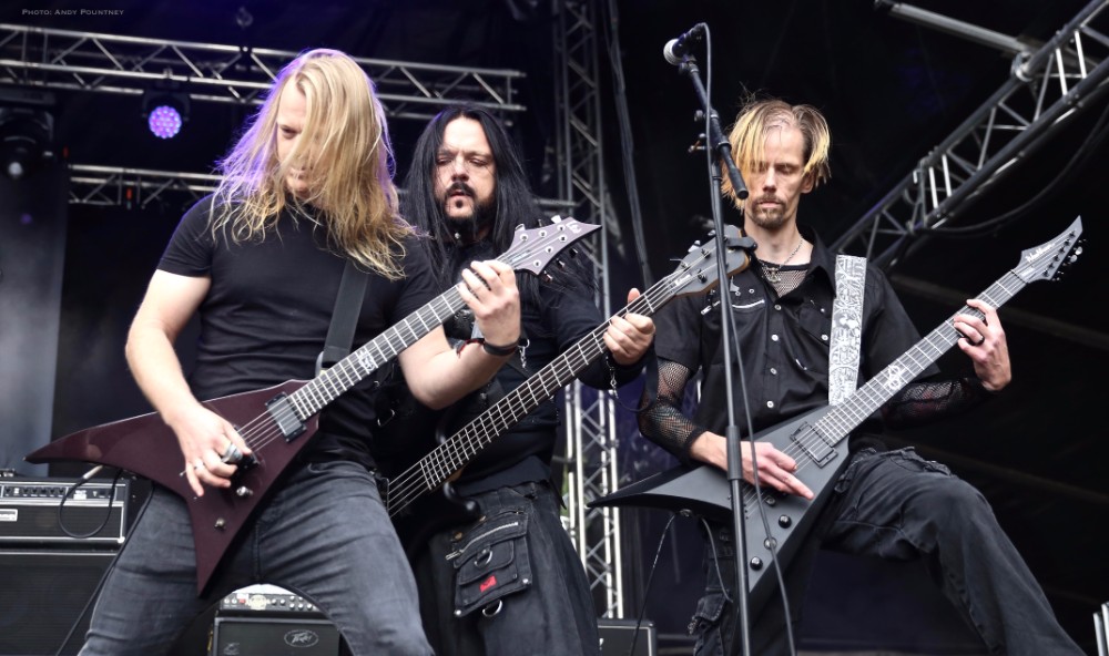 On paper I thought Týr headlining the mainstage on the final night was a weak decision but I was plainly wrong as they were perfect. I’ve seen the Faroese band a few times before but like Sólstafir the previous night the setting was great and again it wasn’t raining, as the bands intro permeated the cool night air. As the trio came on stage to a cheer their anthemic riffing was absorbed by the crowd that had thinned quite a bit unfortunately, as the drums swirled amid their charismatic choral vocals that were truly magisterial throughout their set. The energy that flowed from the band was palpable during “Blood Of Heroes” as they instilled the crowd with a new lease of life that encouraged people to dance and jig.  A party atmosphere was generated with a song like “By The Sword In My Hand” as I saw people linking arms and dancing around each other fully immersed in their own little shindigs as even in our own little group I stopped writing notes, hence the lack of song titles and enjoyed the set as the soaring harmony vocals blanketed the crowd. I must admit I was taken aback at how thunderous yet melodic Týr came across during their set and their set of 60 minutes was perfect, distilled down into pure energised mirth and was a fantastic band to finish the main stage with.