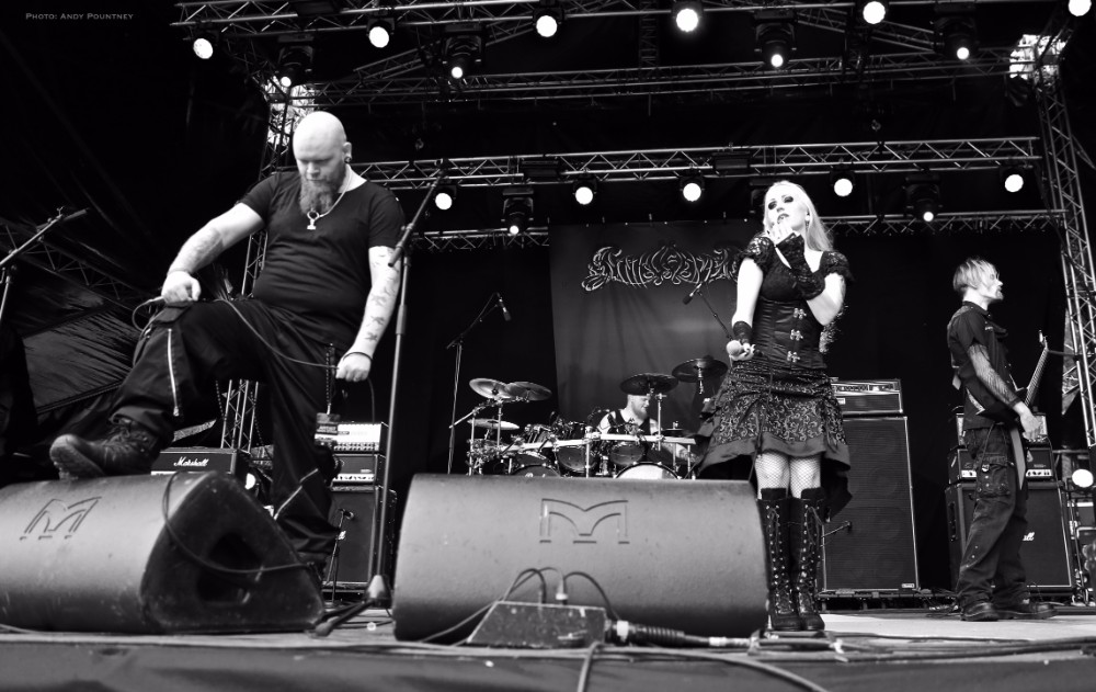 After such a good start to the day with Sahg, the same cannot be said of Synkvervet whose symphonic metal was very confused. With dual male and female vocals Christina spent most of the time flouncing about the stage with her arms waving slowly as her operatic tone didn’t suit the music which was dense and brutal of its own accord and I enjoyed in its own right. Much of the sound was backing track as well which I find irritating in bands these days as the band had to start one of their songs again because someone made a mistake. The songs veered from one idea to another and lacked cohesion though without doubt the band can play as I decided to have a wander and get myself a beer and check out the shops and merch area.