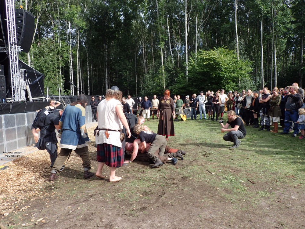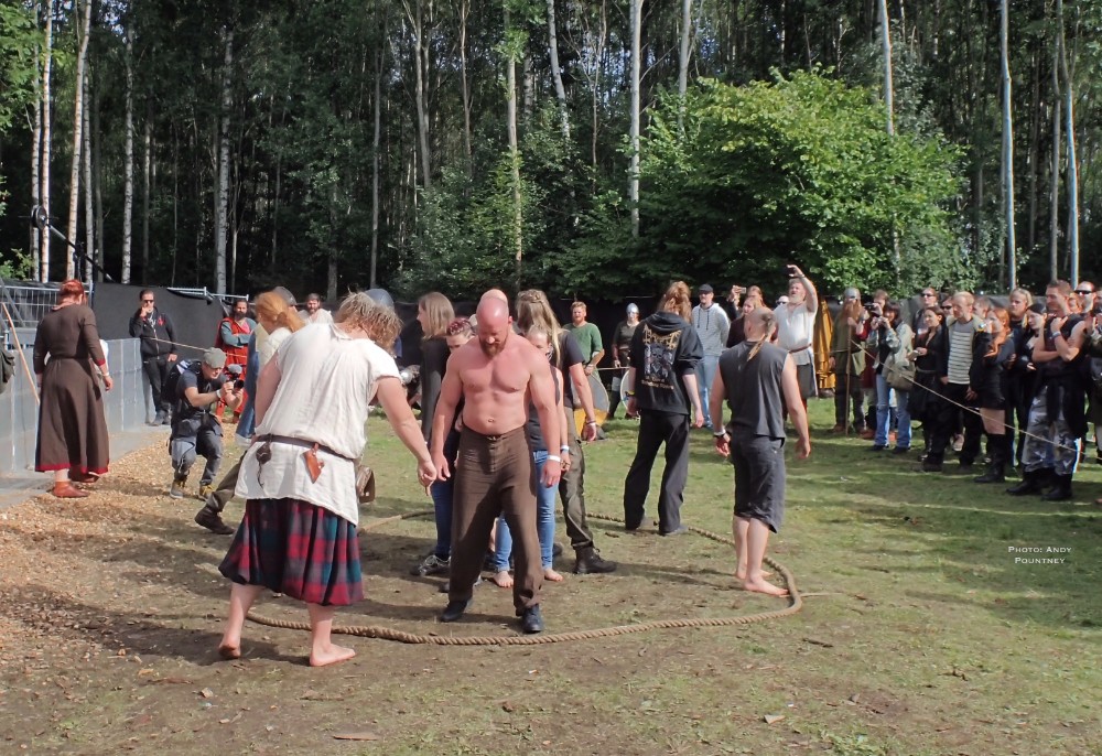 With such a gorgeous day I headed down to the Viking games area and sat on the grass to watch the feats of strength and in particular our very own Andy Pountney as he got involved in the knockout bouts of tug of war plus a try against The Troll. The first of these can be seen here and if you keep playing more bouts should follow