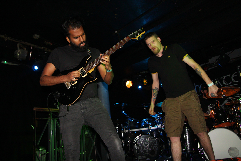 Camden seems even madder tonight, for some reason everyone thinks it’s Halloween and needs to be dressed like clowns, evil ones included. There’s a queue outside the fancy dress shop stretching down the street and everywhere is packed. Seeking sanctuary in the Underworld cannot come quickly enough and thankfully there is plenty of room to breathe as the first band Kill For Company strut their stuff onstage.  I realised before coming down that this band contain a couple of members from Kingsize Blues in their ranks and although unknown to me their former band is remembered from the old London scene, making a bit of sense for their inclusion on the bill tonight. It also appears to be vocalist Tom Hennesey’s last show with the group. He’s not going out quietly make no mistake and there’s plenty of bruising anger and hateful energy about what goes down during even the very first number ‘Isolation.’ This lot churn out a veritable cauldron of fuck, some call it metal, others thrash, I call it ripyourfaceoffandshitdownyourneckcore and it batters us something silly. The vocalist growls and screams his head off, guitars squeal and bass churns with an incessant chug about it all as the drums bounce around flatten what’s left. There is a message to songs like ‘One For My Enemies’ and it’s hollered loud and clear “don’t mess!” Musically this comes from the cloth that spawned bands such as Medulla Nocte, Stampin Ground and Labrat, British brutality through and through. It gets people bouncing about as the band speed through everything at seemingly double speed, thankfully there’s none of that idiotic crowd killing but musically this has the scope to leave all but the toughest battered and bruised.