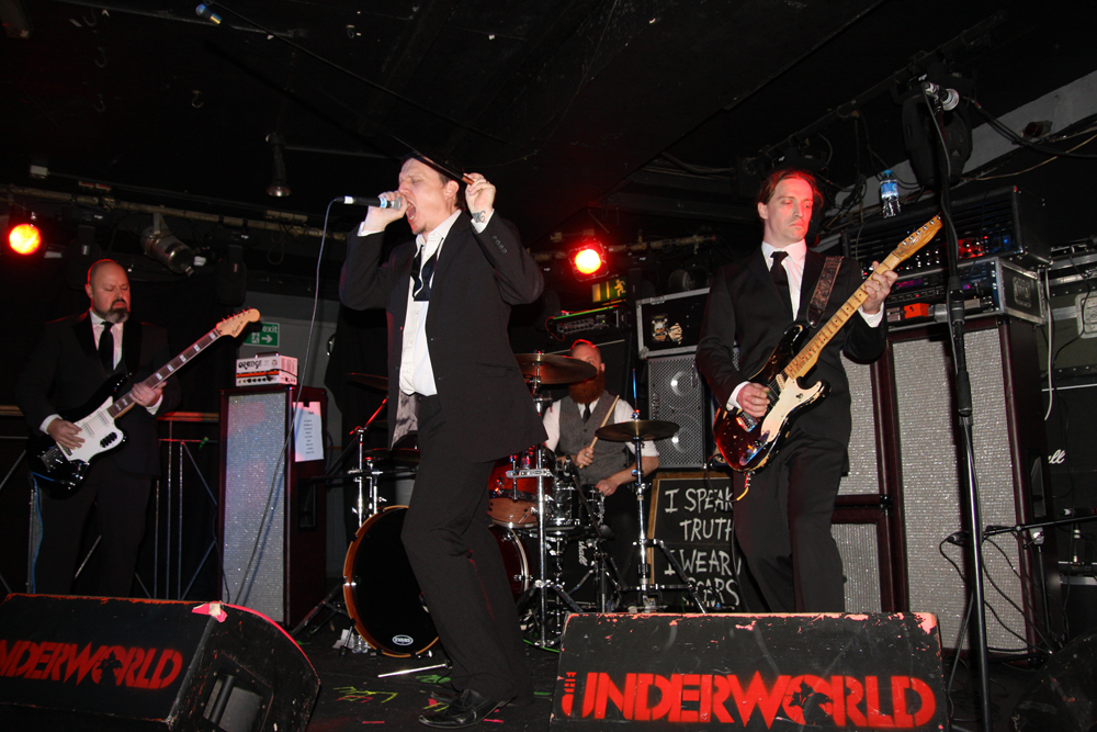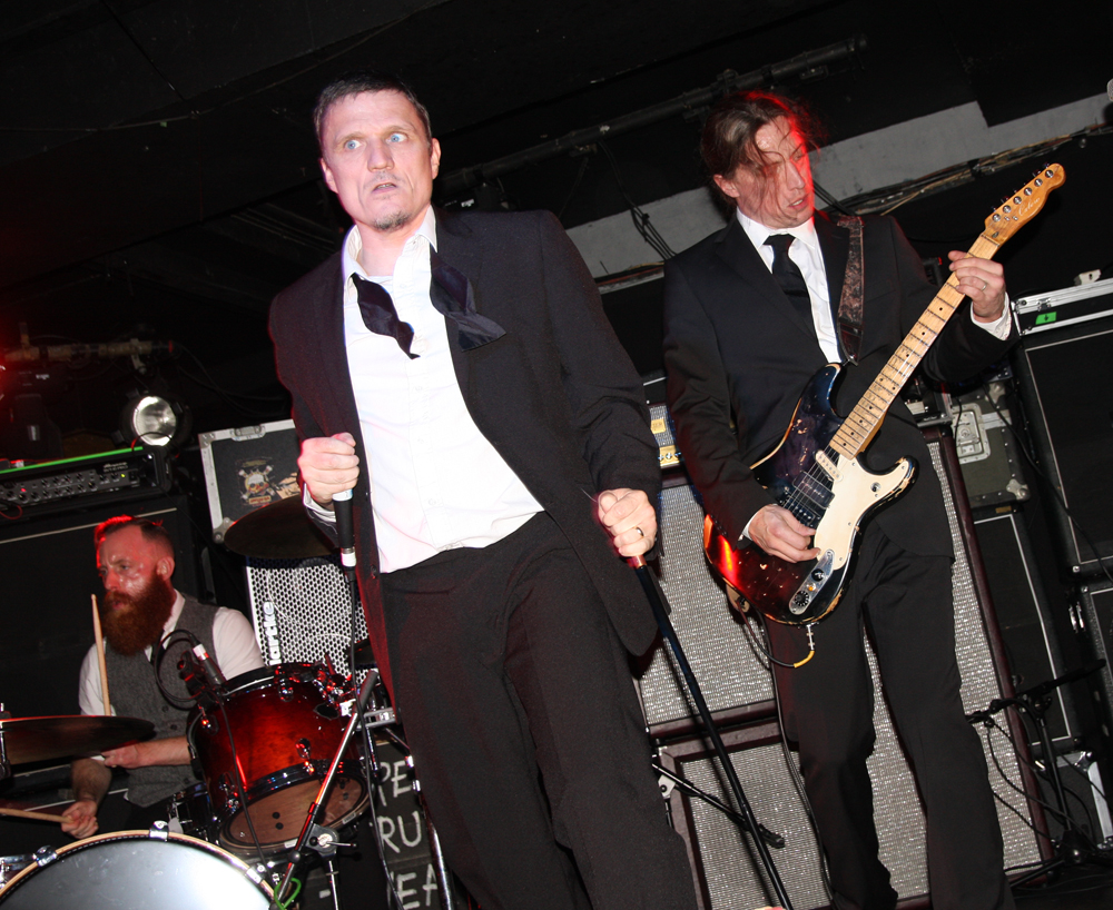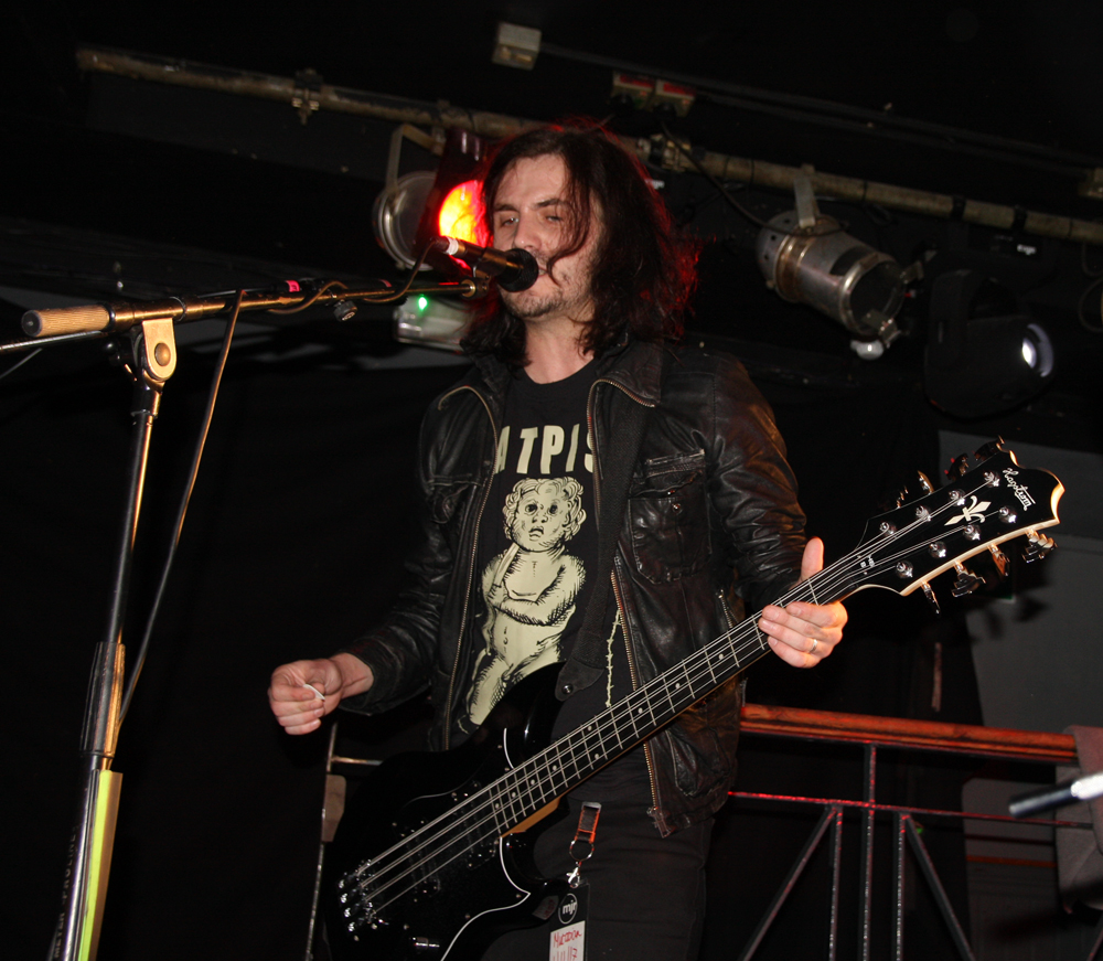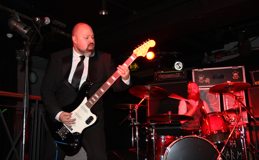 It’s been a long time since catching Paul Catten on stage and along with other members of the greatly missed Medulla Nocte he has gone and reactivated Barrabus whose self-titled album is one that knocked me through the wall and has been on constant rotation since it arrived here. It is such a manic and supercharged album I wondered how the hell they were going to pull off the intensity of it live but needed have worried on that count, they absolutely nailed things and even got suited and booted for the occasion. Lunacy well and truly at the heart of this display the frontman points his swagger stick at anyone silly enough to get close to the stage and luckily manages not to decapitate any of his band members in the process. It’s filling up a bit for the group’s first show in London in a decade and as the singer lurches spasmodically about the stage sounding and looking like Mark E Smith at a pikey wake after doing lines of coke in a Weatherspoons toilet. Songs are full on, short and sharp and they fly through the album tracks, taking no prisoners and giving a frantic display of energy on the stage. Their brand of musical ‘Porn’ is ugly and whatever category it fits into you wouldn’t want to get caught looking at it. It draws a semi-circle on the floor around the stage. The singer may want to get closer to us but nobody is daring to take up that particular challenge. Pussies maybe but we hadn’t been provided with a safe word. They are totally stealing the show with songs like ‘Kleptomania’ and as for ‘Behind Closed Doors’ Barrabus are definitely prime candidates for locking up and throwing away the keys. PreOp injects a melody sounding like a sitar contorted into the guitar work, very odd  and it’s all over far too quickly for me, can you go back and play it all again please? All we need now is for this lot to go on the road with Iron Monkey, you know it makes sense!