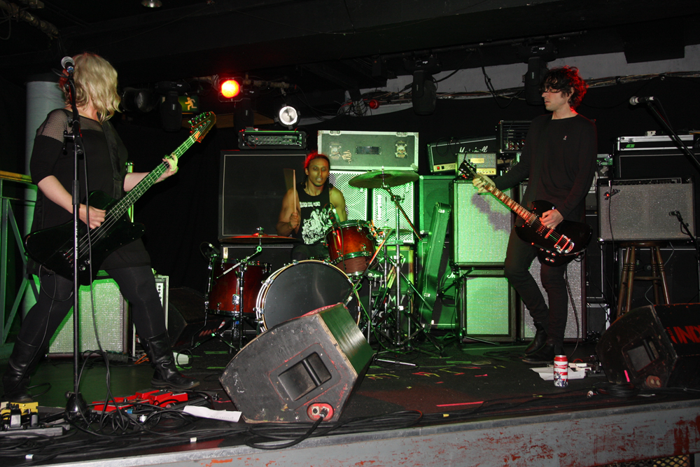 As I am not making it to Damnation Festival this year this was a bit of a treat to catch Mutation who are playing there along with Barrabus who are doing the pre-show. First however it’s a case of the opening band who I had expected to be Deadcuts who had an ex Senseless Things member in their ranks. Bit confusing but they were not on the actual bill tonight and there was a band called Nasty Little Lonely in their place. Not a problem, sometimes it’s nice to catch a band you have never heard of with no preconceived ideas. The trio is fronted by bassist, singer Charlie B and whether nasty or not she has a powerful voice and injects things with a leaden groove. She’s not exactly lonely either as the guitarist adds plenty of swagger and the drummer is enjoying thwacking nine shades out of his kit. The only real problem is that they are giving it their all in front of just a handful of people. Apparently the band are from Bristol and no doubt would get a much better turn-out down Stokes Croft way but London can be a cruel beast when you are first band on. There’s stacks of energy put out here and they are no easy job to pigeonhole, mixing everything up and impressing with all they played. Latest single ‘Ugly Vitamin’ was just one of the tracks aired in the short set and had a jagged sort of chug and underlying near industrialised vibe about it with the singer giving it plenty of gob. Good stuff.