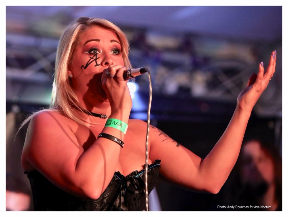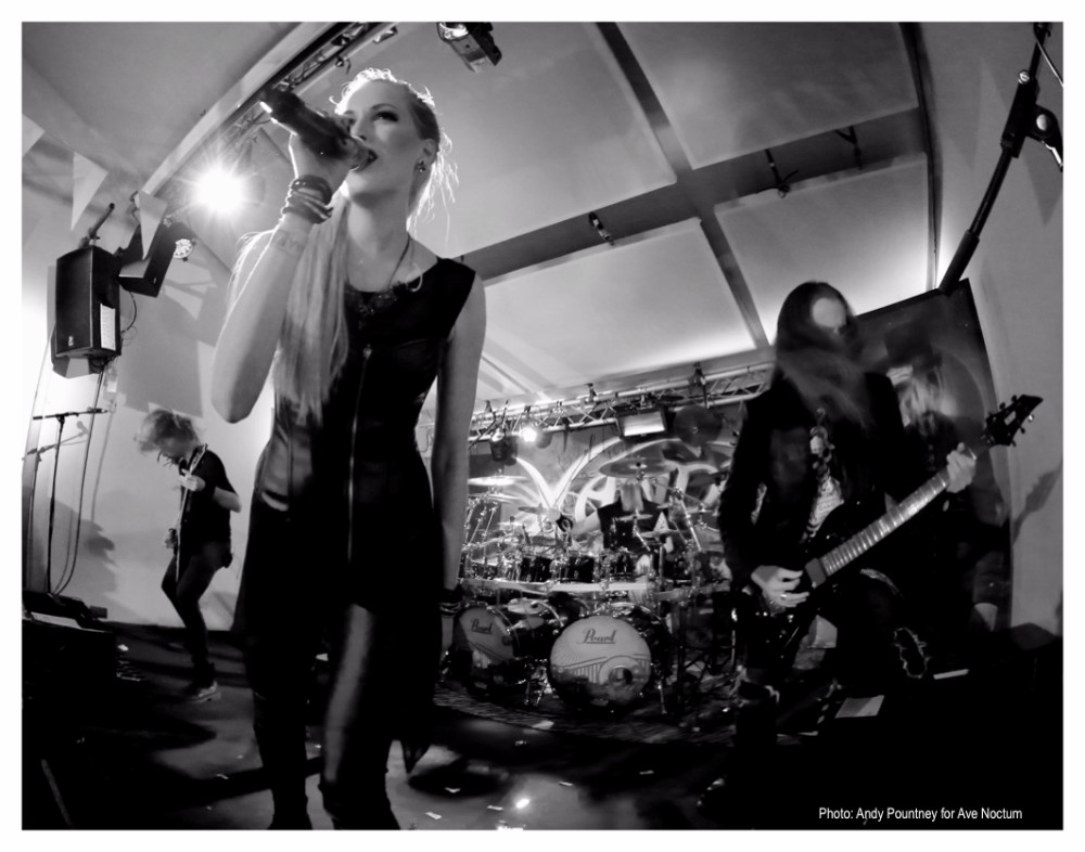 With all of this behind them, Xandria rolled into Sheffield and the Local Authority venue. However, before Xandria took to the stage, there was a small matter of two support bands. First up were operatic, symphonic metallers Aonia, for whom this was a special night with a new single, new merch and a new logo all being launched and it was clear that there were a lot of people in attendance who had come to see them.