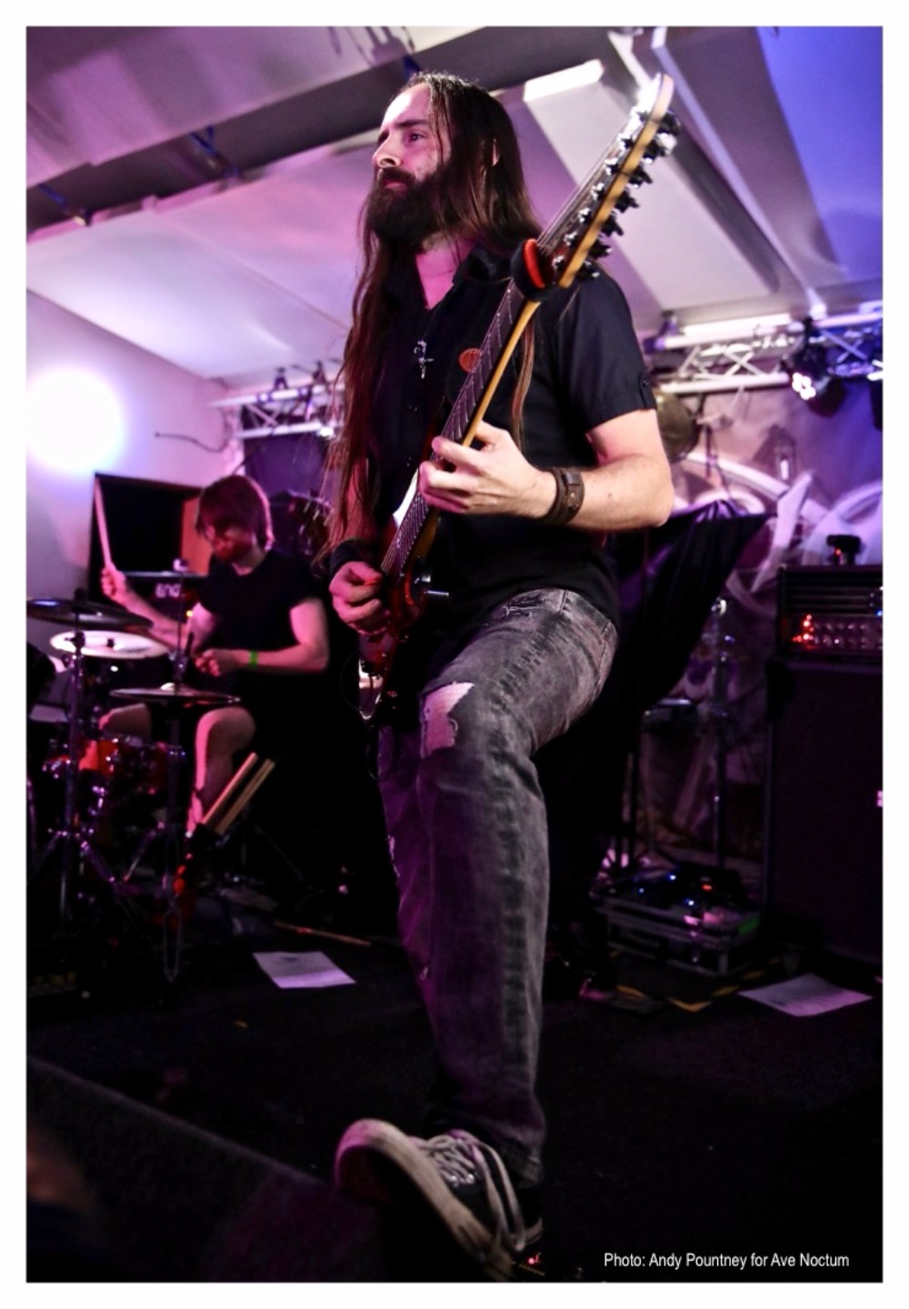Space was at a premium as the seven members crammed onto the small stage before opening with ‘Reflections’. As ‘Violet Hours’ and ‘Heartsword’ flew by, it didn’t take Aonia long to establish themselves as a musical force to be reckoned with. The obvious focal point was the dual soprano vocals of Melissa and Joanne, although credit should go to every member of the band for a superb performance. Older track ‘Prophecy of the Fallen Kingdom’ followed before a brief pause for the band to announce they would be returning in two weeks as support for Kobra and the Lotus, and also that they are planning their own festival later in the year.