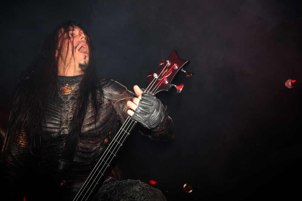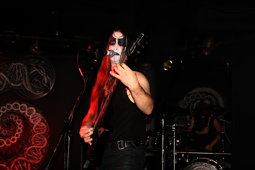 SepticFlesh do not exactly play the UK very often and with just the London date and Inquisition joining as co-headliners this was always going to be a busy one. It would have been very interesting to see Egyptian band Odious who were meant to be playing but they had not made it over, possibly due to Visa issues. This was good news for Suffolk squadron Stahlsarg who had been drafted in at the last minute to replace them and there was a lot of people already in the venue to greet them and hear tracks from their last album ‘Mechanisms Of Misanthropy.’ White faced and all guns blazing the war is immediately a violent one as the band set about raising the dead with the first track off the aforementioned album. There’s a grim and gritty feel about it all and vocalist Eissturm looms over the front ranks and harangues us with pig gutting squeals and low gargling tones. The rest of the band pillage from the trenches with military precision and a gloomy, doomy break gets feet stomping and heads banging along. There is plenty of atmosphere about it all and melody seeps in with mournful gravitas. ‘Damocles XIII’ from debut album ‘Comrades In Death’ drops and chops and even has a power metal scream from the singer amidst its hefty tumult. It certainly seemed like a triumphant show and Stahlsarg definitely gained some new supporters tonight.