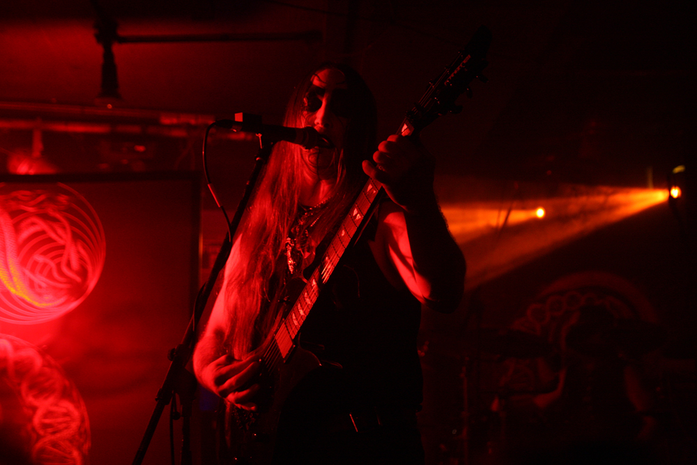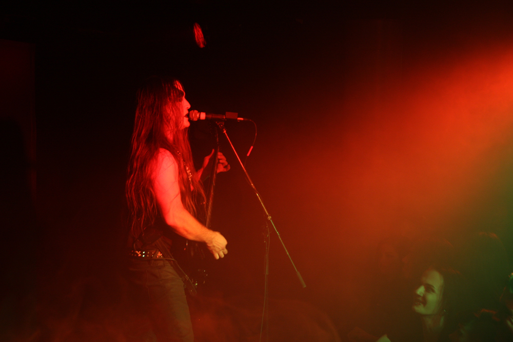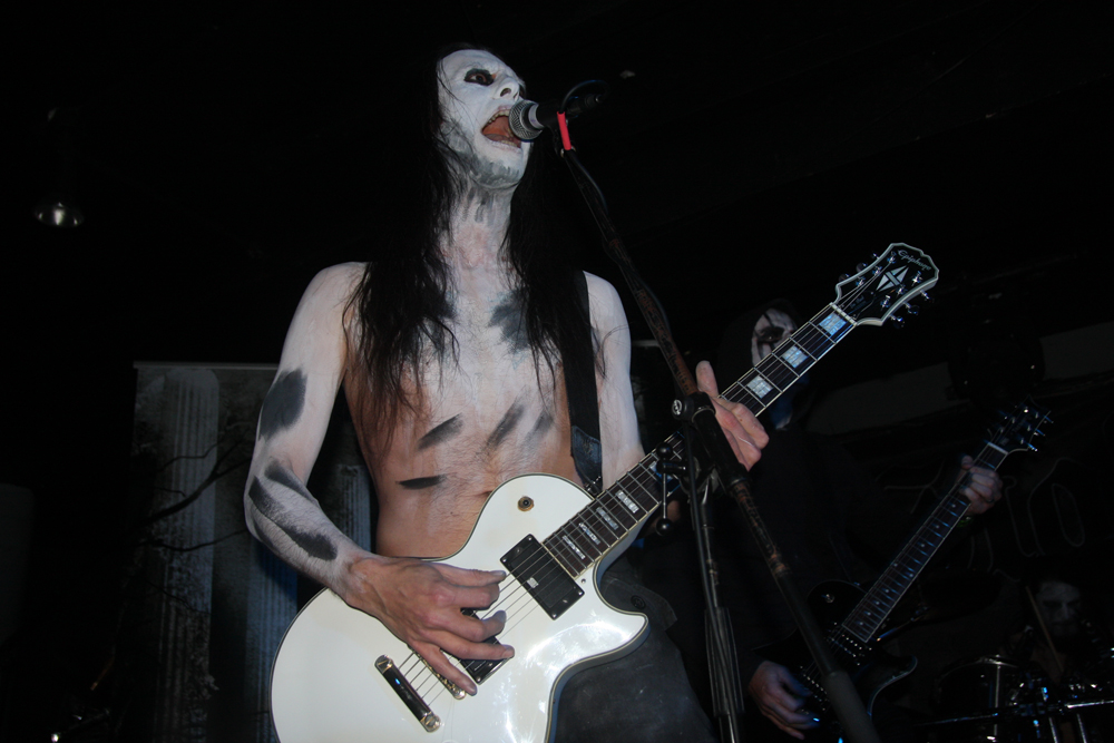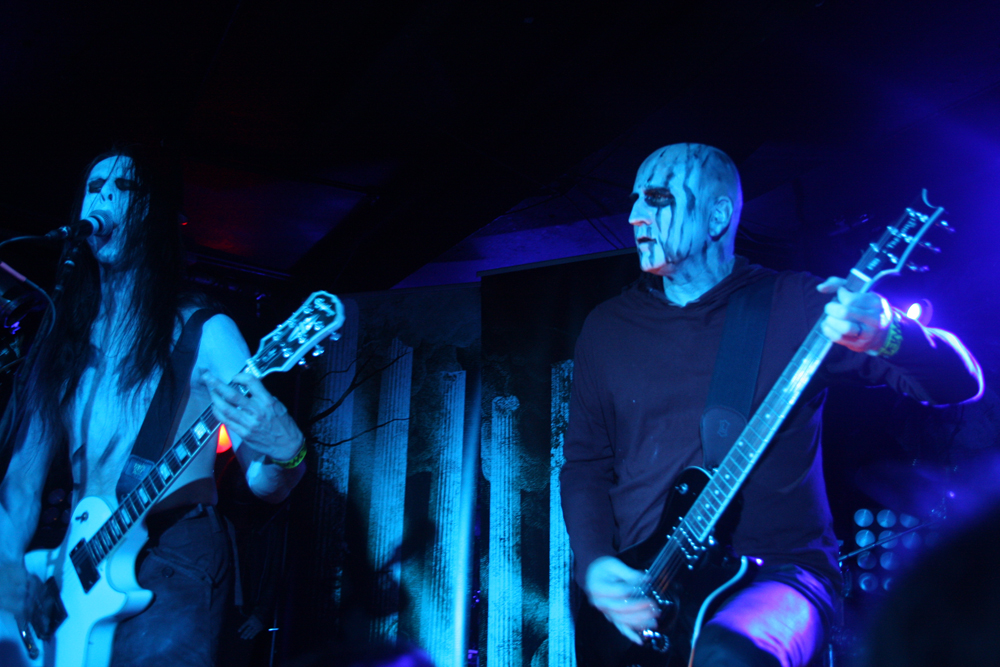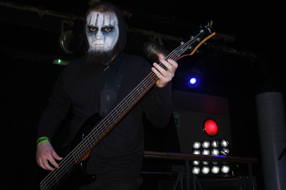 I have seen Inquisition many a time but never with this many people literally rammed in to observe the gruesome twosome’s incantations. Indeed is appears that it is ‘From Chaos They Came’ as fog and grim croakings billow across the stage and Dagon and Incubus literally explode into things. Precision is as ever remarkable from the duo and the energy is immediately conjured, infecting the baying crowd down the front and right through to the back of the venue. Trying to get a picture of the drummer proves impossible even from the side as the pair have some blood red stage lights they have brought with them which look like a bank of anti-aircraft guns. Obscuring the view but adding to the overall intensity. We are taken on a journey to glorify the 3rd member of the band Lucifer with ‘Dark Mutilation Rites.’ It’s a craggy blast from the past and we are taken through plenty of material from the bands career as ‘Ancient Monumental War Hymns’ are summoned from unholy grimoires and the gig takes the form of a gathering of witches and warlocks in my head. Seriously all that is missing is a goats butt to kiss but it’s probably best not to actually go there. More recent numbers such as the ludicrously entitled ‘Vortex From the Celestial Flying Throne of Storms’ cause a vortex in the middle of the dance-floor to open up and in the aftermath some souls are lost forever. Never mind, there is a ‘Desolate Funeral Chant’ coming so we can mourn and celebrate their passing. Inquisition get plenty of time to play a lengthy set which finally culminates with ‘A Magnificent Crypt Of Stars’ leaving mine and no doubt others heads floating in space. What else is there to be said but good luck following that performance (PW)
