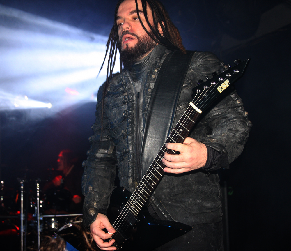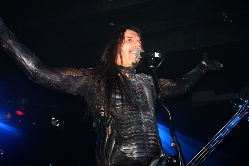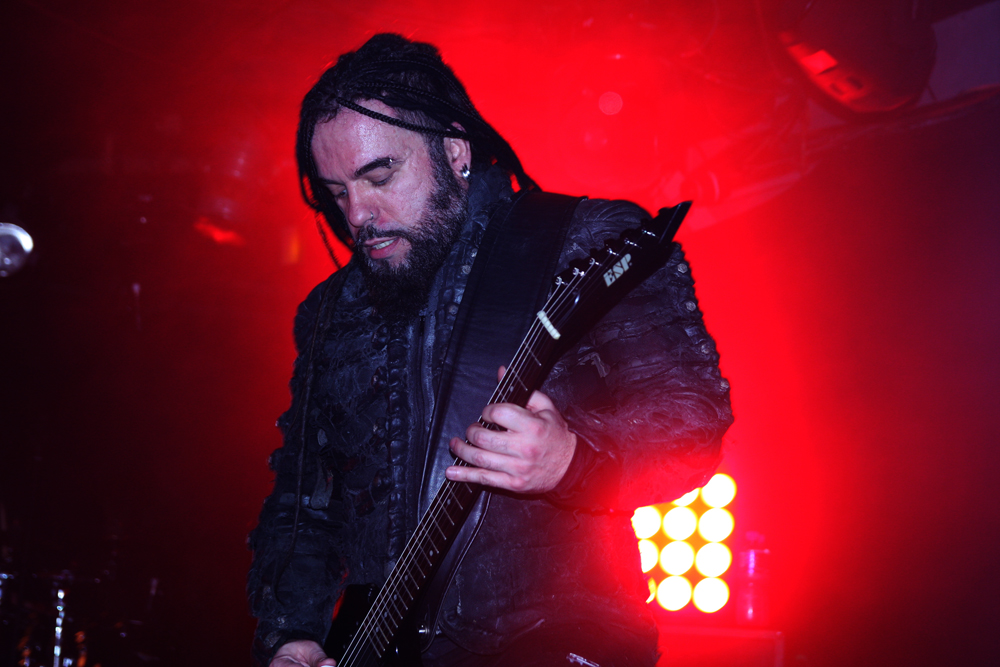 After the rather discordant and dissonant Inquisition, the intro tape for “Portrait of a Headless Man” was a soothing balm for the ears as Seth, Christos, Psychon and Krimh waded through the smoke to take their spots on the stage and roar into life. It was immediately apparent that the 4 piece were going to be crushingly heavy and that much louder than the 2 piece that proceeded them. Seth’s deep roar was never a muffled growl as every enunciated word was distinct and as they moved onto “The Vampire from Nazareth”, the crowd were all singing along to the choral accompaniment and swaying to the orchestral melodies while our diaphragms were all rattling with Krimh’s blazing kick drum as it knocked the wind out of us. They followed this with another new track, “Martyr”, which had Christos flinging his dreads around after the slightly slower movements as the triplets of the chorus took over. Heading for ‘Titan’ they presented a “Prototype” where Krimh’s sharp snapping snare could’ve torn eardrums while the rather manic Psychon was constantly in motion on his side of the stage, even during the mellower bridges and jangling clean guitar build ups. The far slower “Pyramid God” had all the heads banging to the steady drumbeat and then the moshing picked up a little as the blast beats kicked in towards the end of the song. As they are touring to promote ‘Codex Omega’ we were graced with another new track in the form of “Enemy of Truth” where the orchestral accompaniment filled out the sound beautifully to give the track the added gravitas and heaviness it needed to make Christos and Psychon’s triplets on their guitars sound even more crushing.