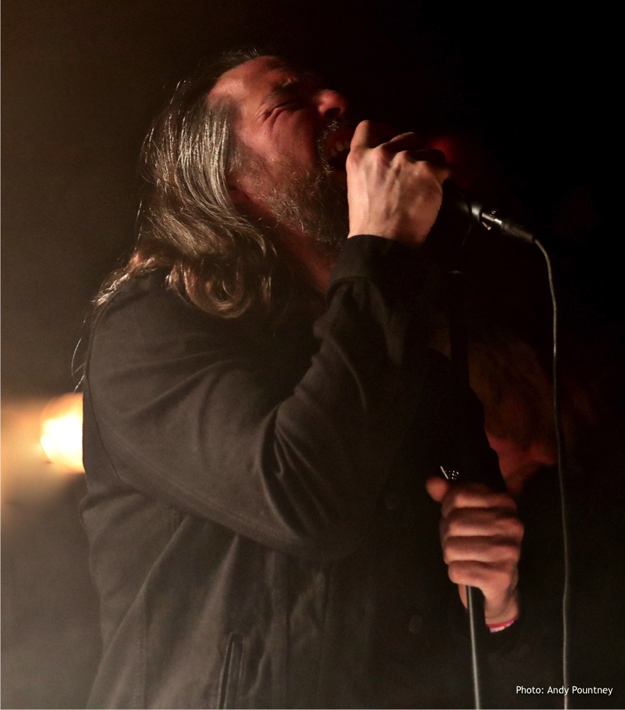 The atmosphere in the venue was more akin to a party than a gig with people sat and stood around tables drinking and chatting with the band playing at the end of the room, almost as an aside. That’s not a reflection on the band rather the party atmosphere of people who had arrived early for Inferno and were catching up with old friends.