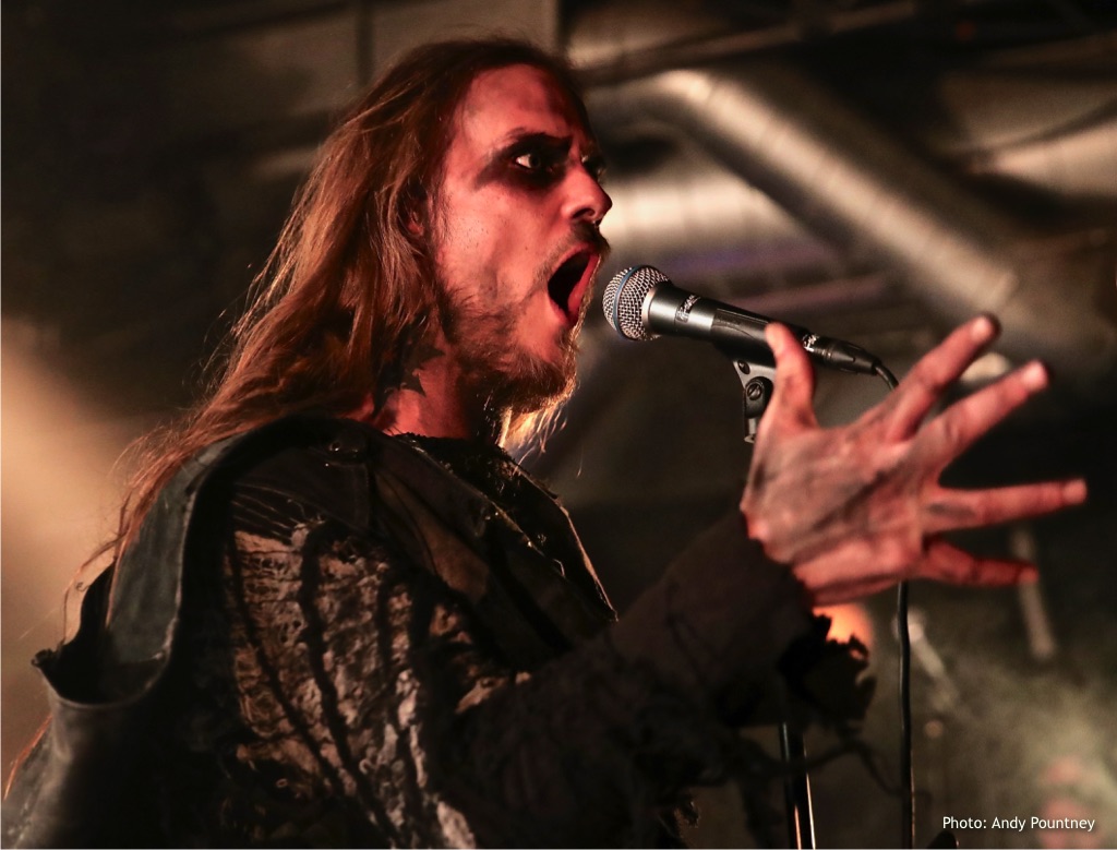 There was however, no time for reminiscing as Canadians Erimha were about to open the John Dee stage in the smaller room downstairs. Over the years, I’ve soaked up a few of their releases and have been impressed but this was the first chance I had had to catch them live so I was looking forward to it. When the band took to the stage, the vocalist was wearing a cloak which seems to be in vogue at the moment. However, this didn’t detract from their powerful outpouring, straddling a fine line between black metal and death metal (in my note book I wrote “technical black metal” but I’m not sure that is even a “thing”?). Occasionally the clean vocals didn’t quite hit the mark, but overall they blew away the cobwebs from the PA in John Dee and 30 minutes seemed criminally short for their powerful set.