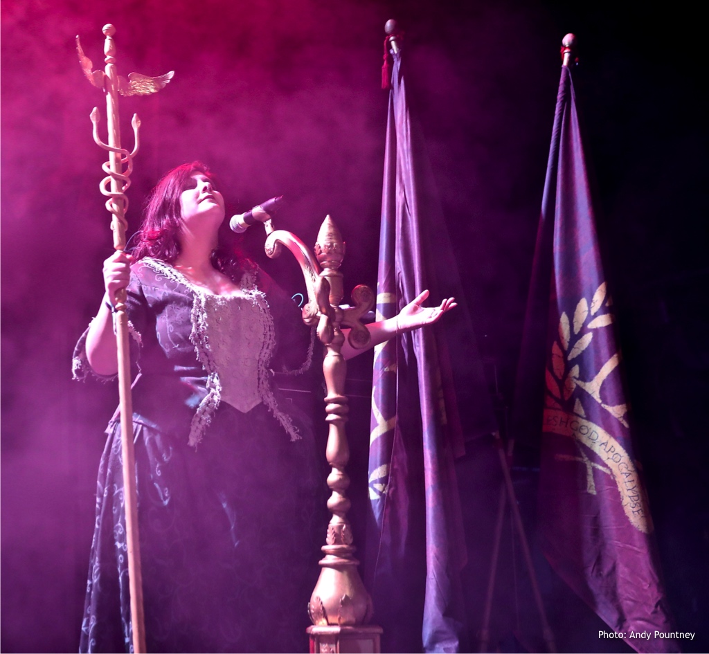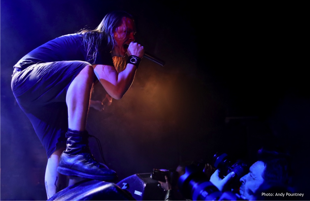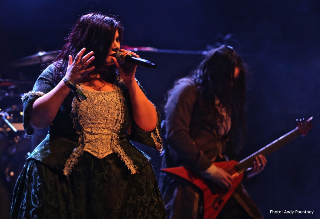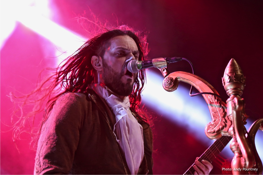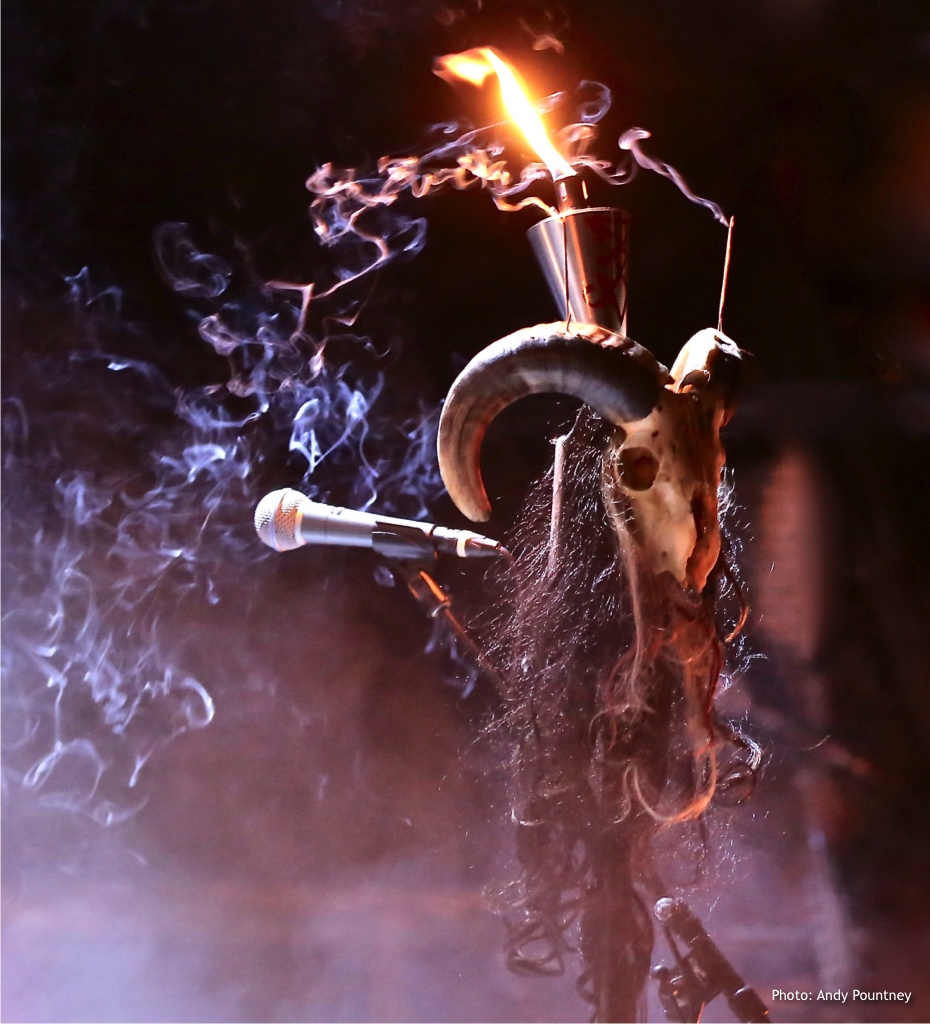 Bringing about a definite change of pace, Earth Electric took to the John Dee stage as an unknown quantity to many attendees who could be overheard chatting, not knowing what to expect. They were perhaps drawn by the involvement of Rune “Blasphemer” Eriksen, who has previously had involvement with Mayhem, Aura Noir and Ava Inferi. This was however a completely different proposition and is much more based around a 70s rock sound with hints of prog and doom in the mix. The main vocals are provided by front woman Carmen Simões (also with Ava Inferi) who was the main focal point for the band’s live show with her flamboyant stage presence. As good a show as Earth Electric were putting on, and as enjoyable as their sublime melodies were, the draw of Emperor playing next in the main room was too much for many to resist and the crowd began to thin as their performance moved on.